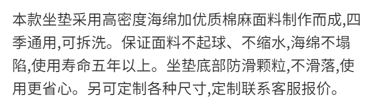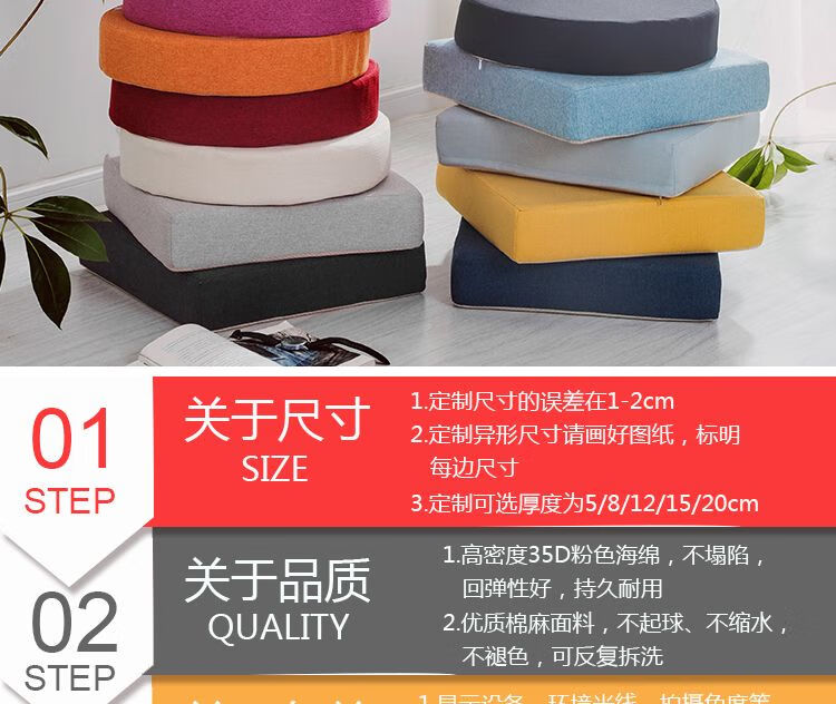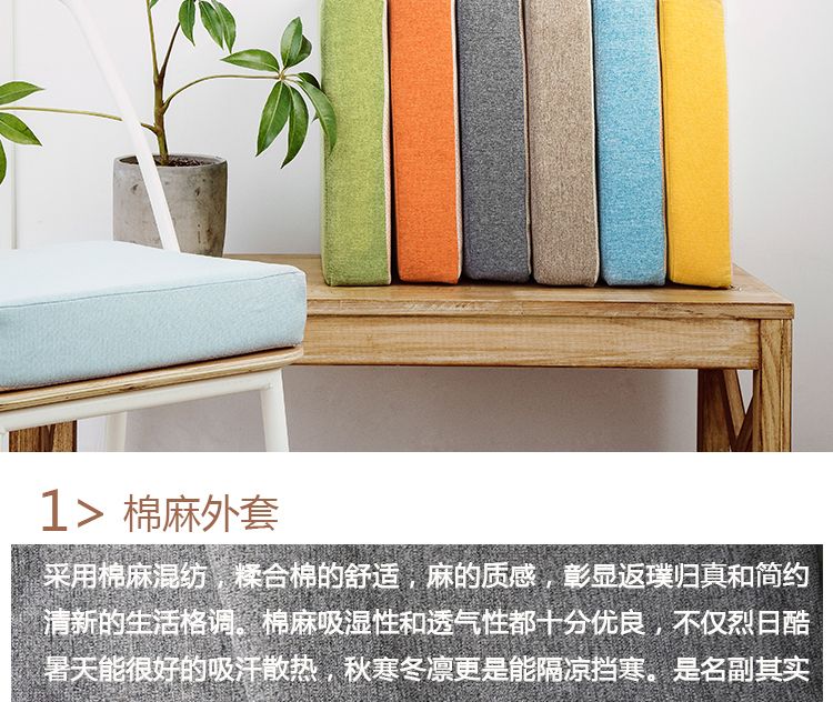 Qiaorui removable and washable four-season cotton and linen cushions high-density thickened sponge cushions office student heightening chair cushion soft carmine-square 40x40 thick 5 cm