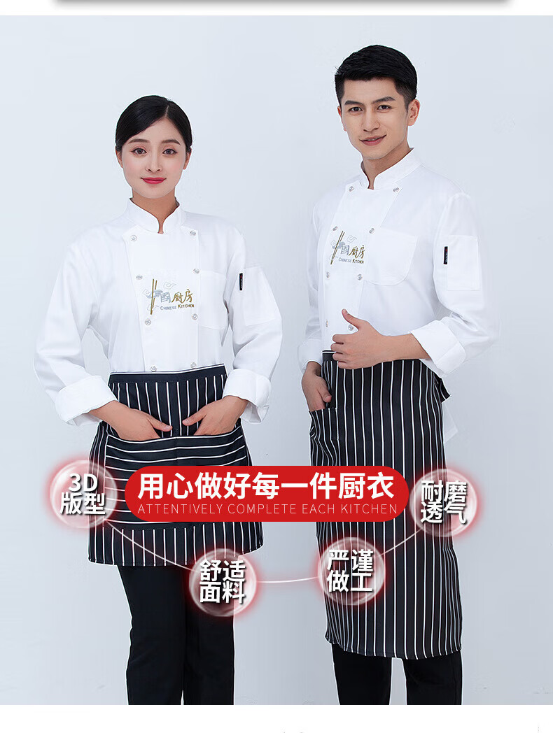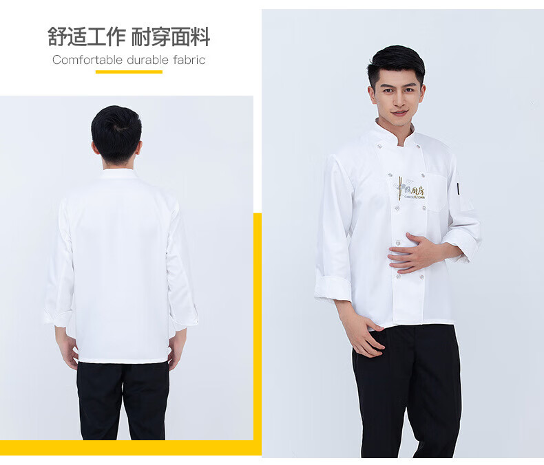 Yuxuan hotel chef uniform men's long-sleeved catering chef overalls short-sleeved kitchen canteen Chinese style kitchen white short-sleeved XXXL
