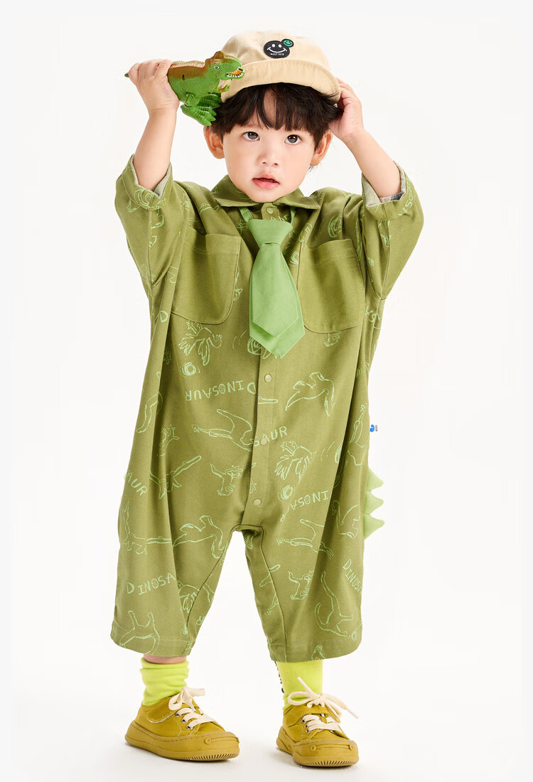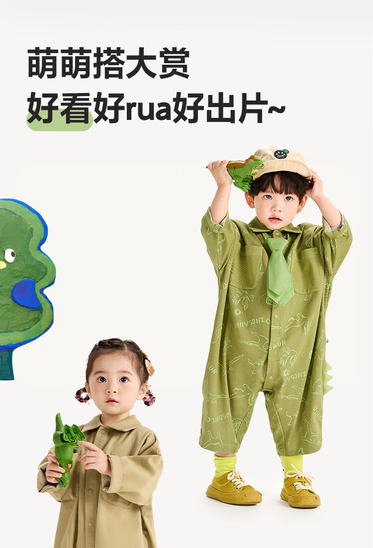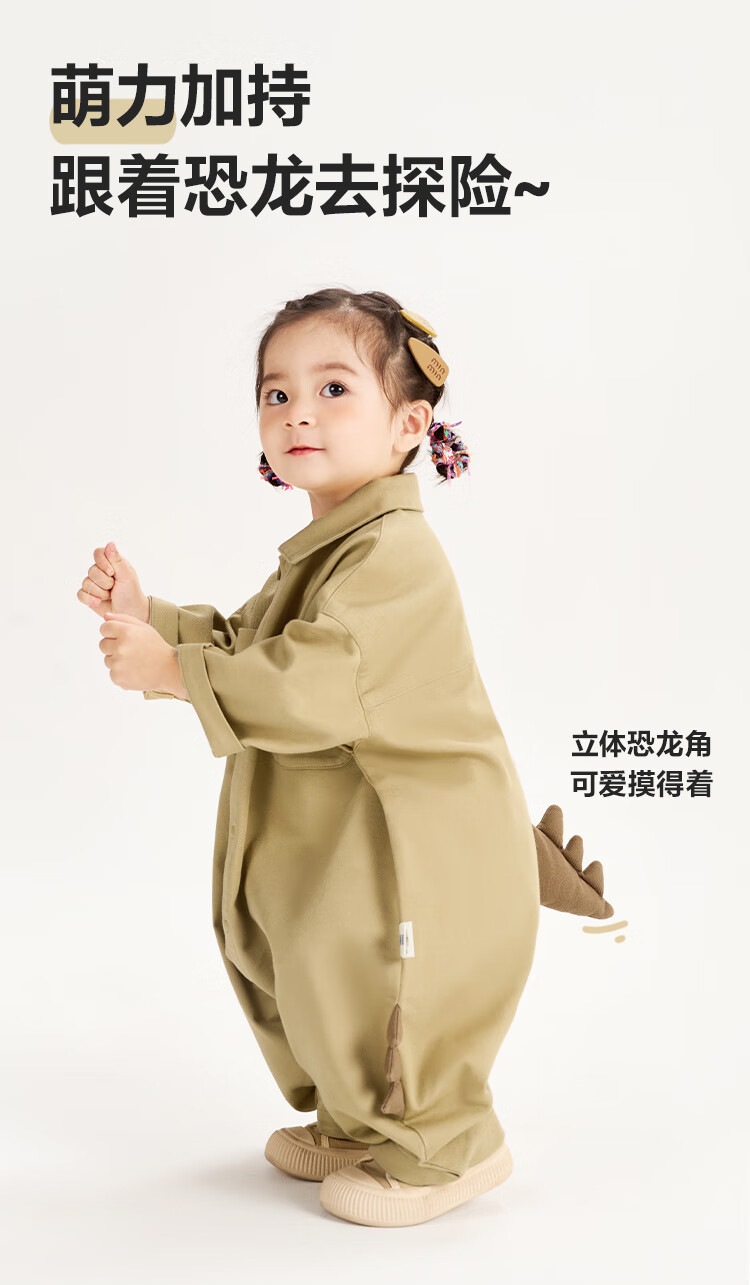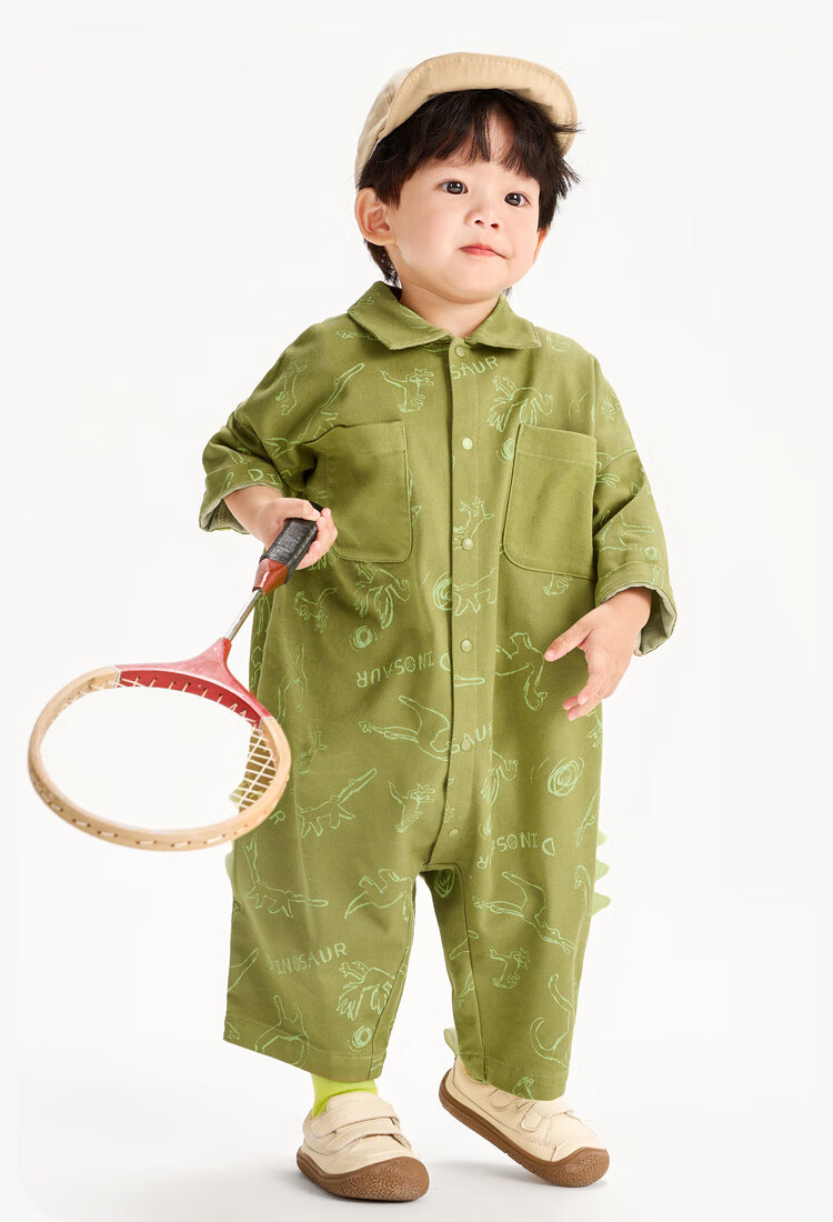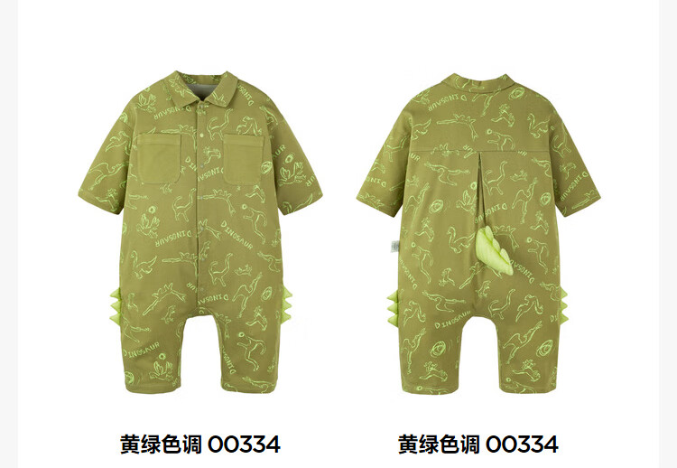 Mini Bala Dinosaur Series Boys and Girls Onesies Baby Moisture-Absorbing Quick-Drying Romper Suit Earth Gray Green 40976 73cm