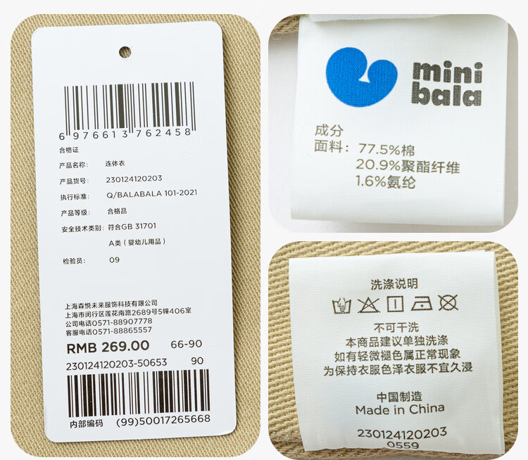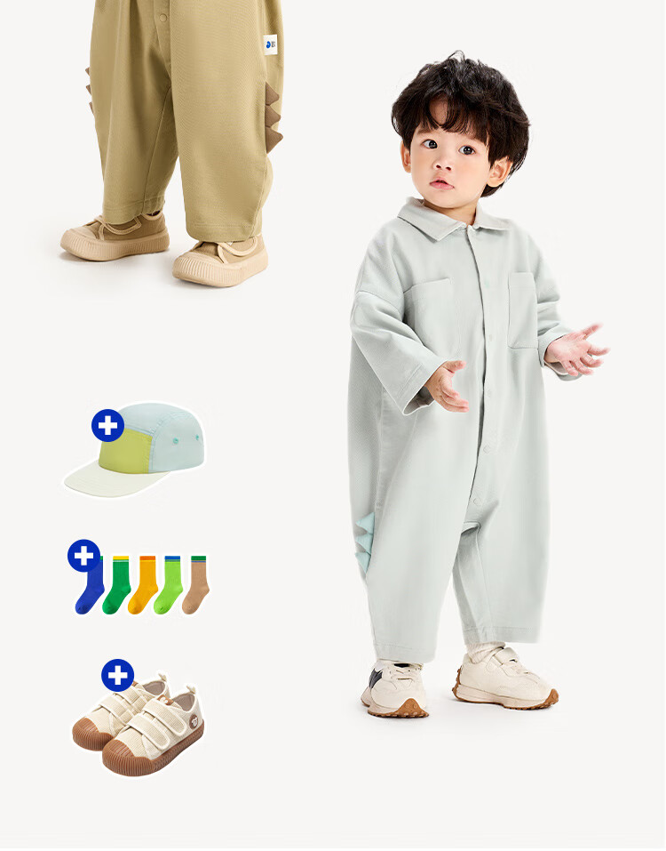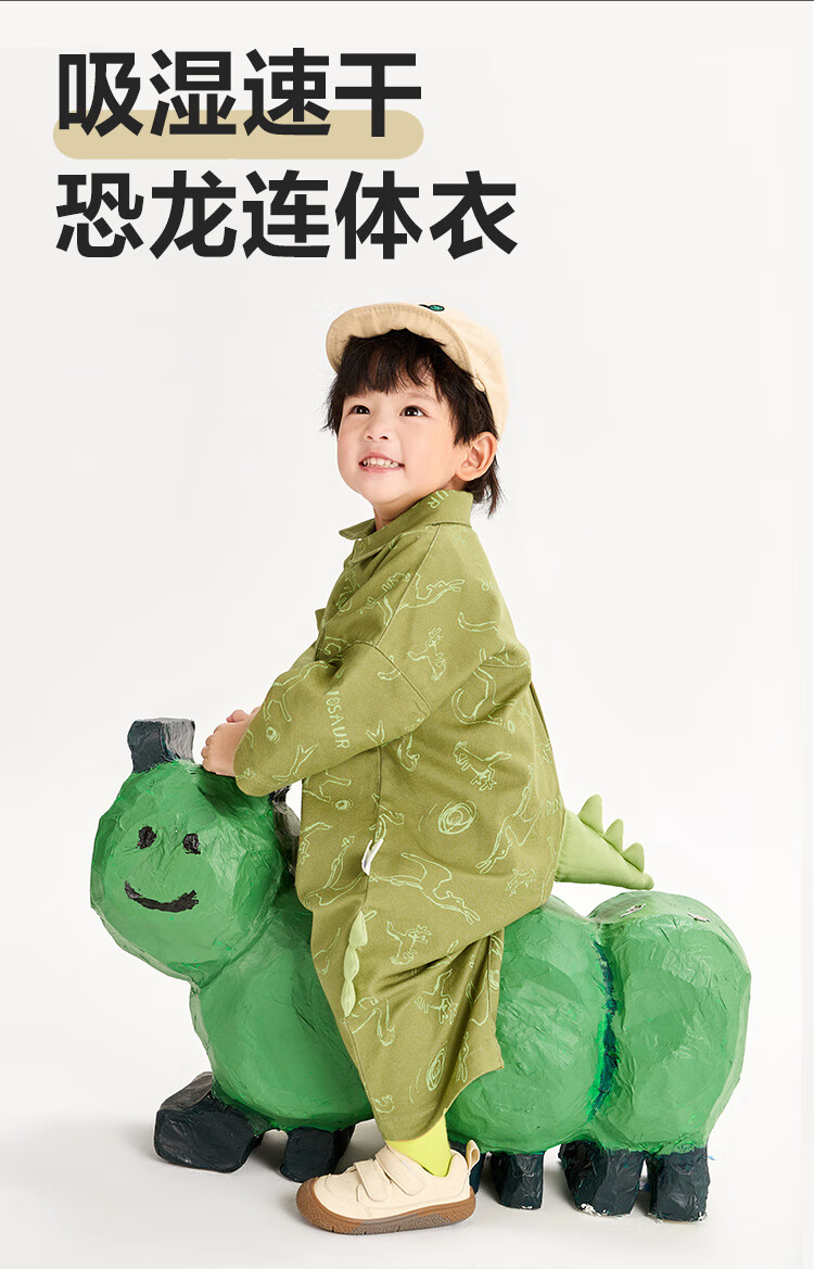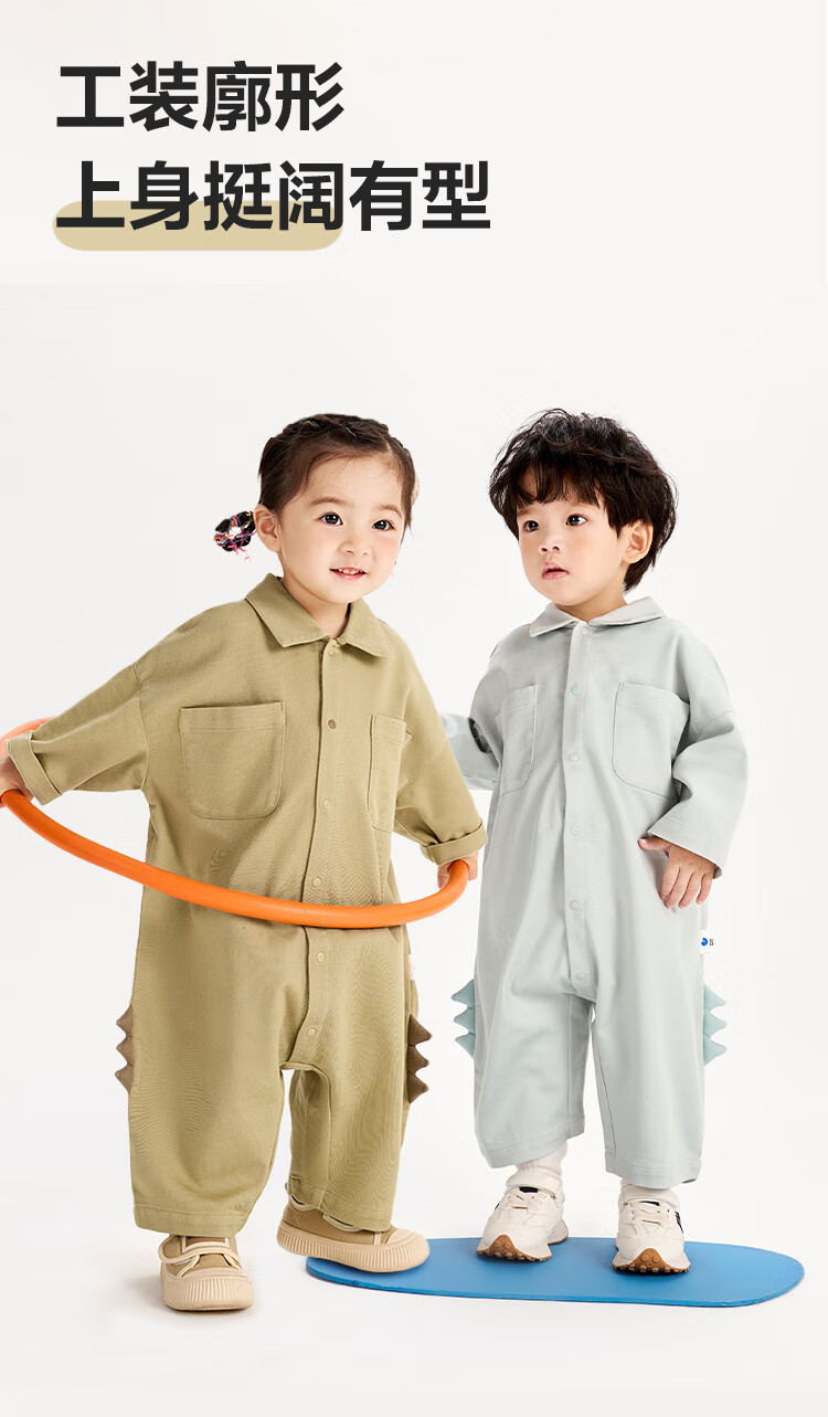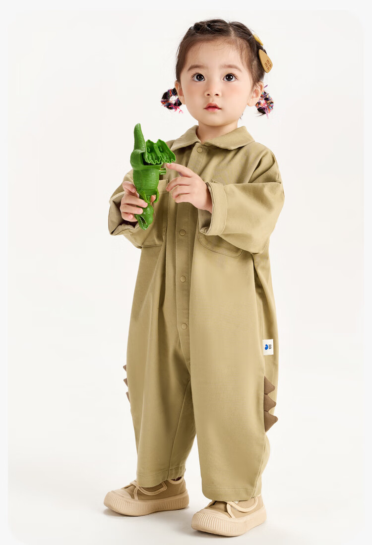 Mini Bala Dinosaur Series Boys and Girls Onesies Baby Moisture-Absorbing Quick-Drying Romper Suit Earth Gray Green 40976 73cm