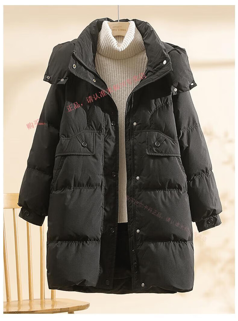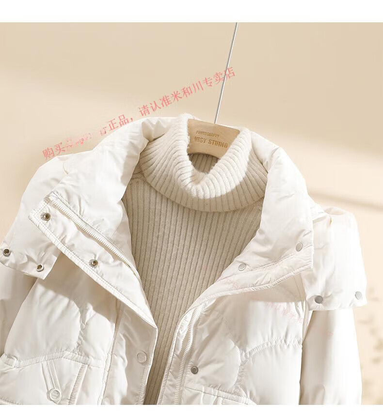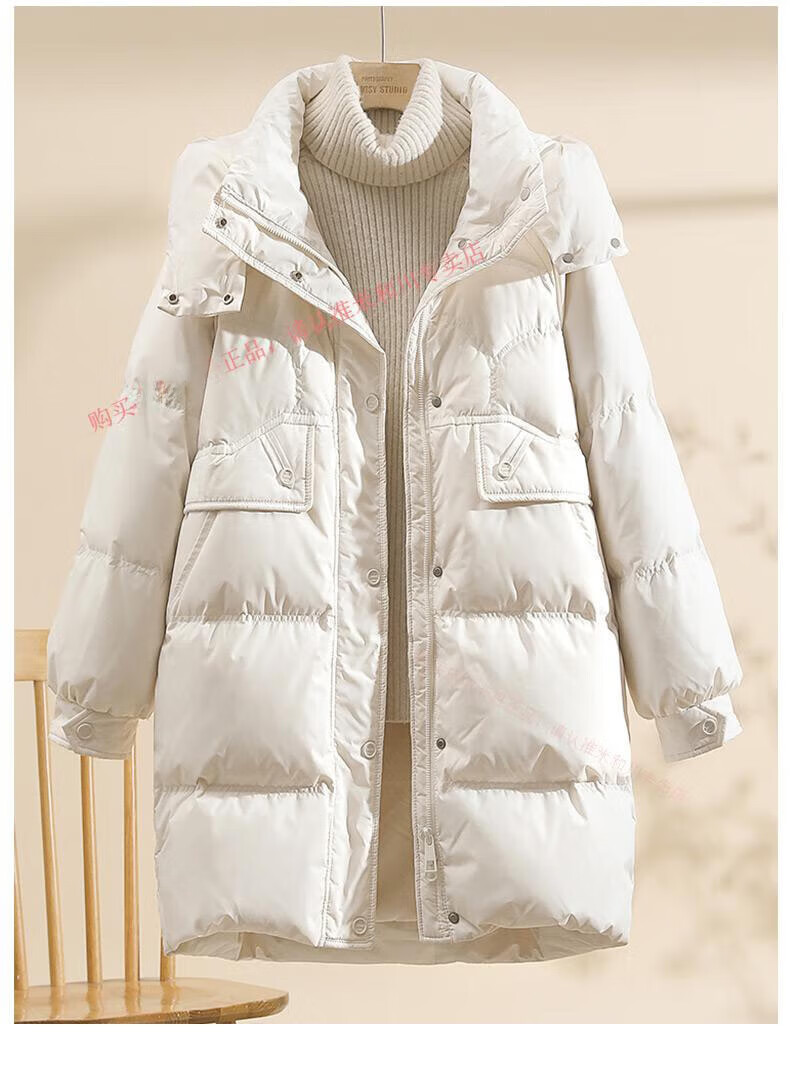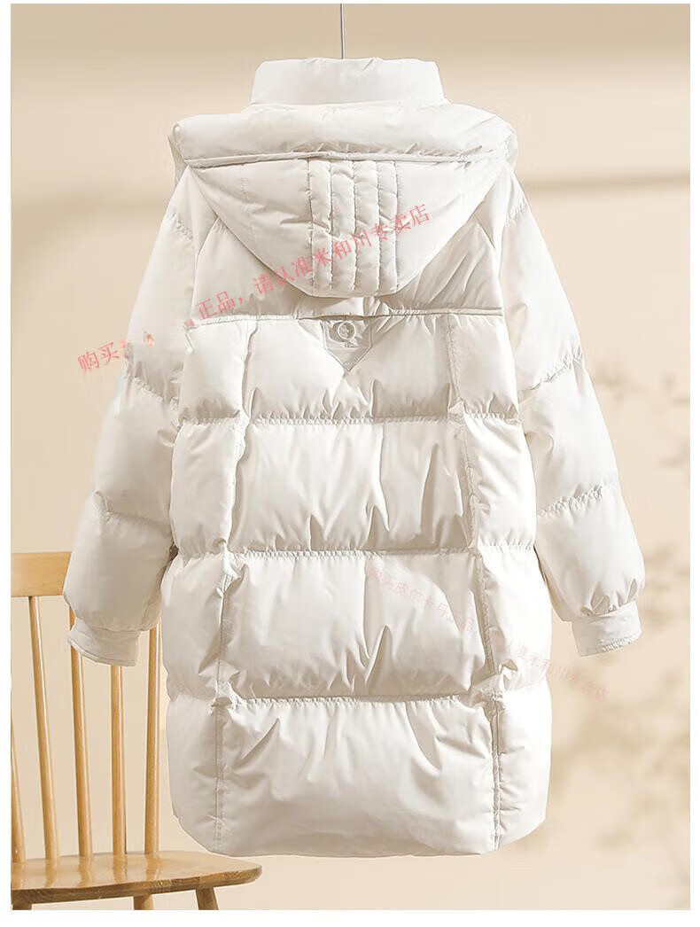Power Brand White Goose Down Down Jacket Women's Mid-Length 2025 New Korean Version Removable Hat Women's Thickened Warm Jacket Off-White (Goose Down) S 90-120Jin Jin is equal to 0.5 kg