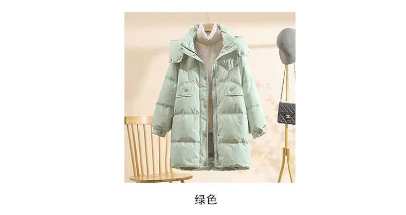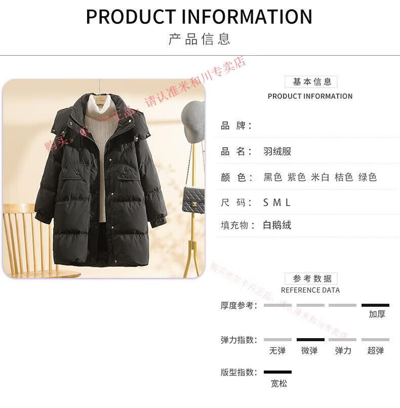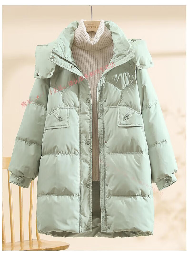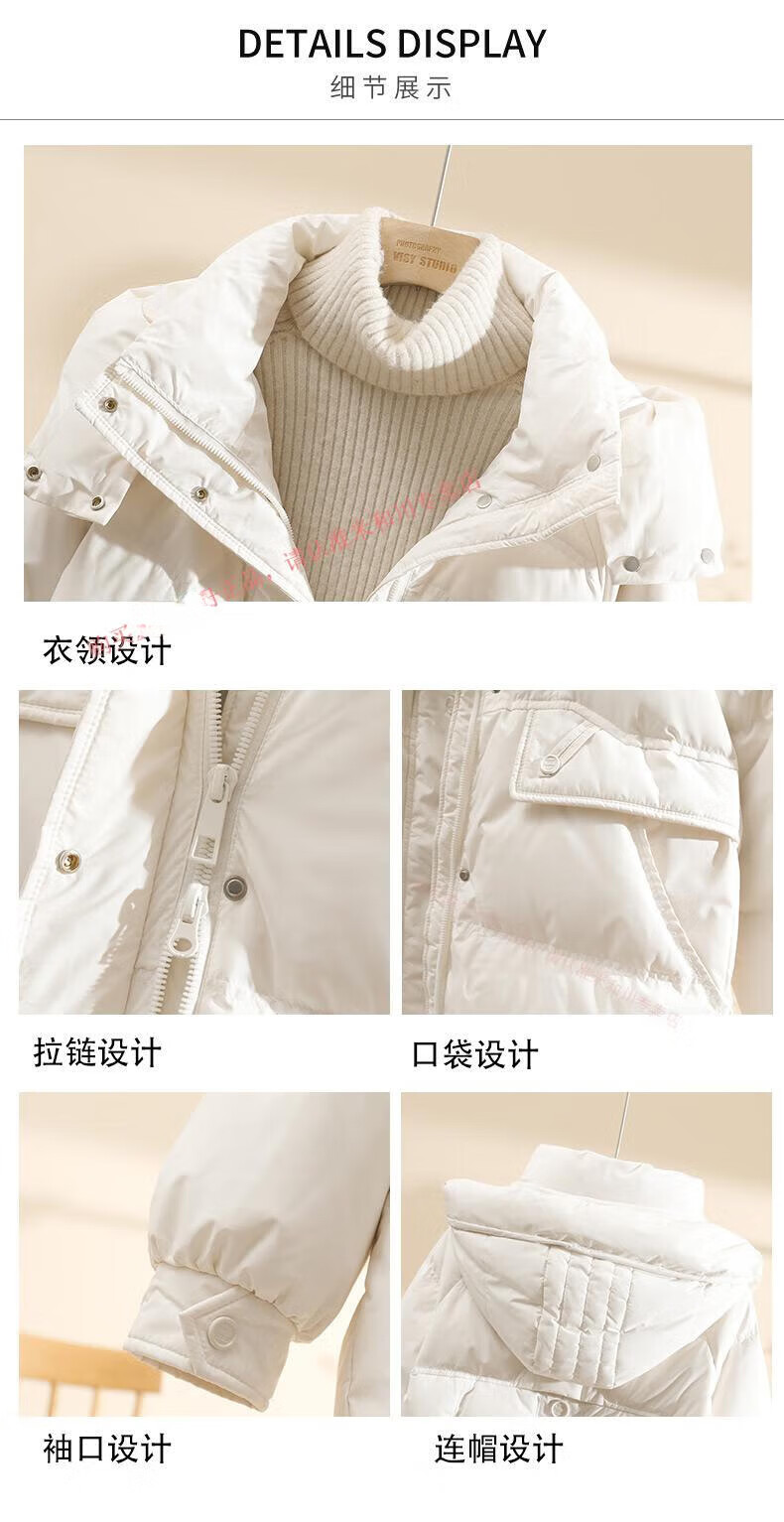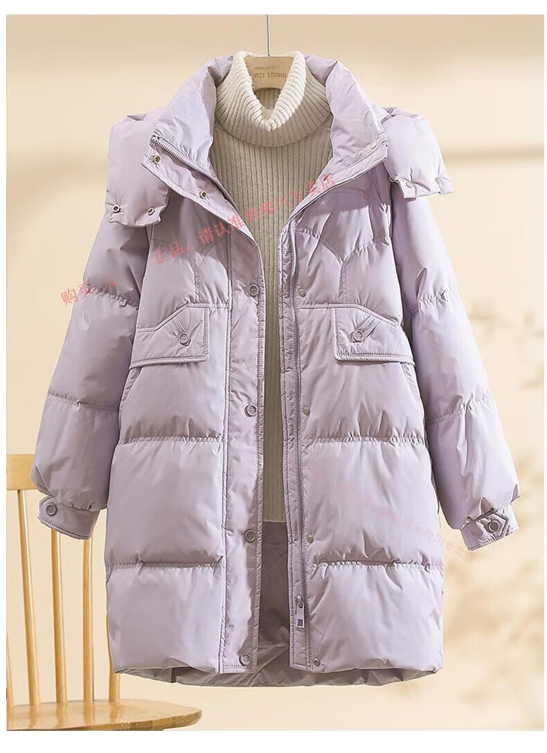 Power Brand White Goose Down Down Jacket Women's Mid-Length 2025 New Korean Version Removable Hat Women's Thickened Warm Jacket Off-White (Goose Down) S 90-120Jin Jin is equal to 0.5 kg