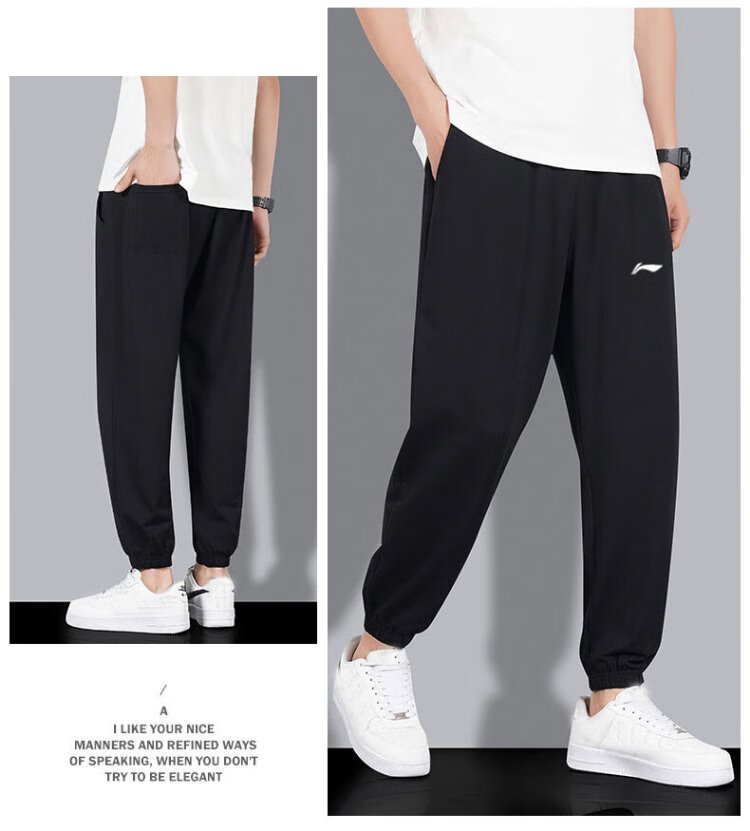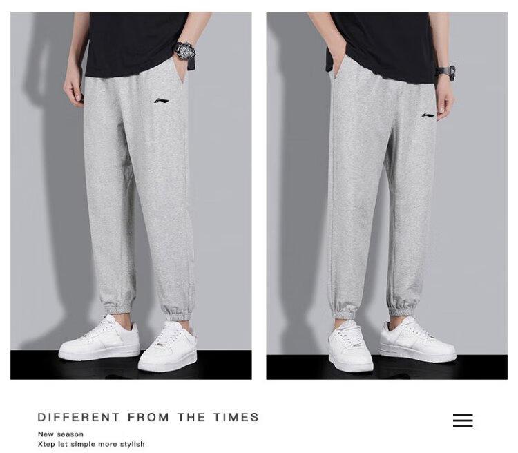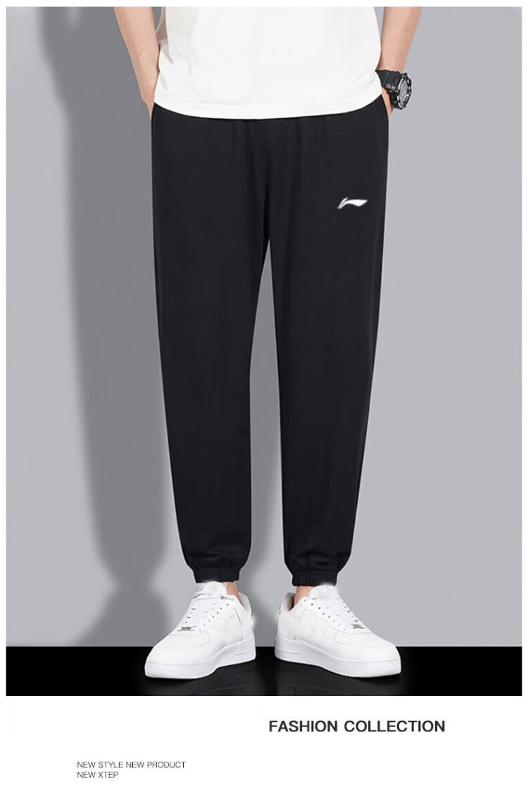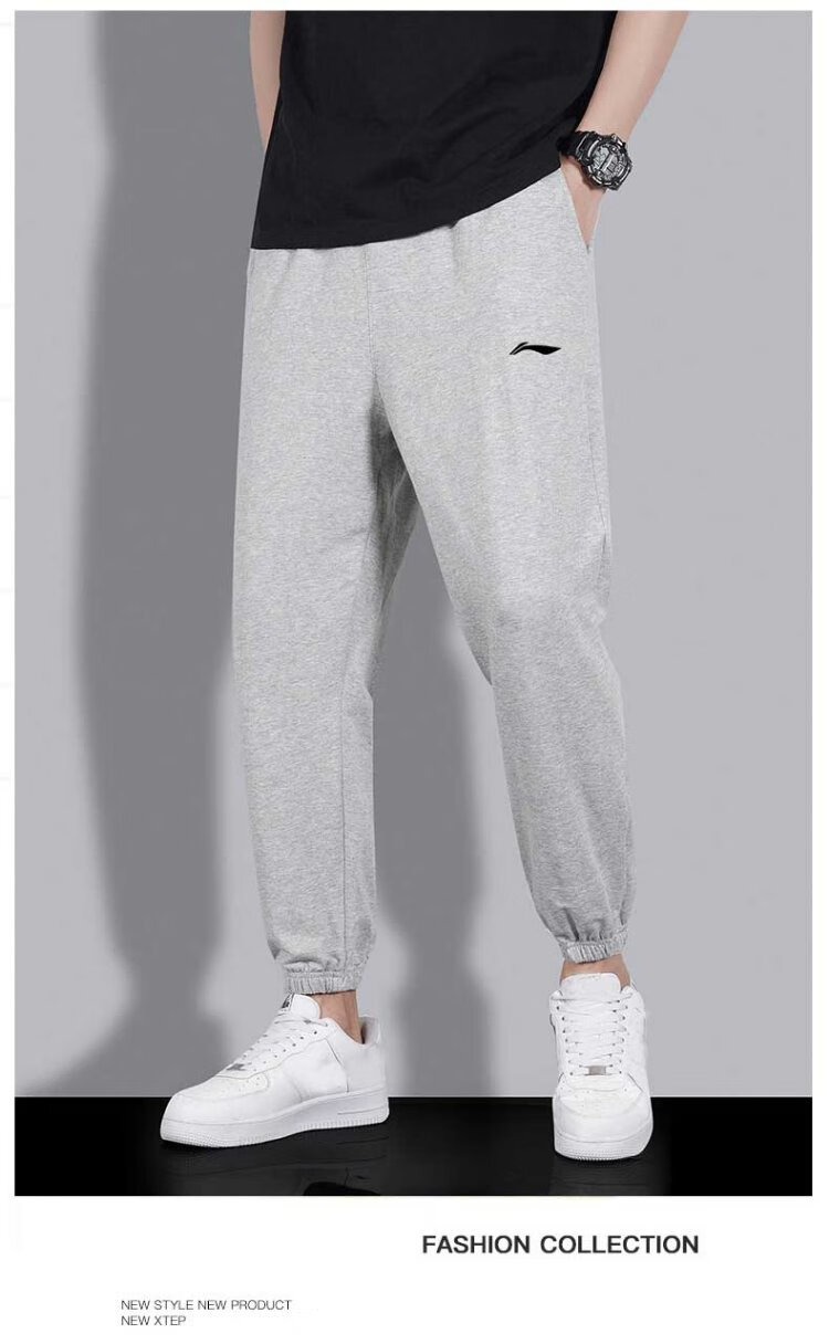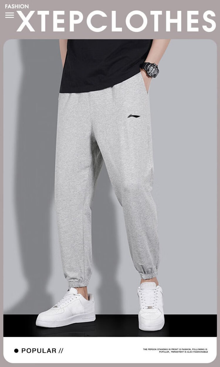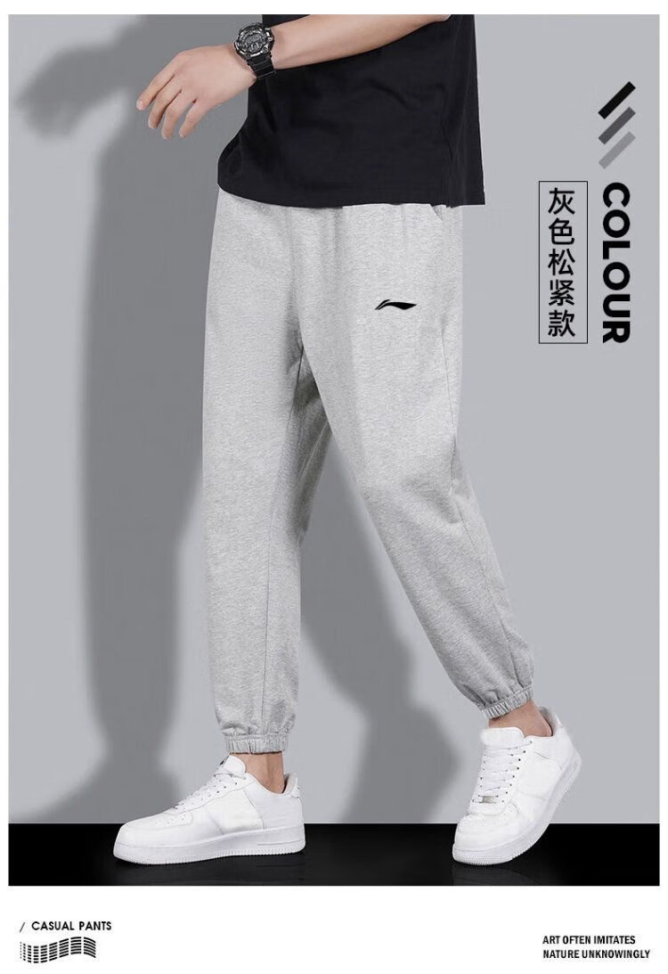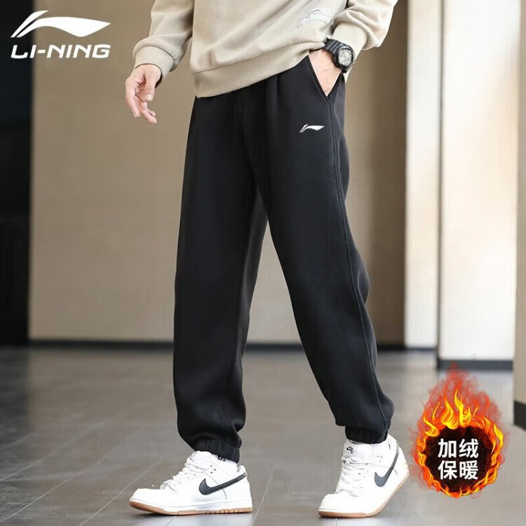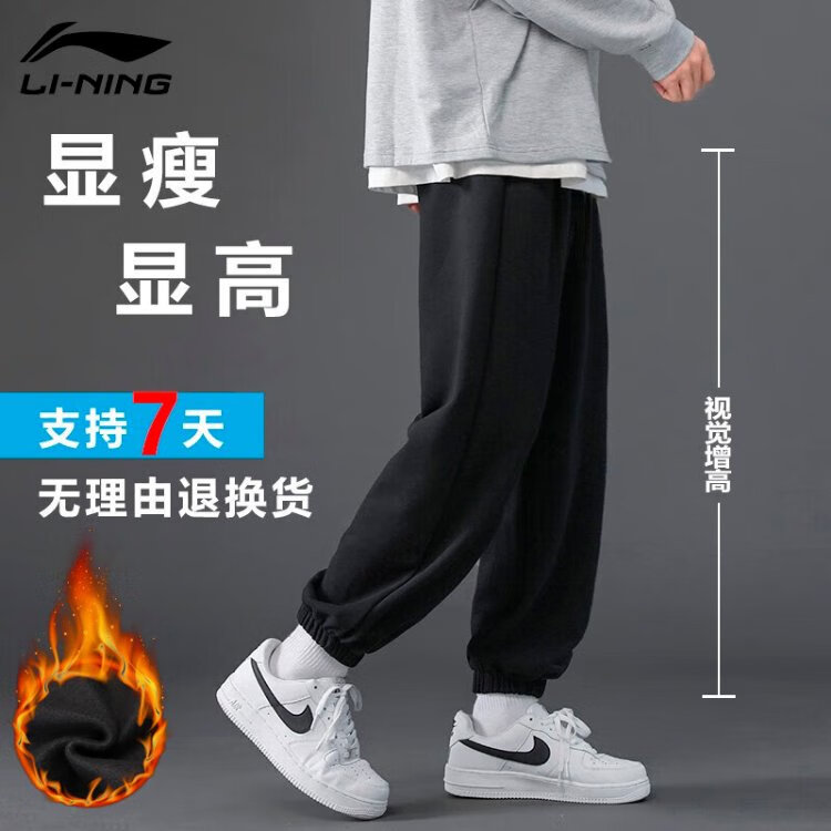 Li Ning sports trousers men's sweatpants knitted running trousers men's loose cinch leg casual sports pants flower gray coin gray (plus velvet) 2XL