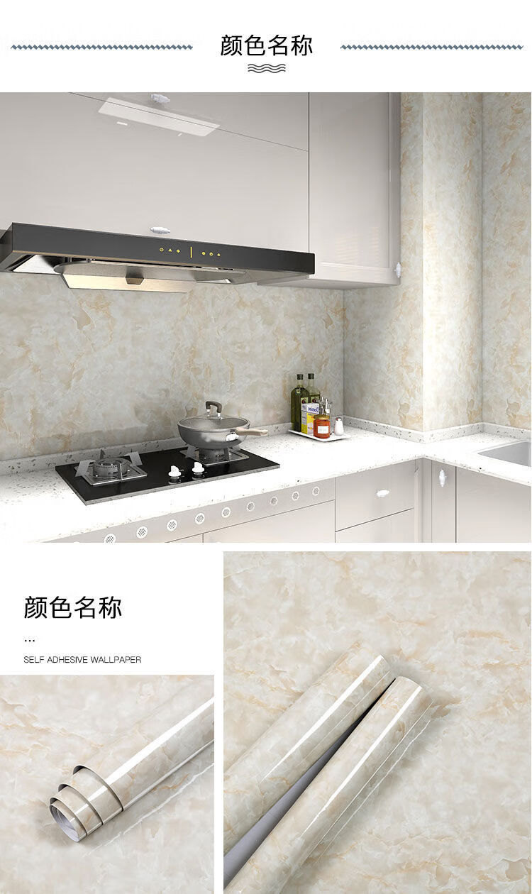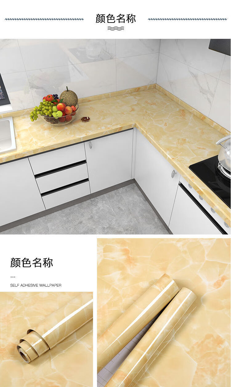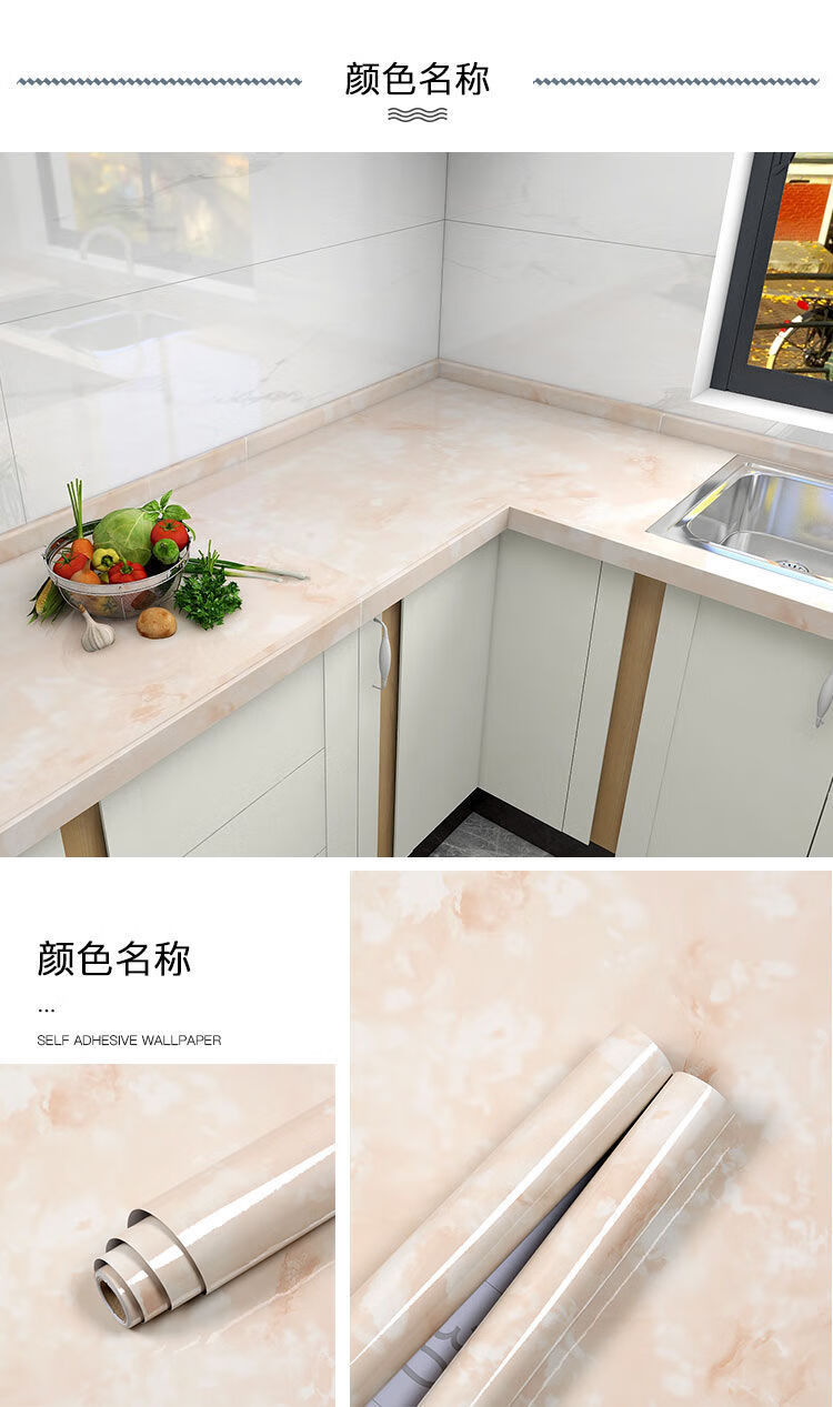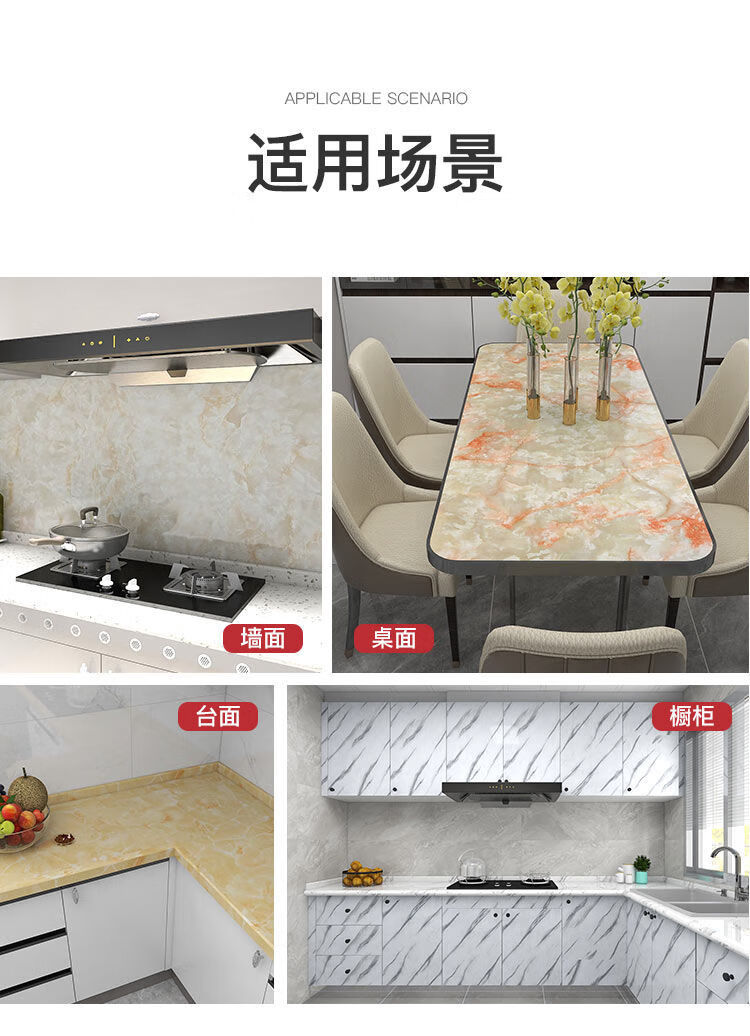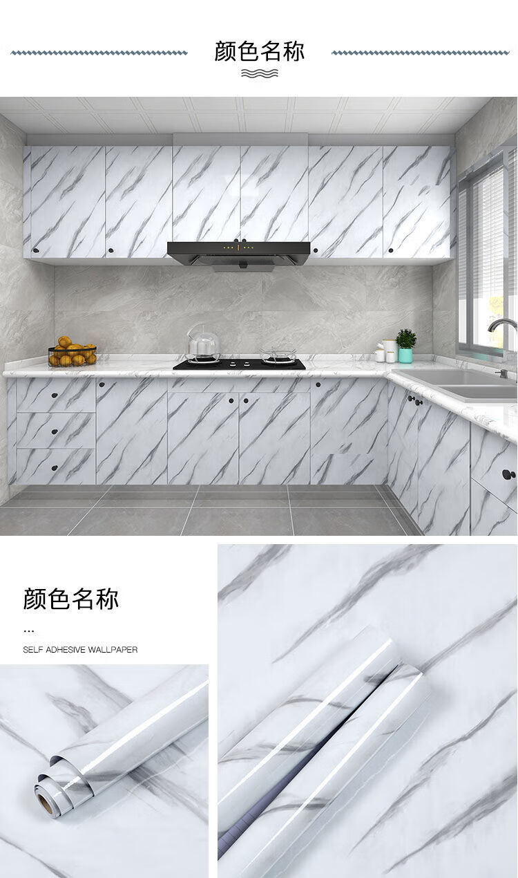 ZHIO kitchen stickers waterproof and oil-proof thickened marble cabinet renovation self-adhesive wallpaper stove high temperature resistant countertop refreshing stone white 60 cm wide * 5 meters long