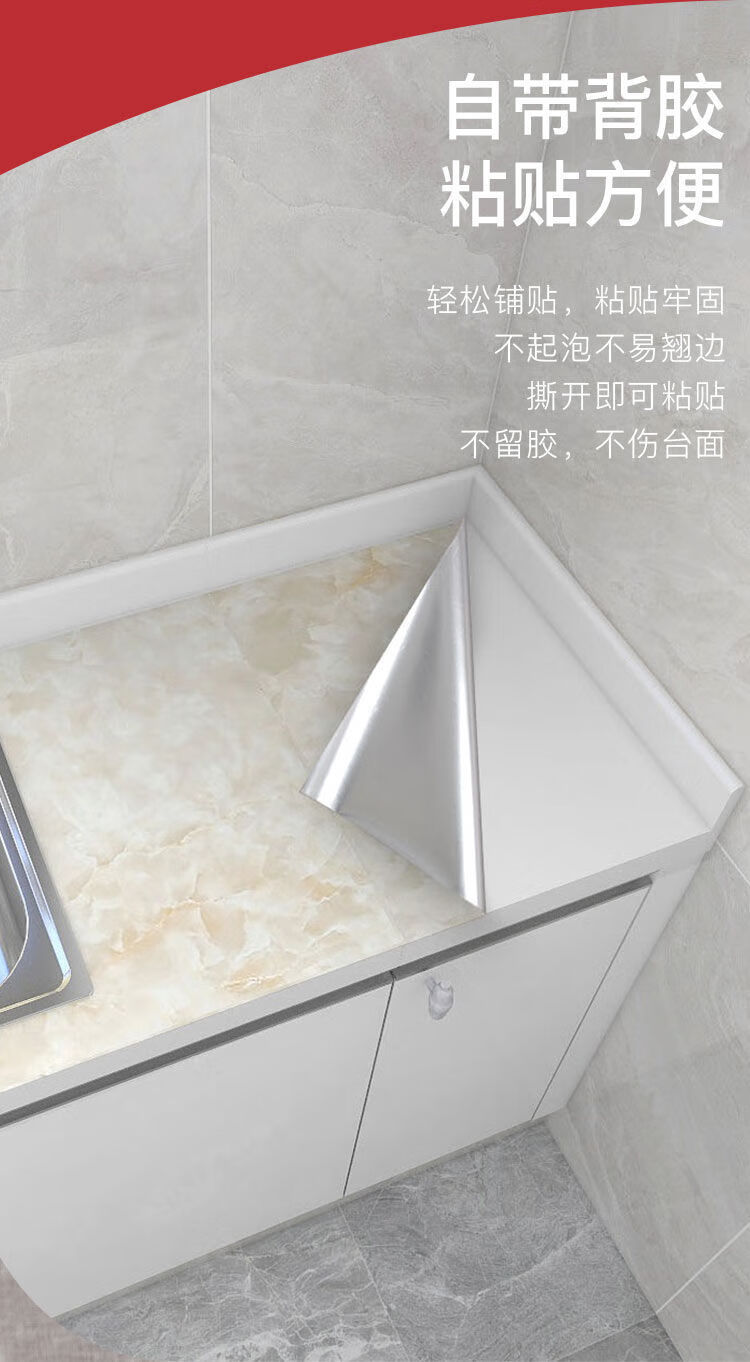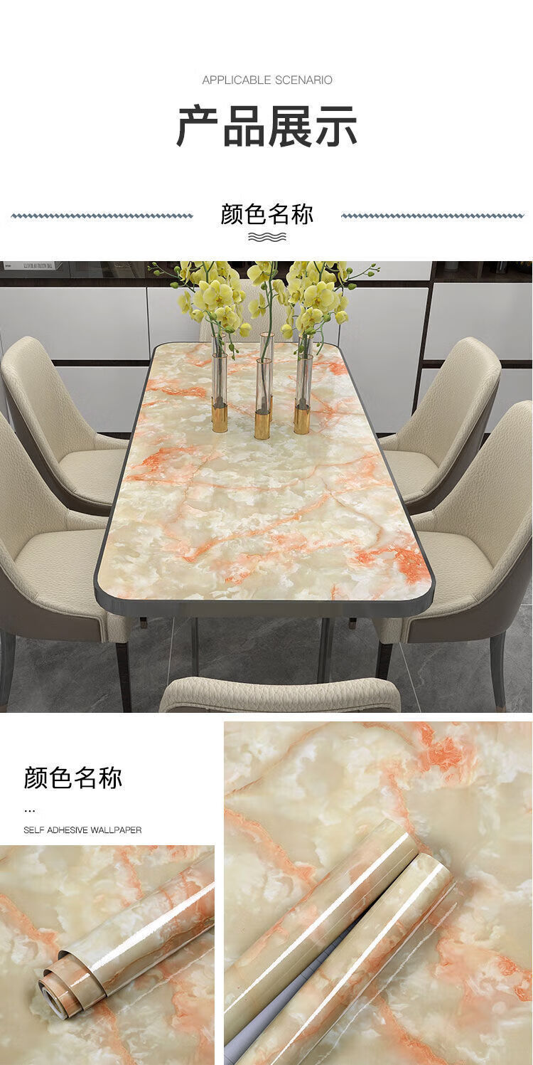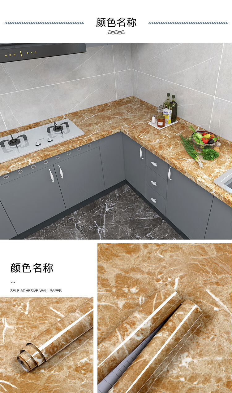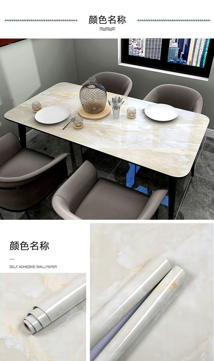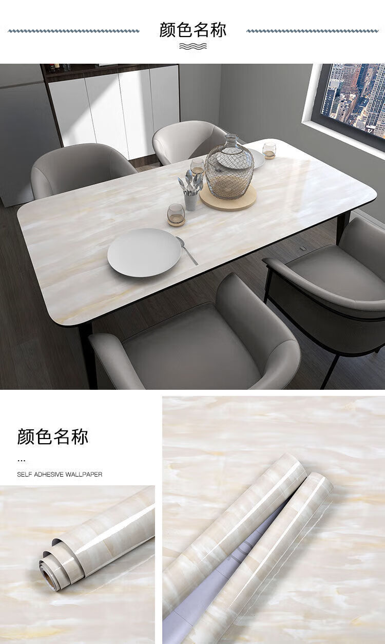 ZHIO kitchen stickers waterproof and oil-proof thickened marble cabinet renovation self-adhesive wallpaper stove high temperature resistant countertop refreshing stone white 60 cm wide * 5 meters long