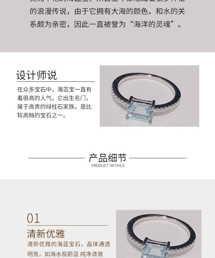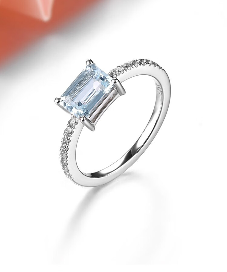 CAJJ Francois 88-point aquamarine ring for women, natural colored gems, jewelry, gemstones, 925 silver inlay, simple jewelry, accessories, jewelry, No. 13