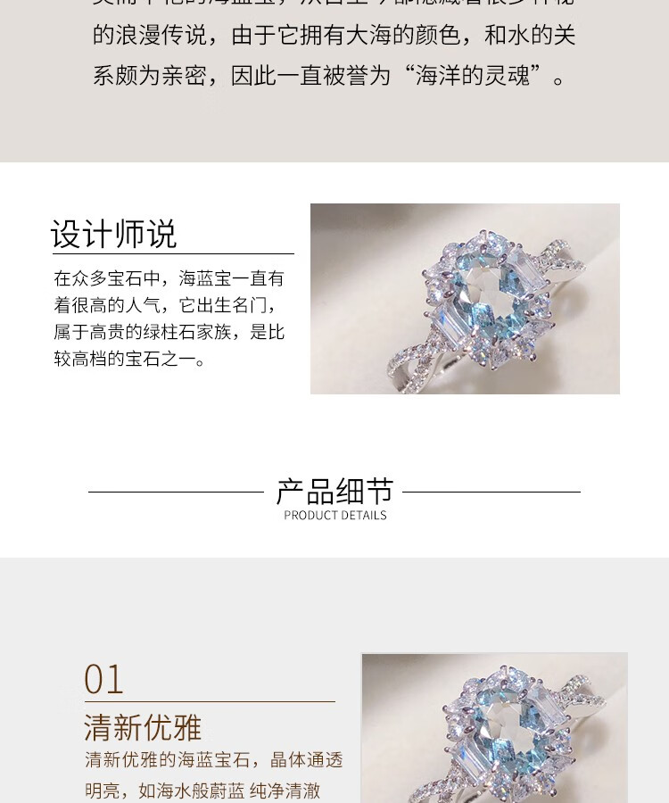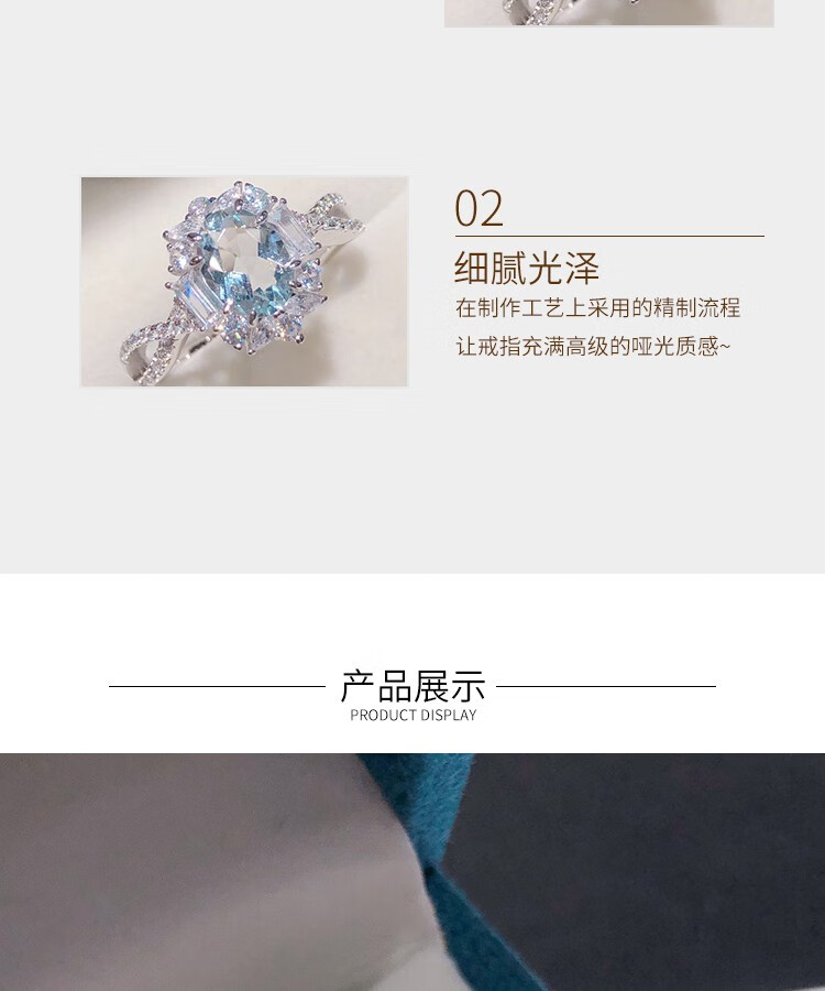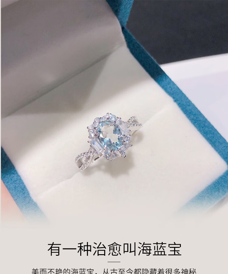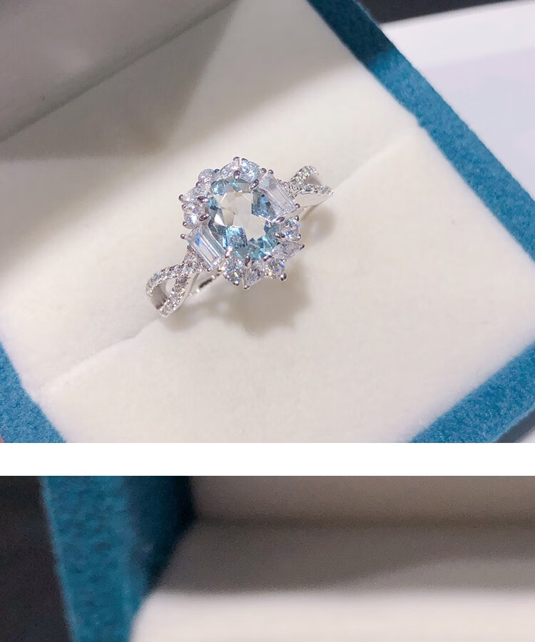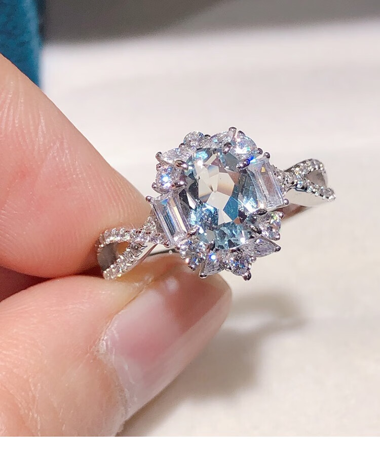 CAJJ Francois 1 carat aquamarine ring for women, natural colored gemstone, 925 silver inlaid jewelry, accessories, size 13