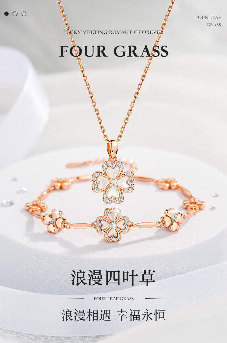 Ji Sifan light luxury necklace women's four-leaf clover high-end niche jewelry birthday Valentine's Day anniversary gift for girlfriend and wife four-leaf clover necklace black agate