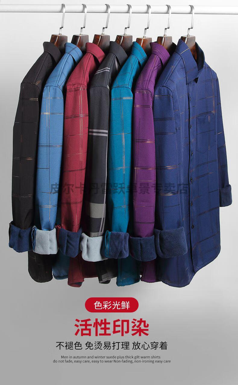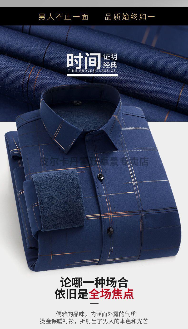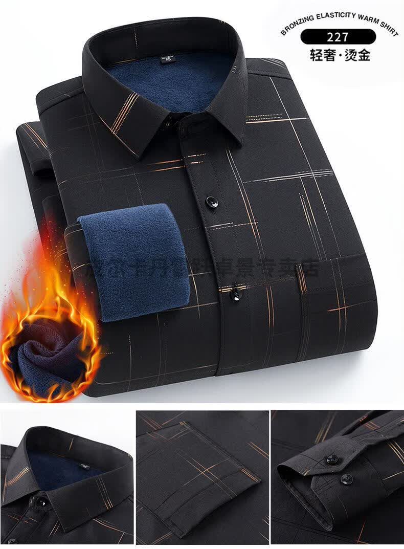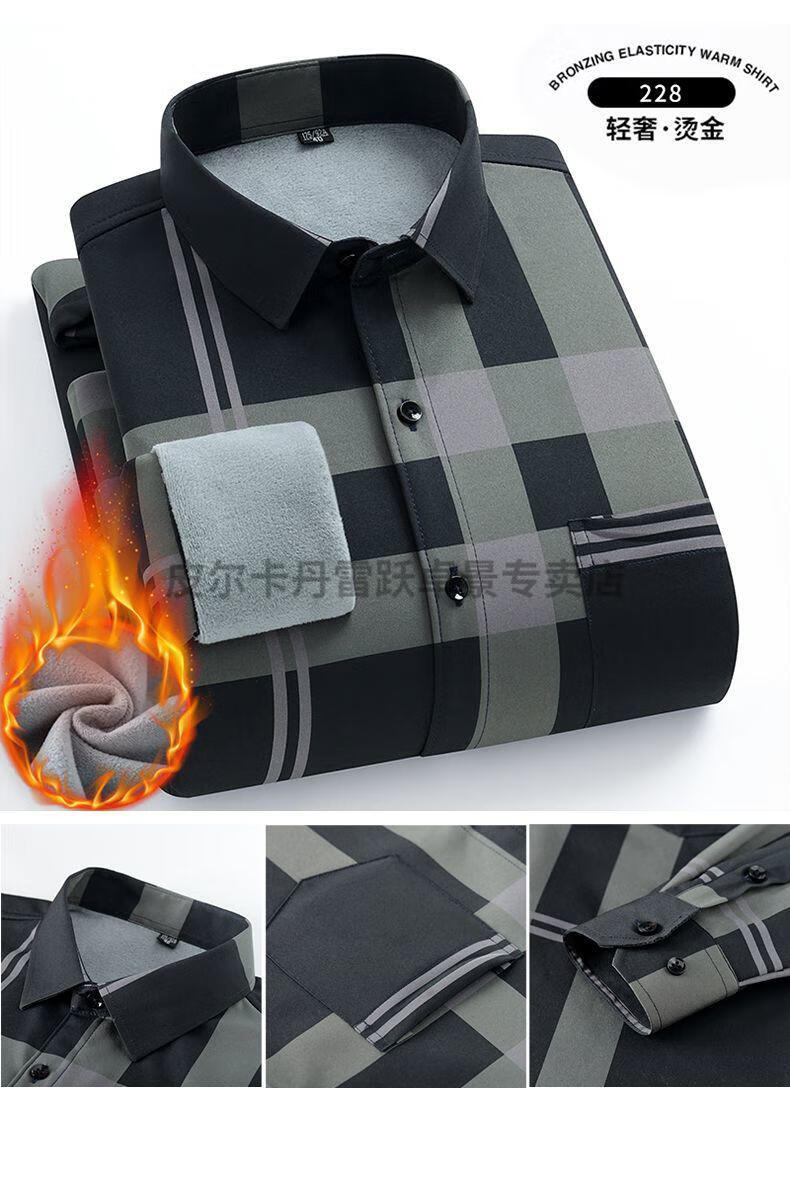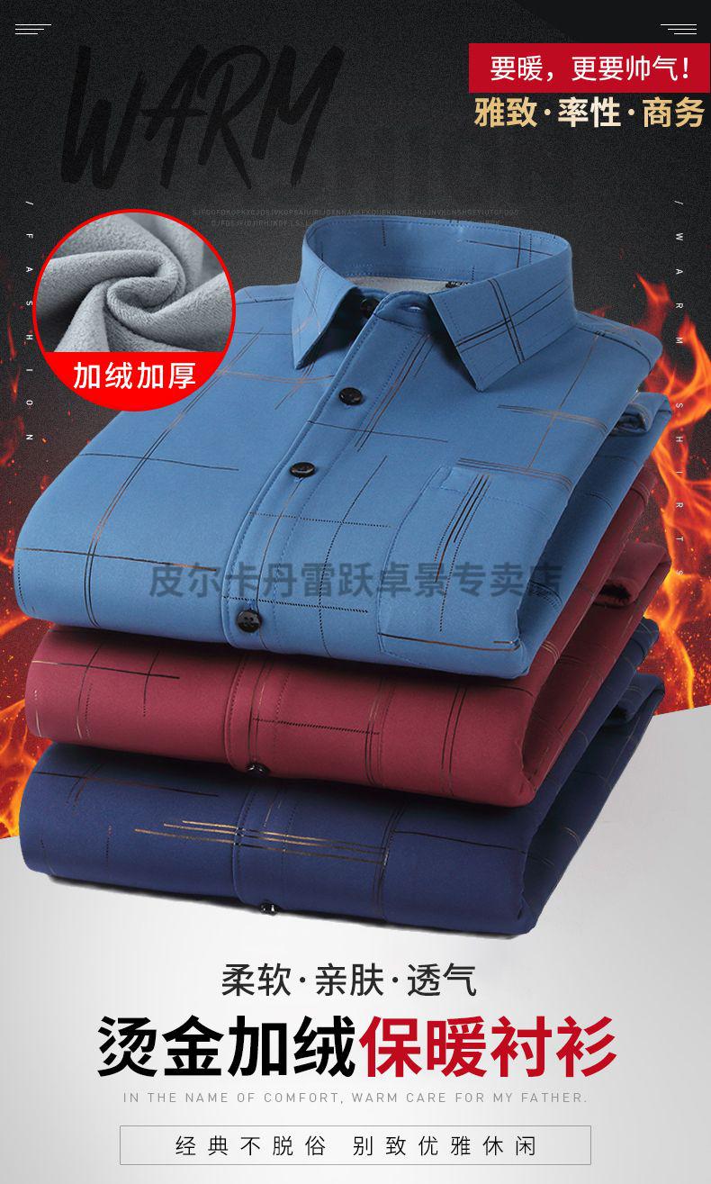 皮尔卡丹新款保暖衬衫男士秋冬中青年休闲加绒加厚防寒免烫长袖纯棉衬衣男 ZL-227黑色【加绒加厚】 40 【适合130-140斤】