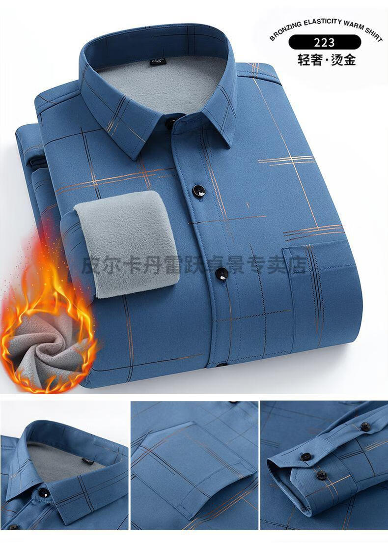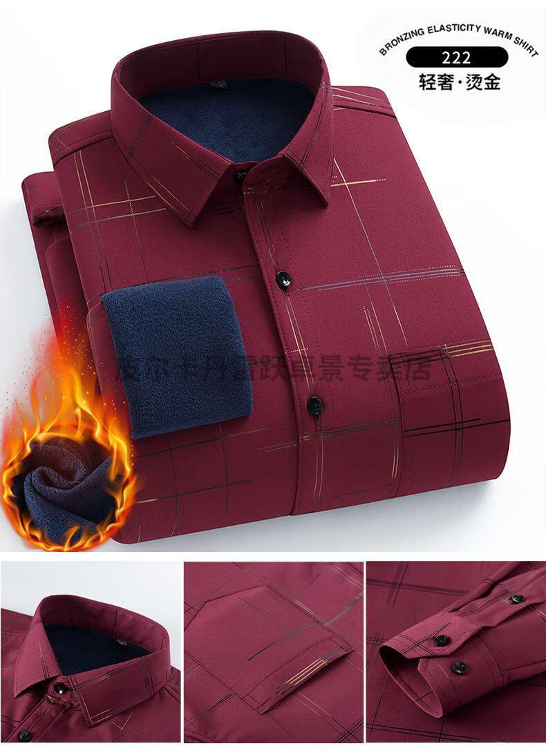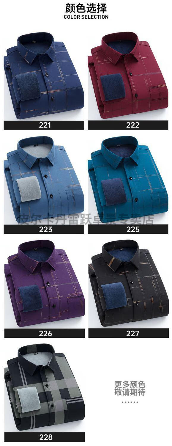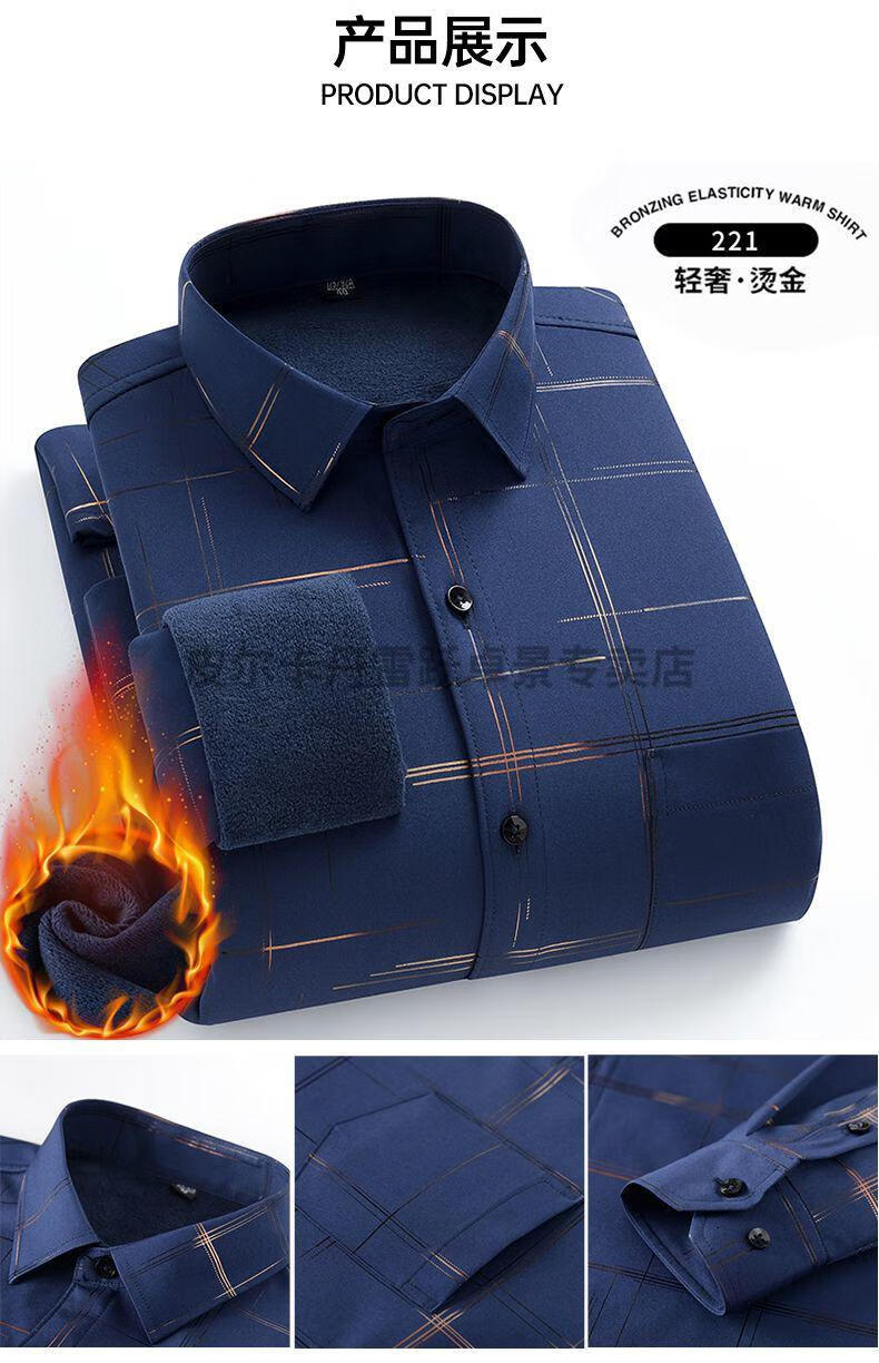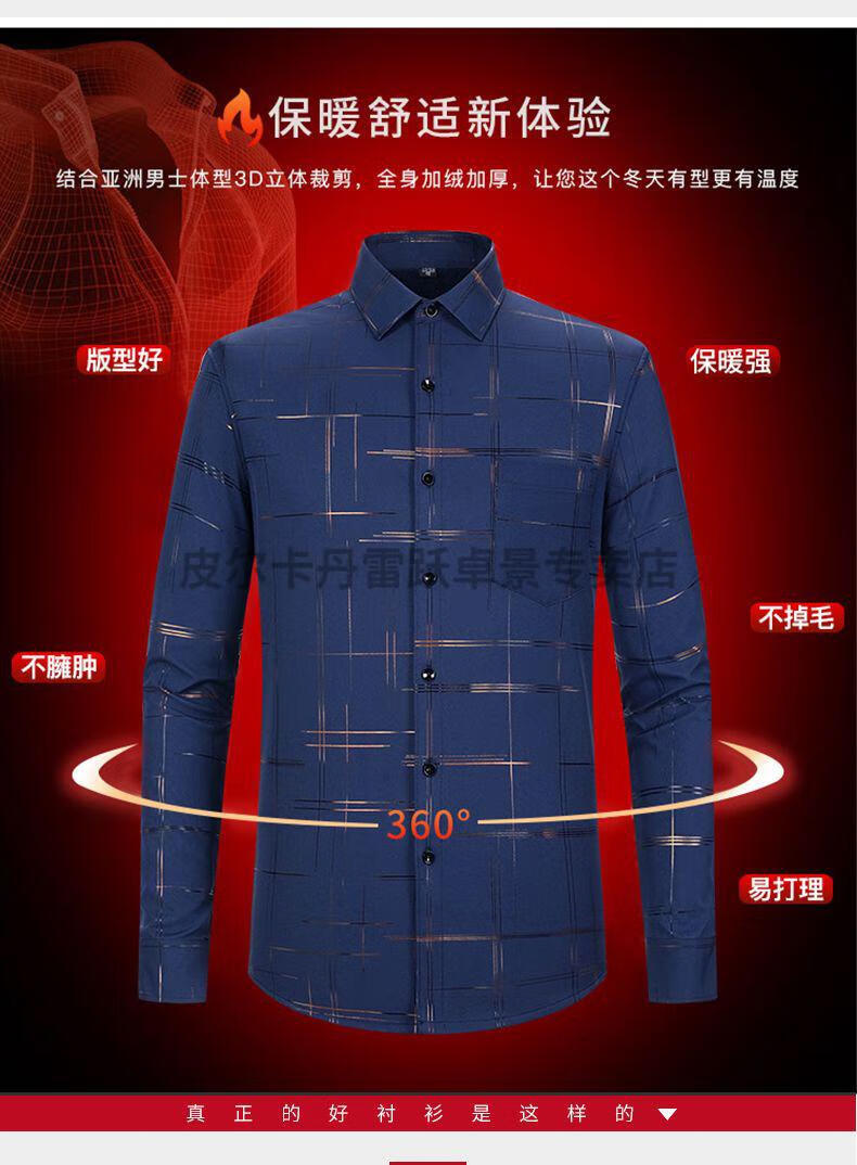 皮尔卡丹新款保暖衬衫男士秋冬中青年休闲加绒加厚防寒免烫长袖纯棉衬衣男 ZL-227黑色【加绒加厚】 40 【适合130-140斤】