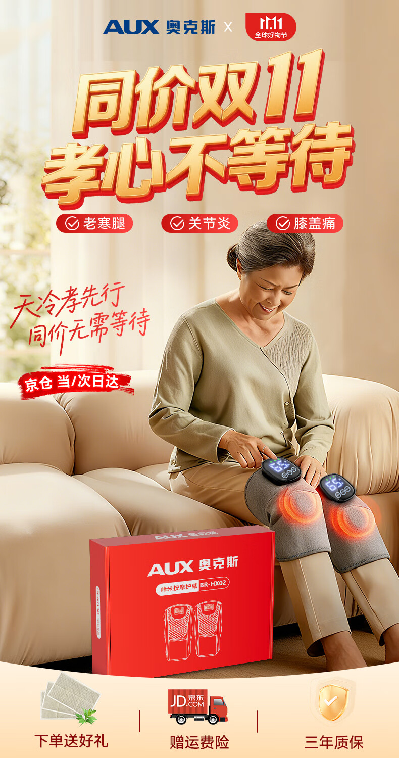 Oaks Heated Knee Massager Instrument Leg Massager Knee Hot Compress to Warm Joints Old Cold Leg Warmer Knee Guard Leg Guard Birthday Gift for Old Man Winter Same Price 11.11 Gift Box Two LCD Models 8mm Deep Massage/5 Levels of Vibration