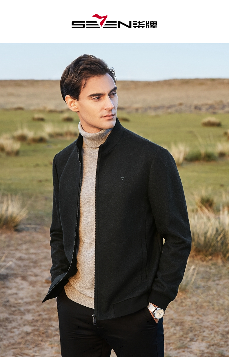 Qipai Wool Blended Jacket Men's Autumn and Winter New Business Casual Stand Collar Windproof Wool Jacket Men's Jacket Dark Green - Upgraded Version M (170/88A)