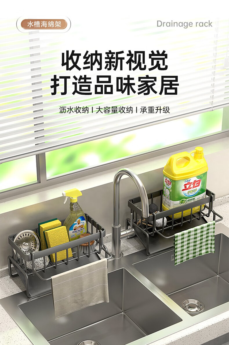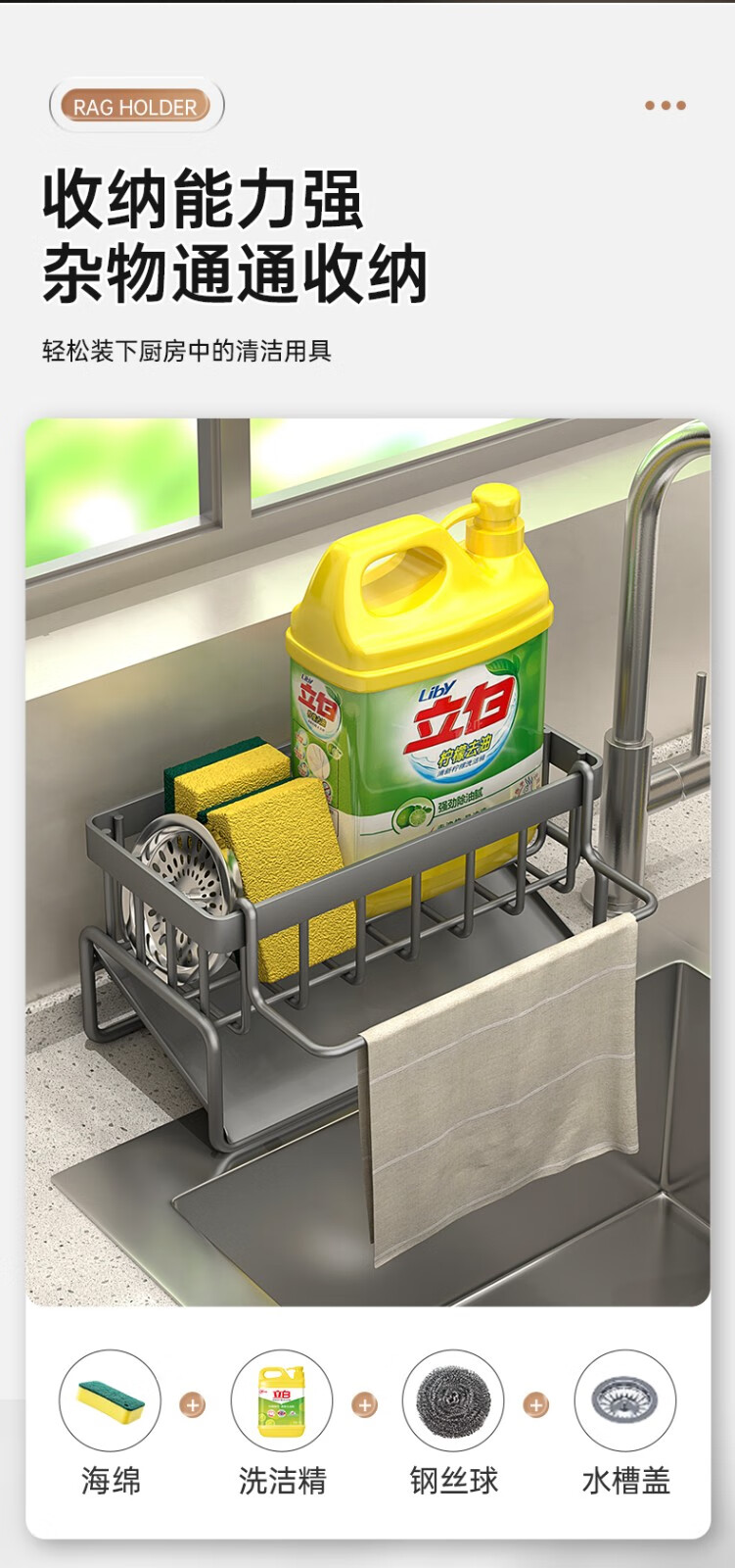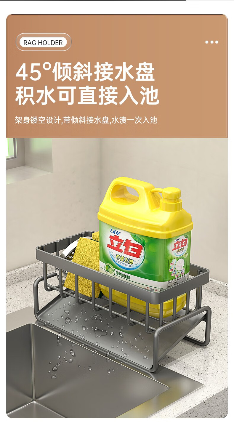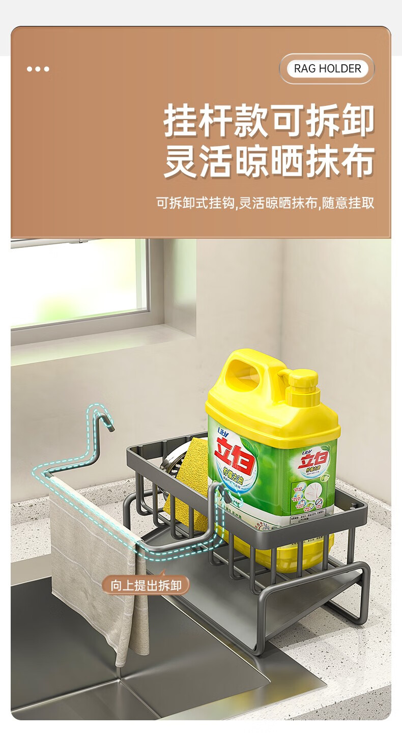 Bailu kitchen rack sink rag drain rack faucet sink dishwashing detergent steel ball storage rack artifact kitchen sink rack with rod gun gray