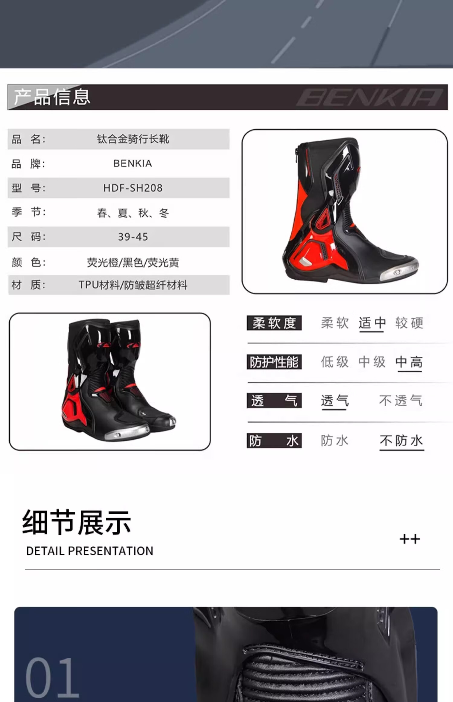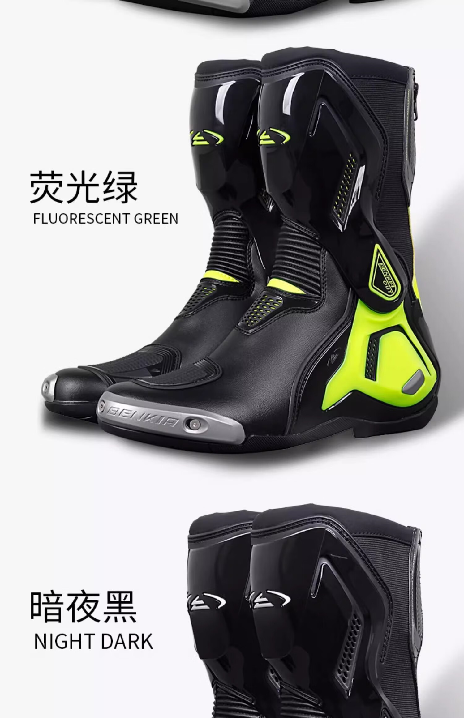 BENKIA cycling boots, motorcycle riding shoes, rally off-road racing shoes, warm, waterproof, anti-fall motorcycle travel, four seasons, black/fluorescent orange track version 43 (GB code 265)