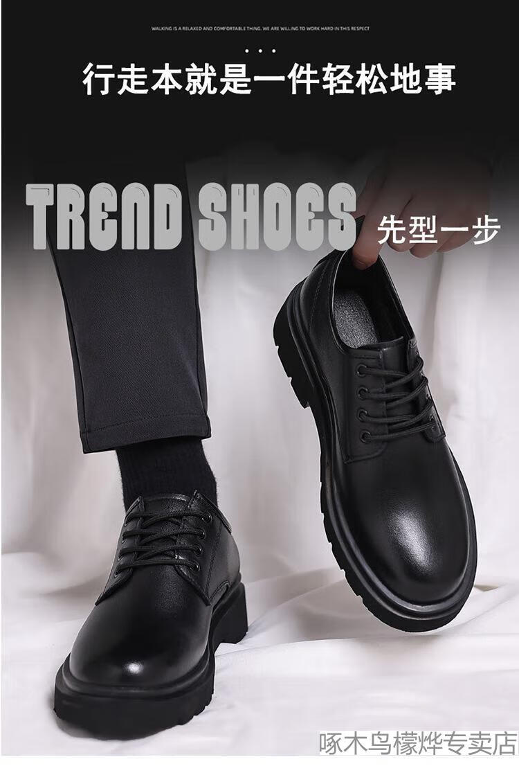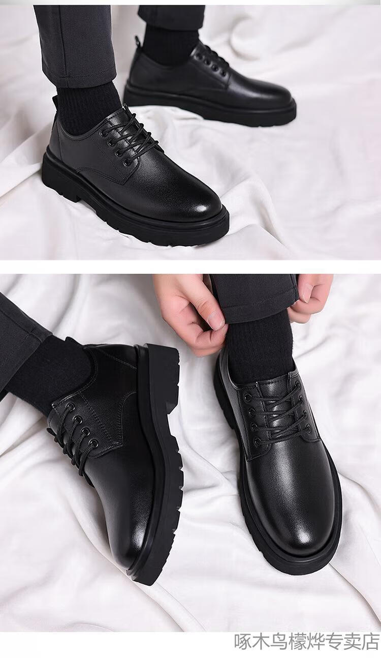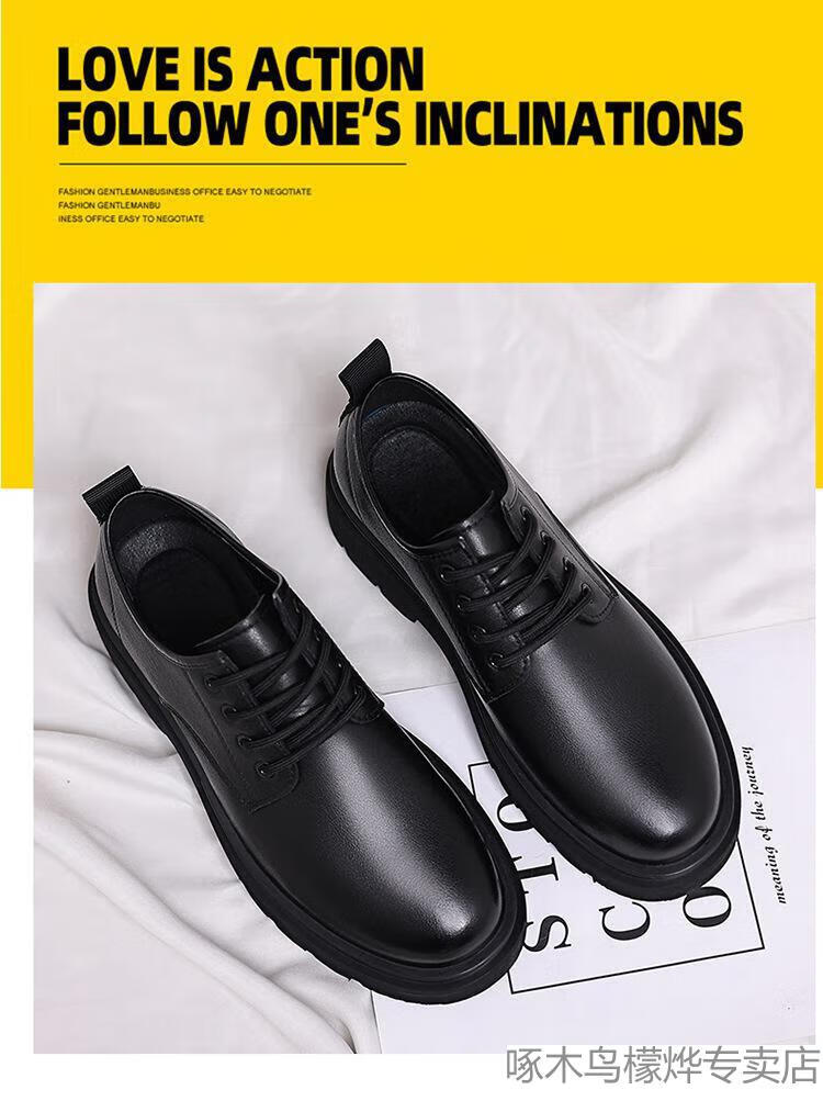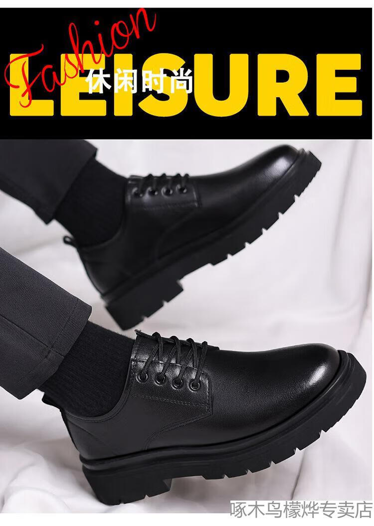 Woodpecker Black Casual Leather Shoes Men's Genuine Leather 2025 New Four Seasons British Style Business Formal Wear Large Toe Work Trendy Shoes Black Four Seasons 40