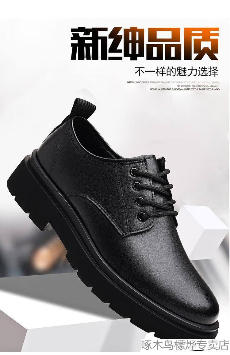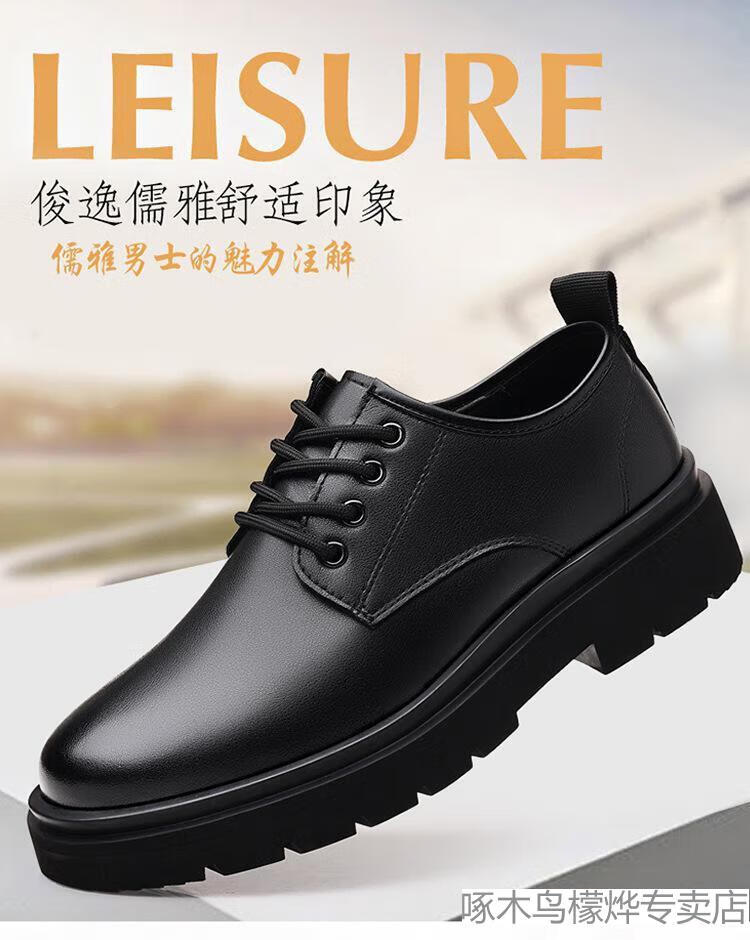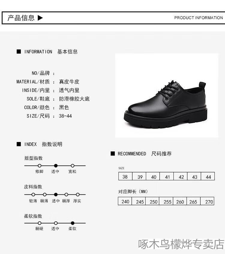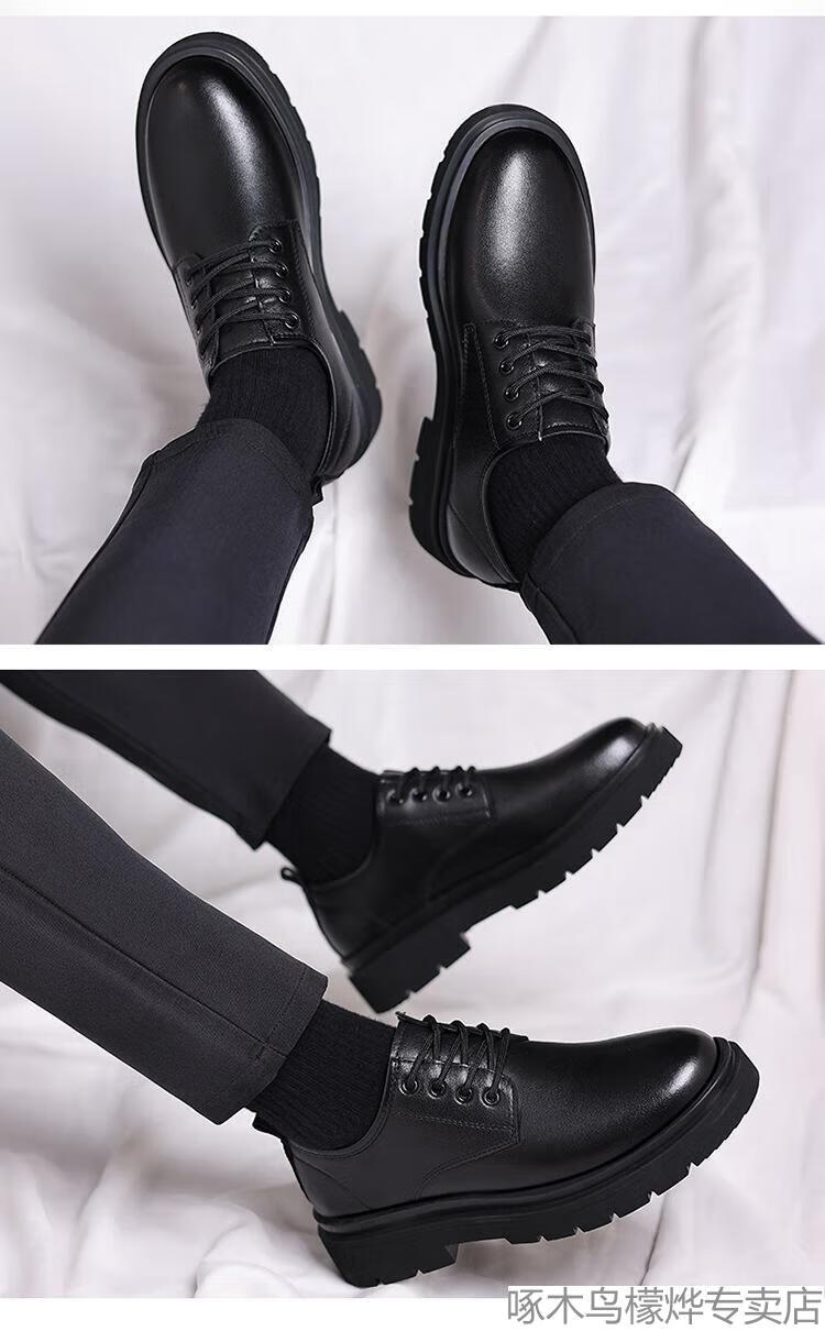 Woodpecker Black Casual Leather Shoes Men's Genuine Leather 2025 New Four Seasons British Style Business Formal Wear Large Toe Work Trendy Shoes Black Four Seasons 40