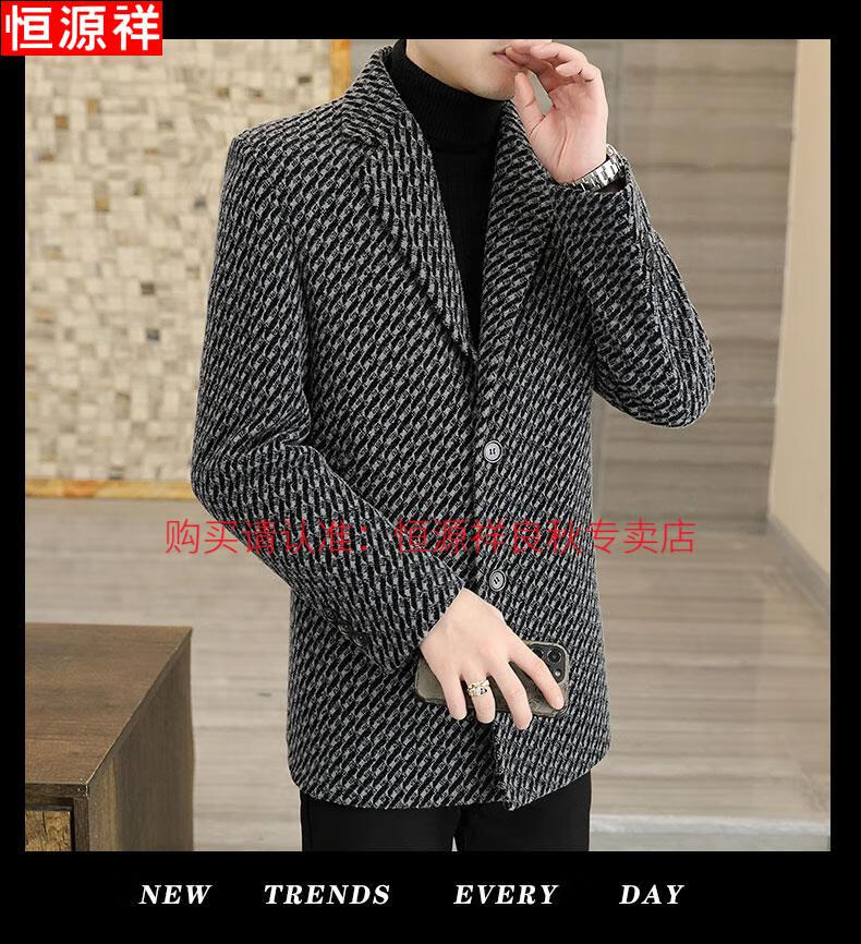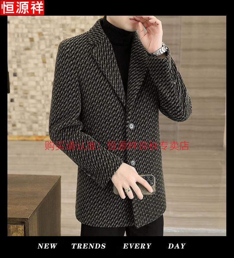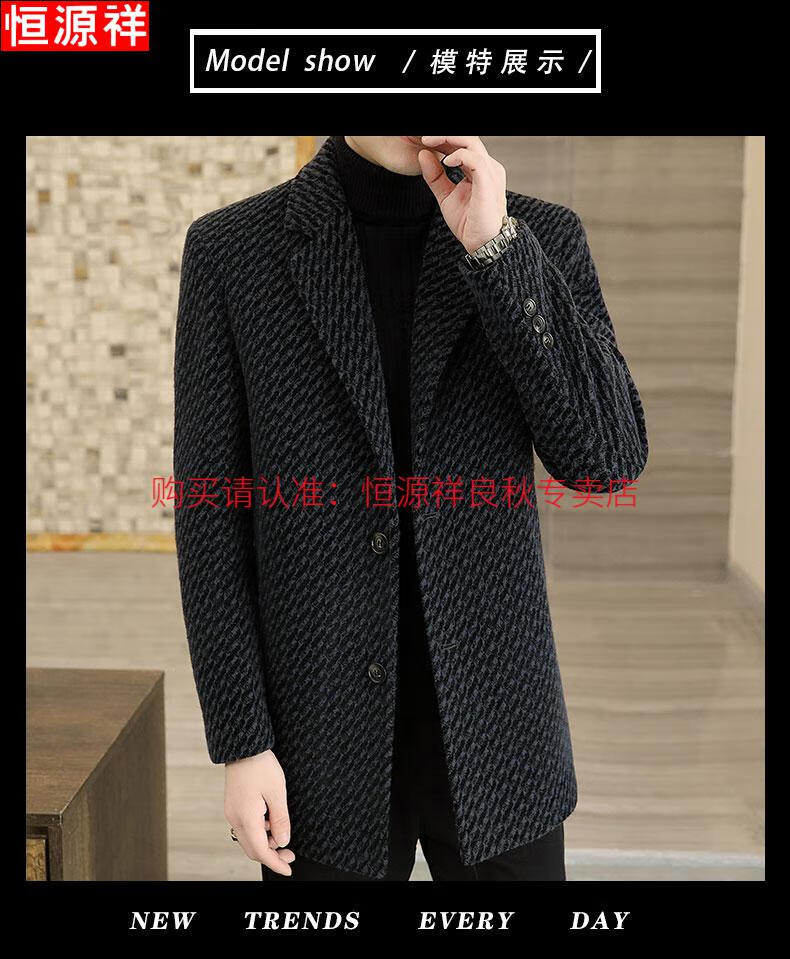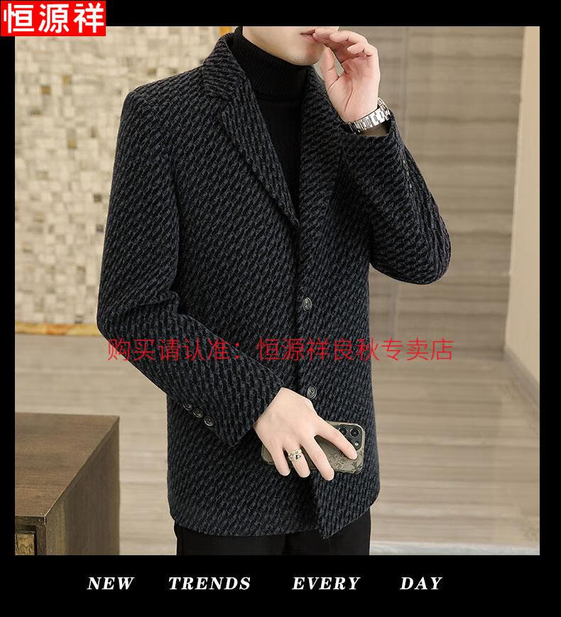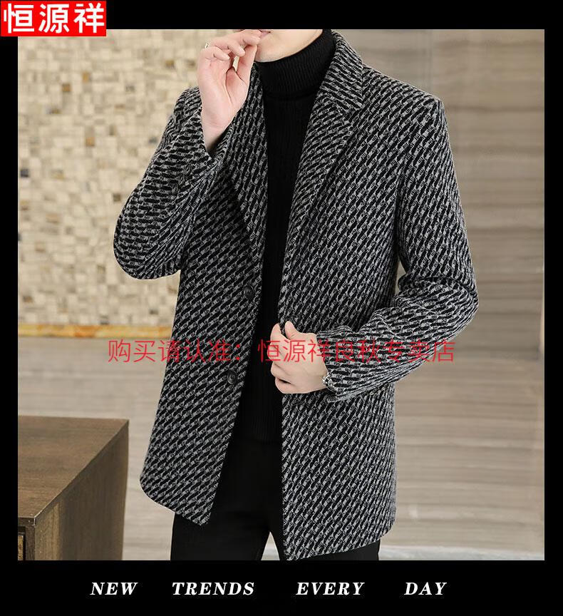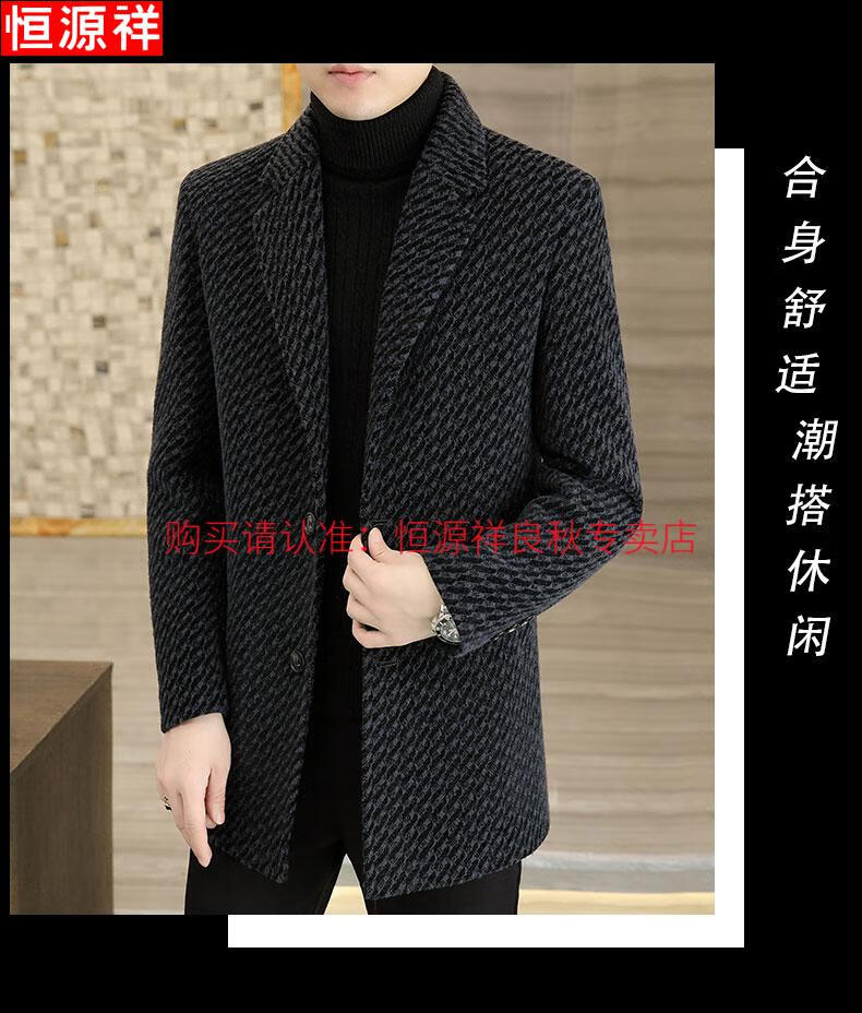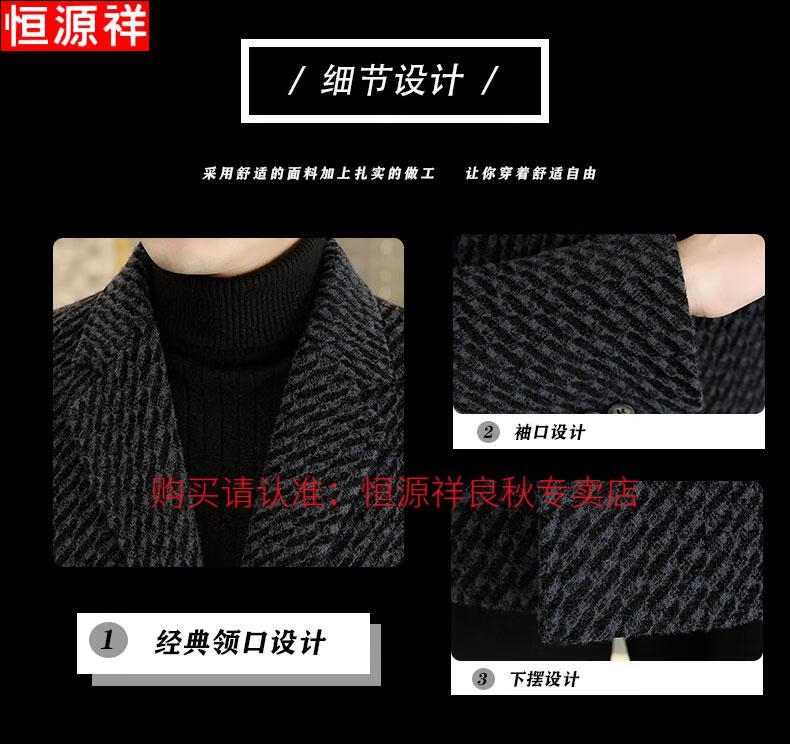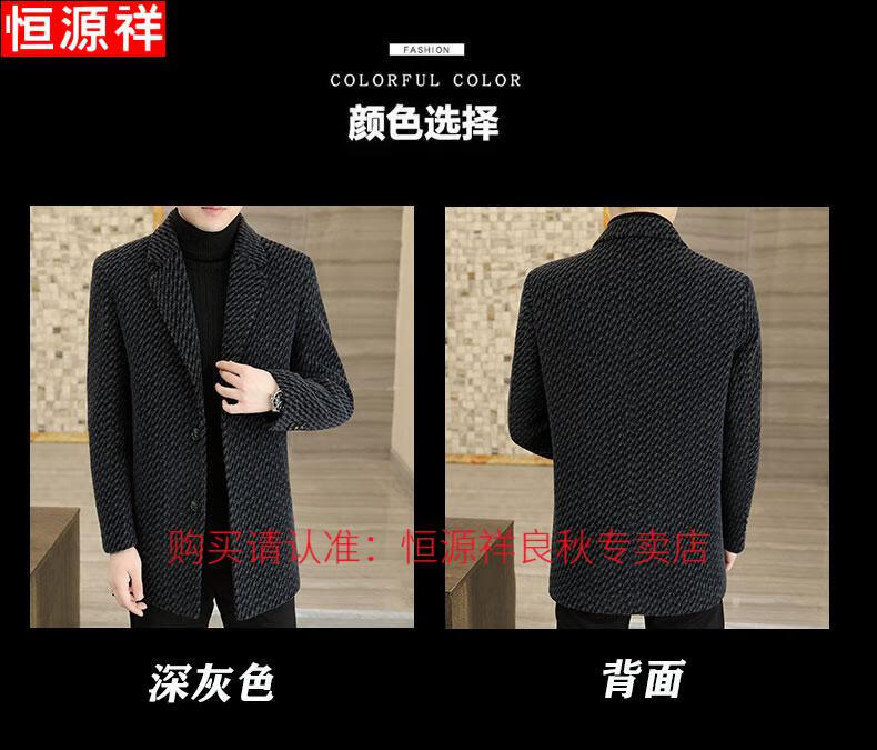 Hengyuanxiang autumn and winter new woolen coat men's coat mid-length thickened casual suit collar middle-aged windbreaker men's trend 8812 dark gray single style 185/2XL 140-165Jin Jin equals 0.5 kg