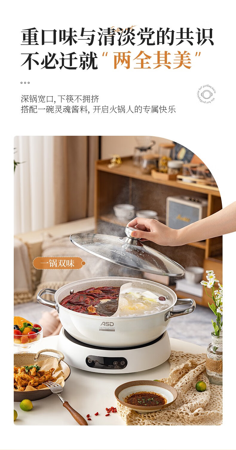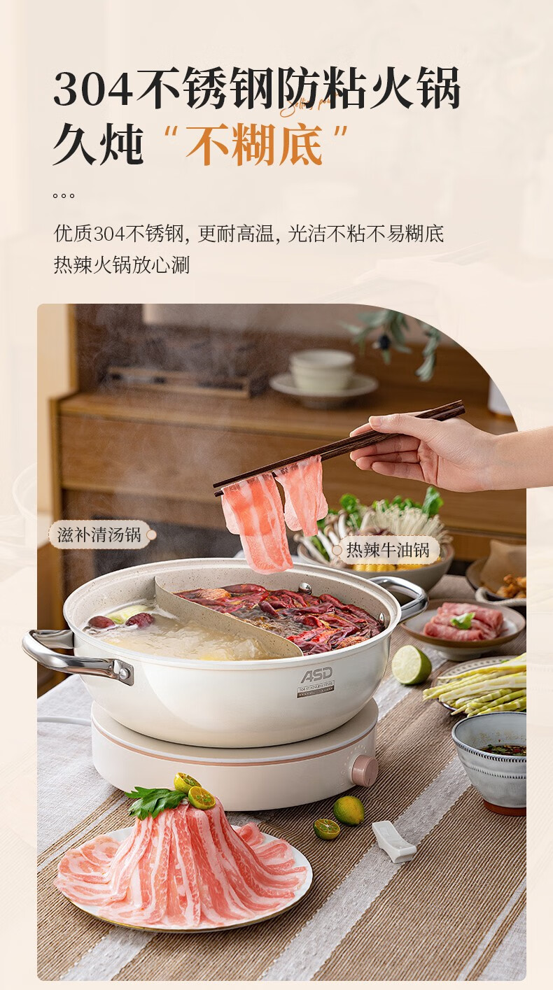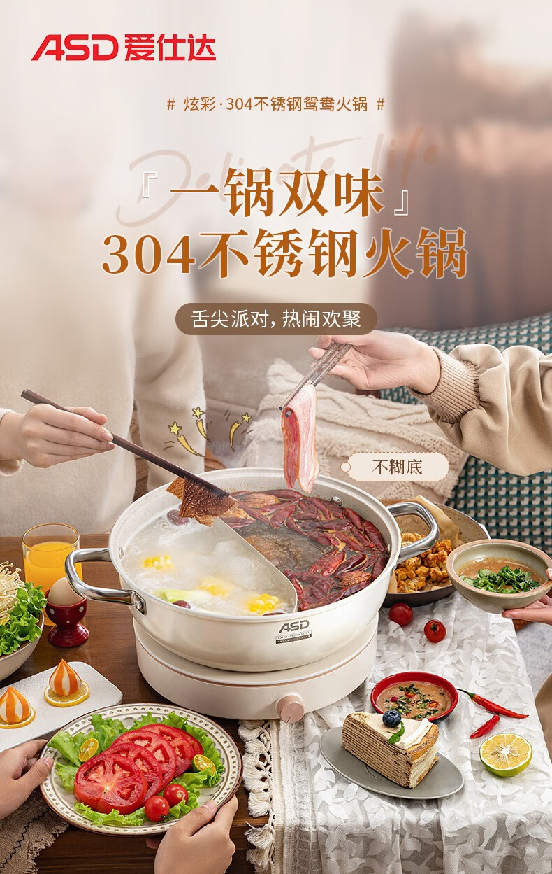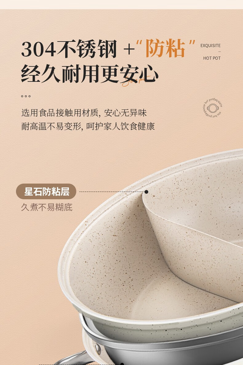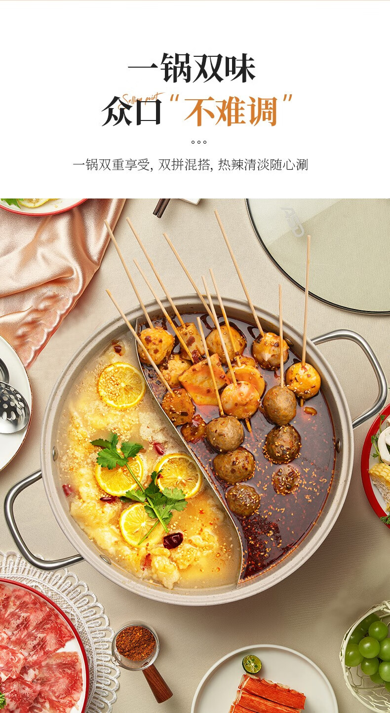 Aistar Olla Caliente Yuanyang Olla Cocina de inducción doméstica Olla Especial Espesada Acero Inoxidable 304 Antiadherente y no fácil de Pegar Olla Caliente Gran Capacidad Antiadherente Olla Caliente Yuanyang 32 cm