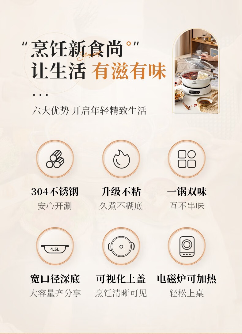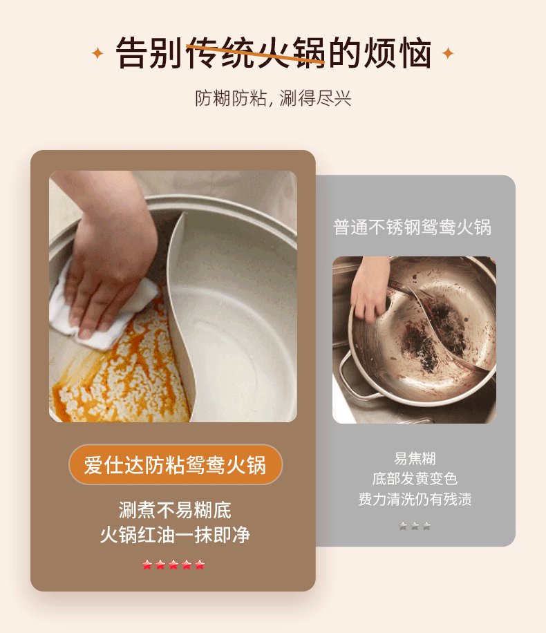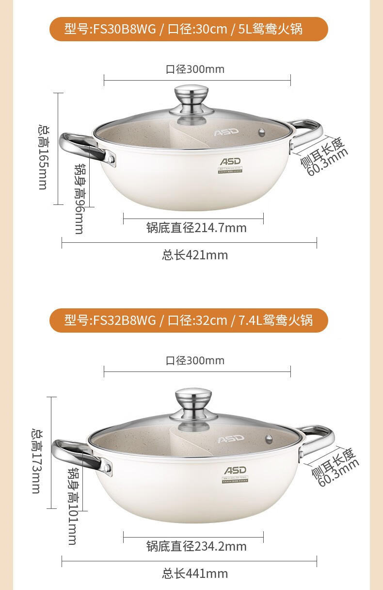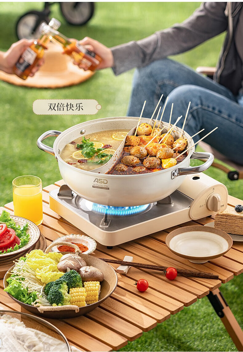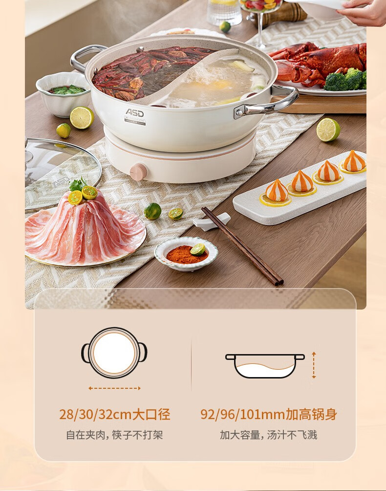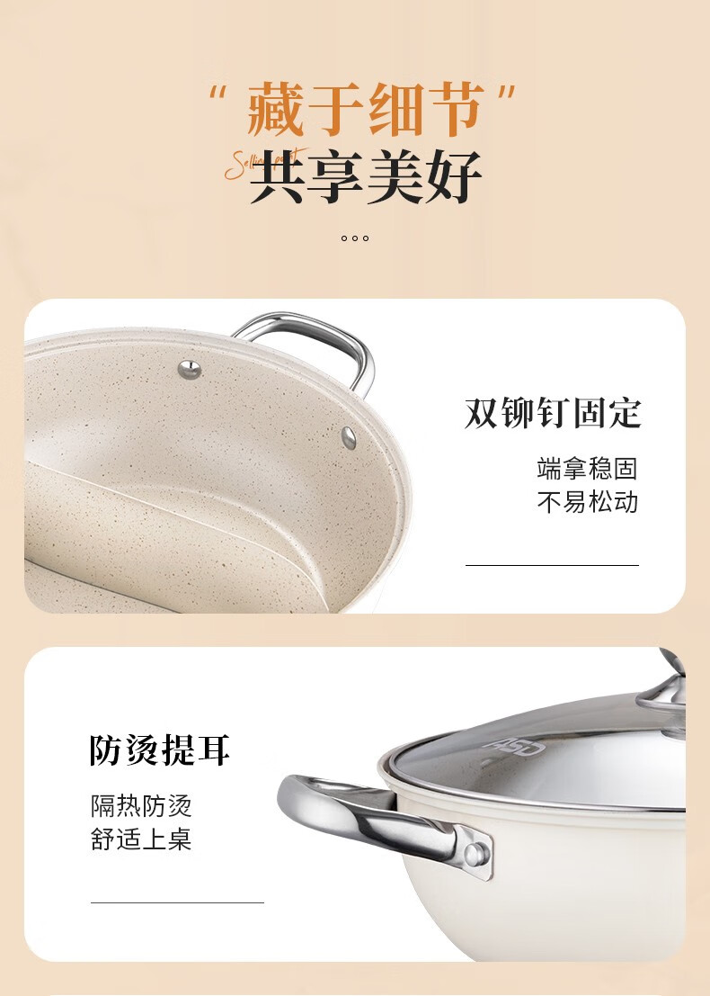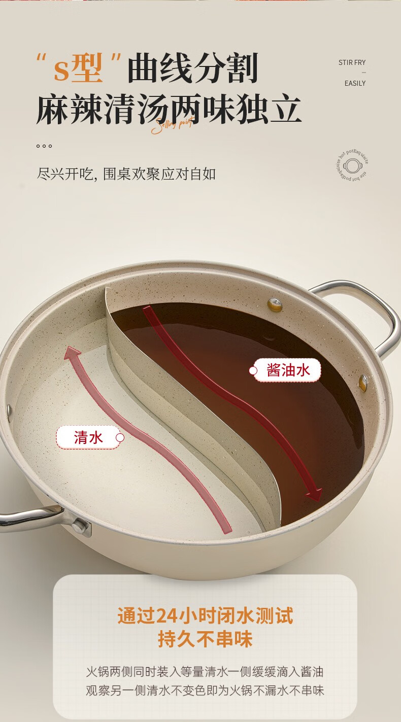 Aistar Olla Caliente Yuanyang Olla Cocina de inducción doméstica Olla Especial Espesada Acero Inoxidable 304 Antiadherente y no fácil de Pegar Olla Caliente Gran Capacidad Antiadherente Olla Caliente Yuanyang 32 cm