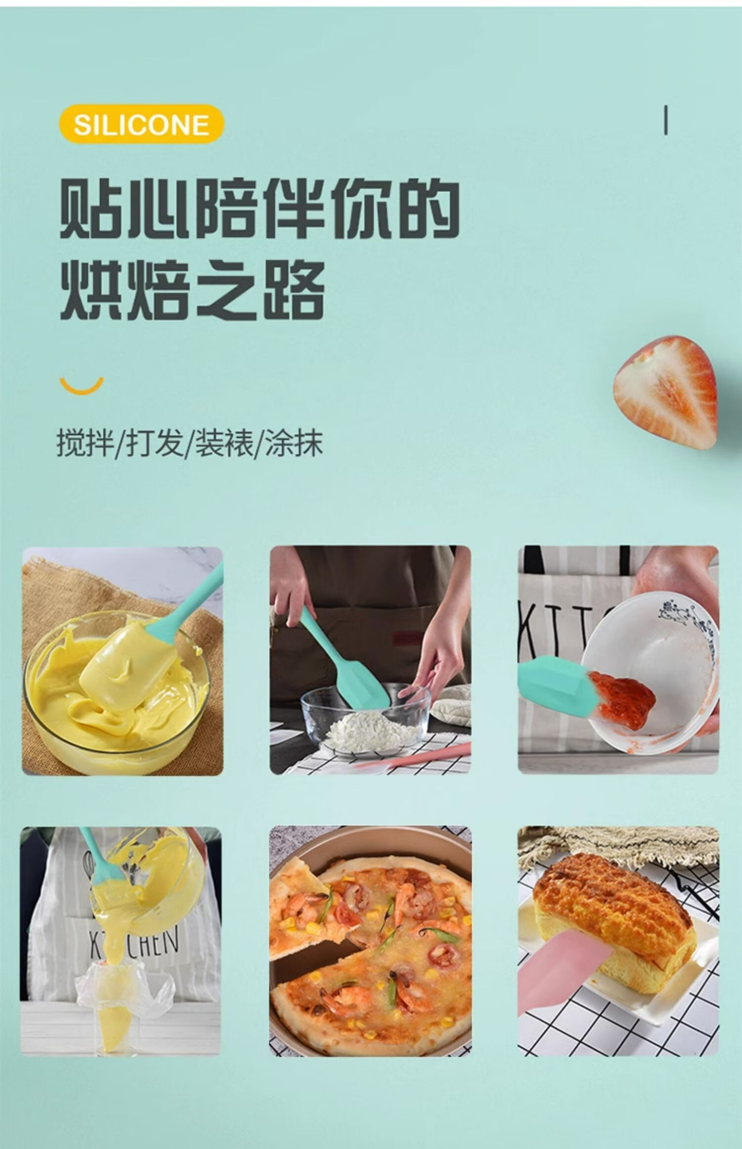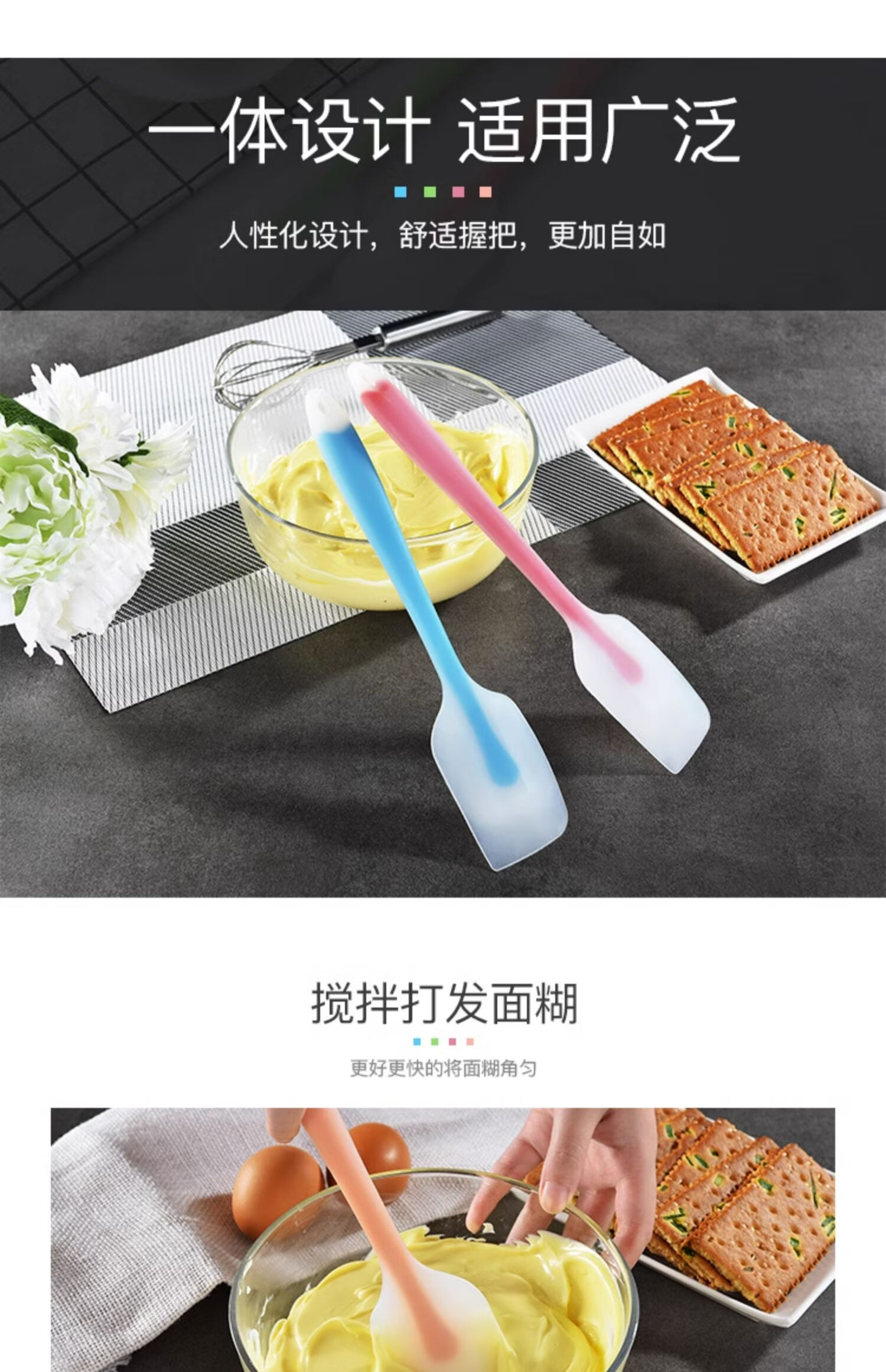 Menghua set integrated silicone spatula large high temperature resistant cream spatula cake mixing spatula baking tool scraper extra large blue silicone knife