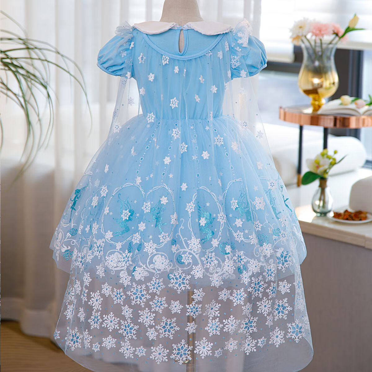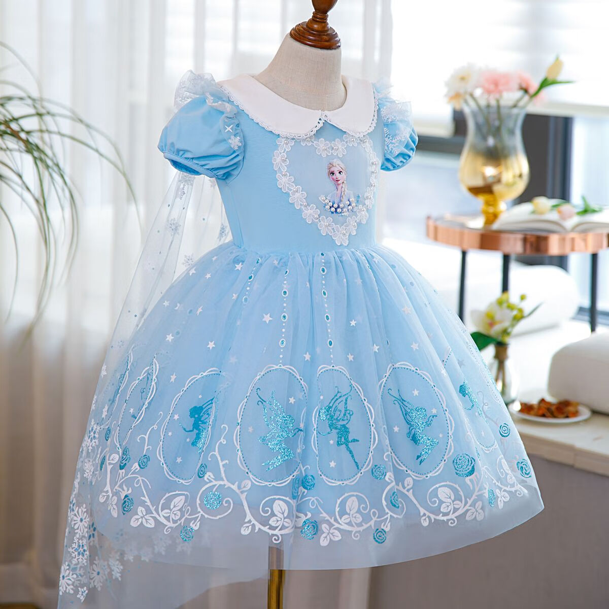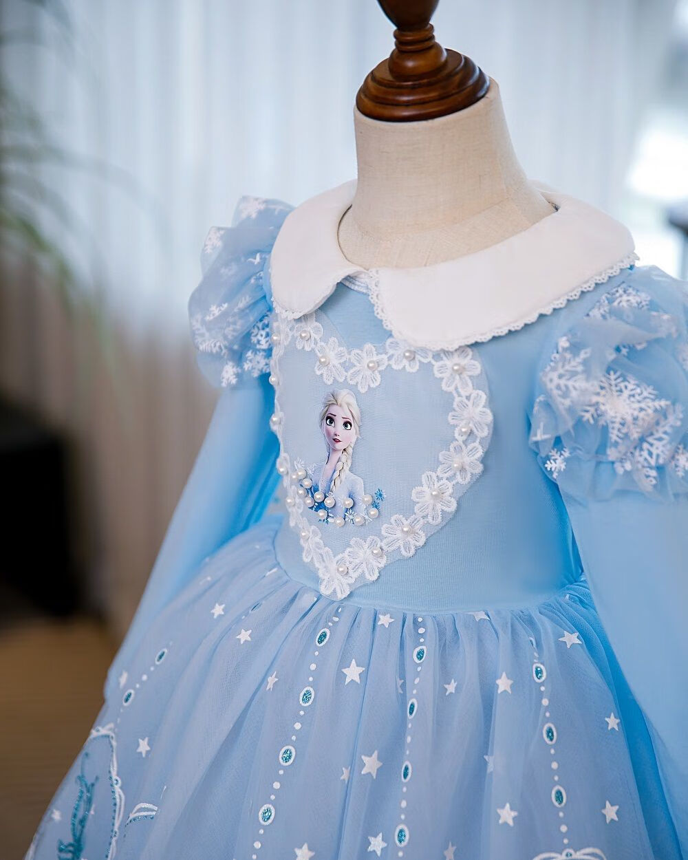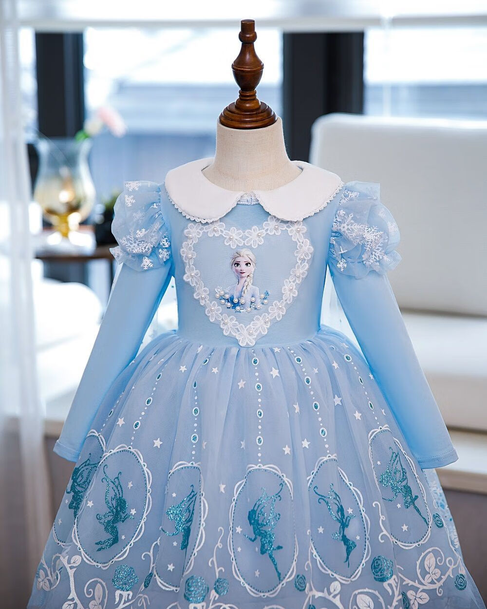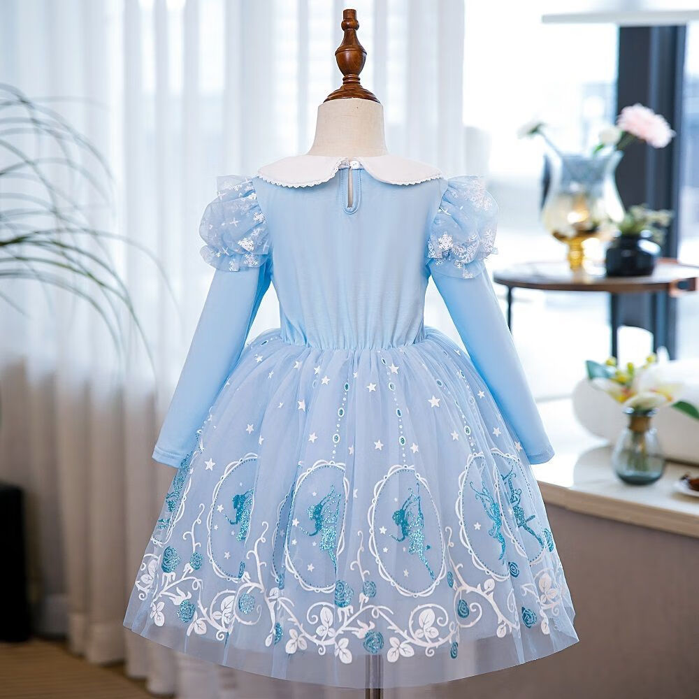 G.duck Elsa Princess Dress Girls Spring and Autumn Frozen Puff Dress Autumn and Winter Children's Elsa Dress Dress Skirt Long Sleeve Blue (with Veil) + Eight-piece Set 120 Suitable for heights around 110cm