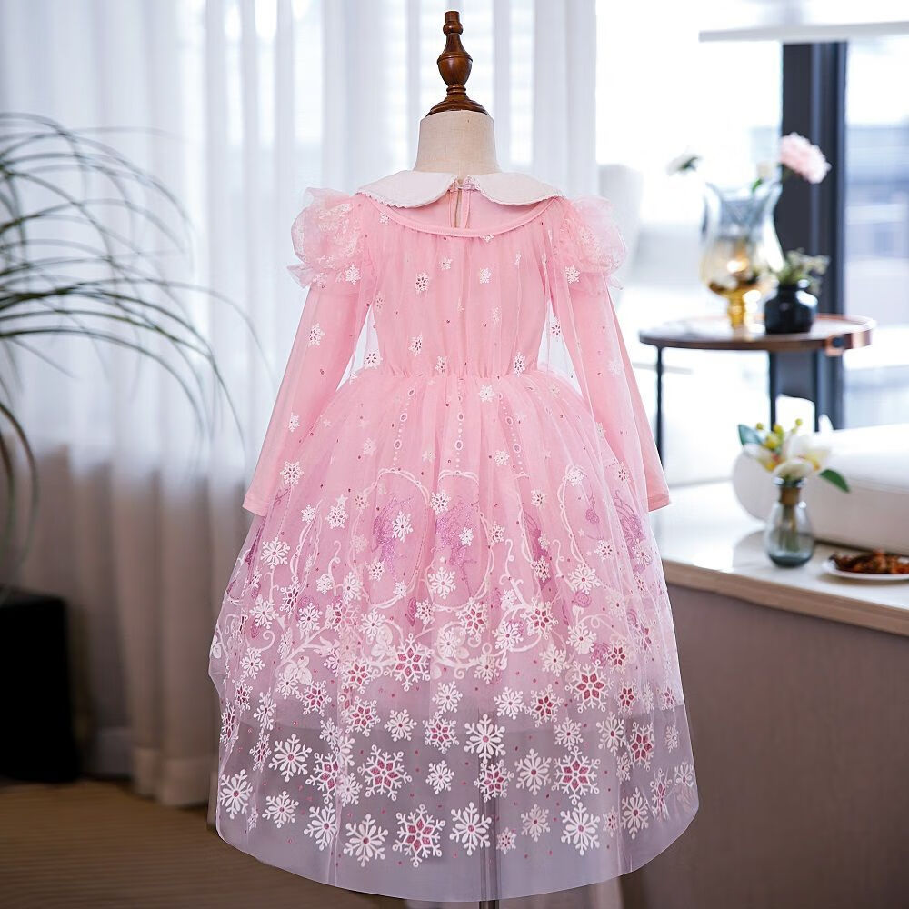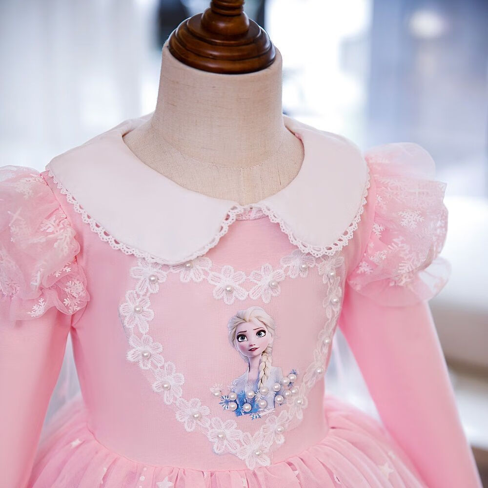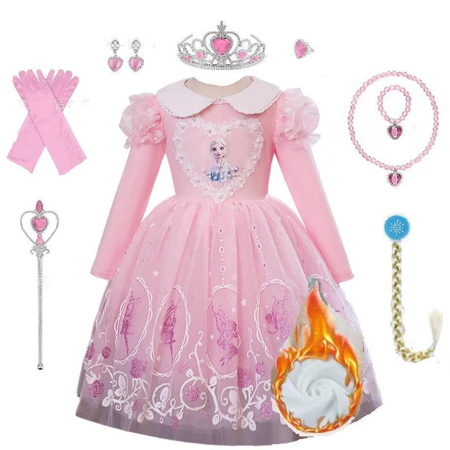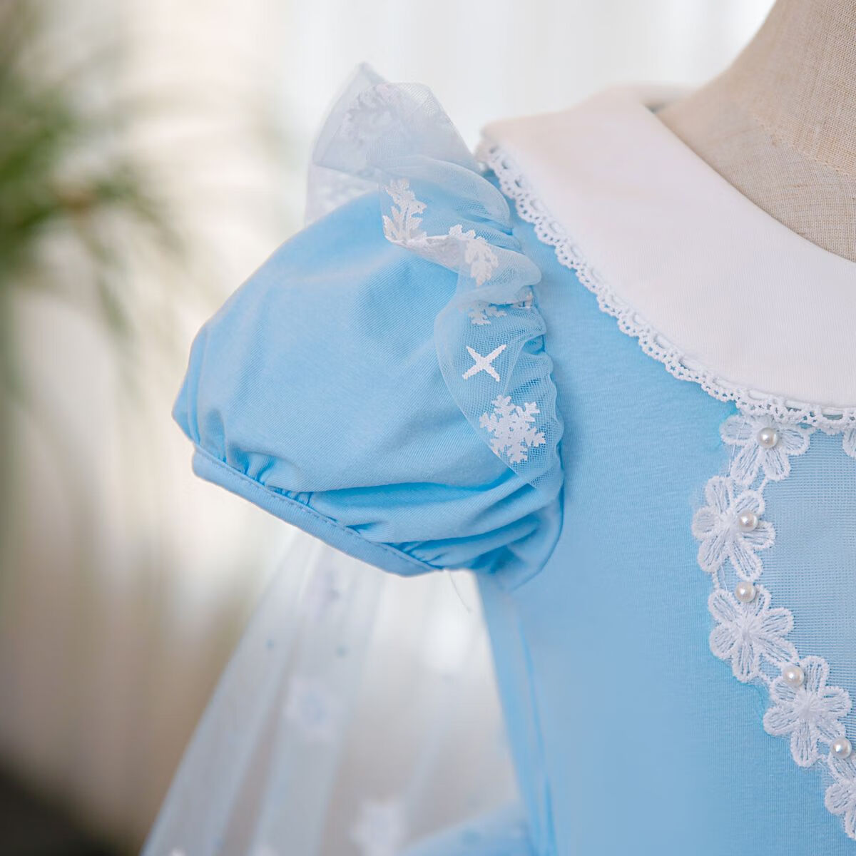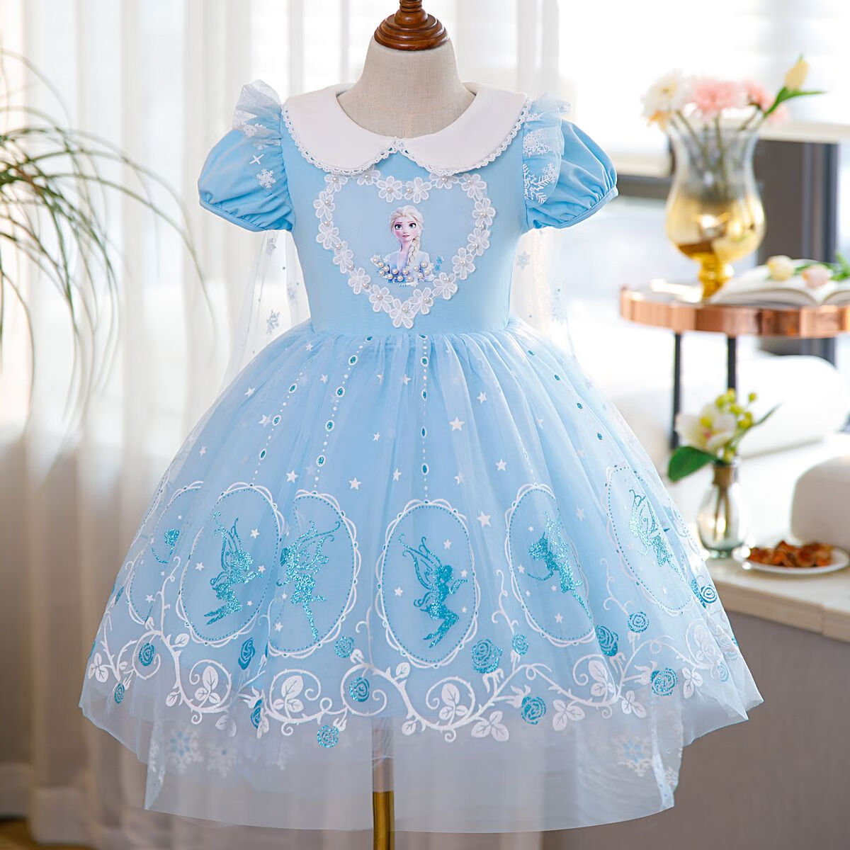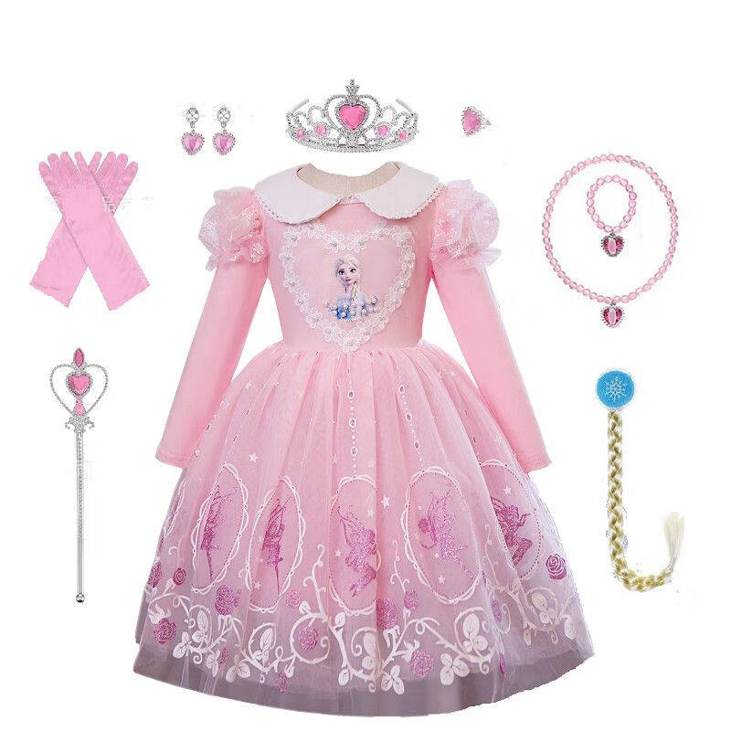 G.duck Elsa Princess Dress Girls Spring and Autumn Frozen Puff Dress Autumn and Winter Children's Elsa Dress Dress Skirt Long Sleeve Blue (with Veil) + Eight-piece Set 120 Suitable for heights around 110cm