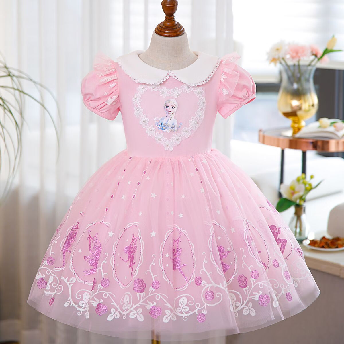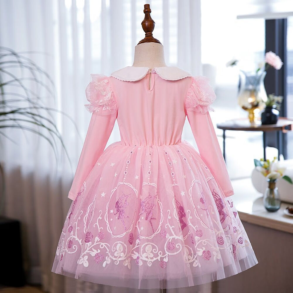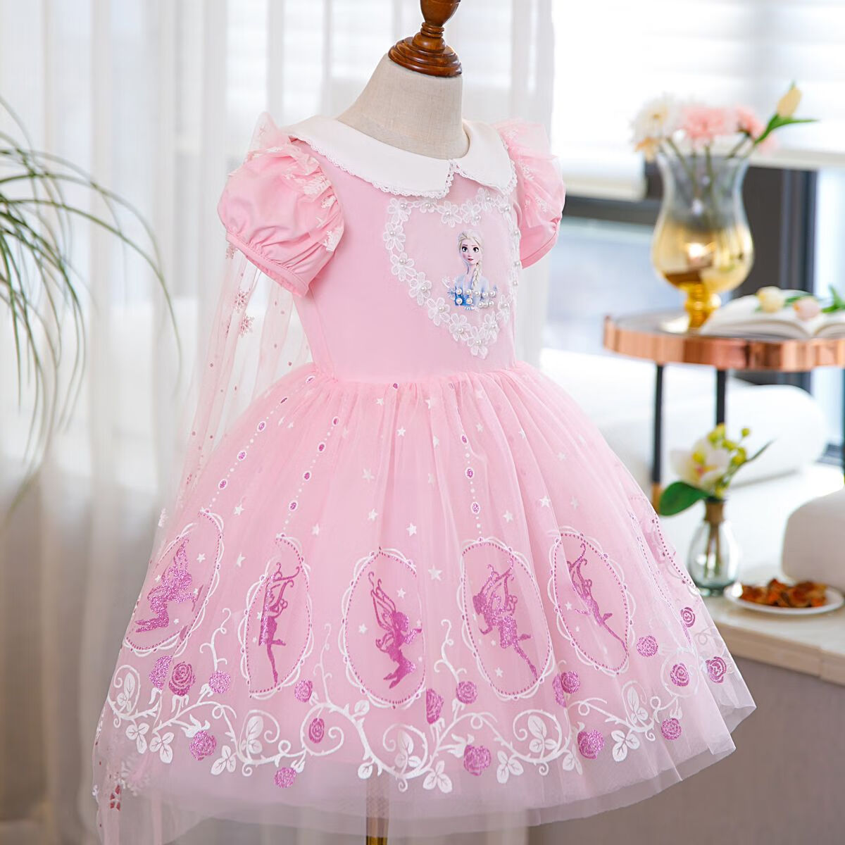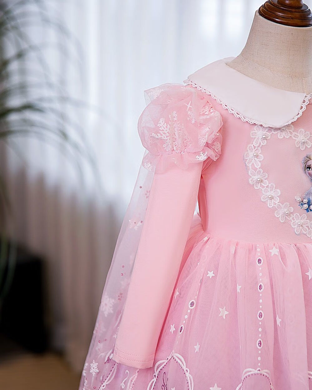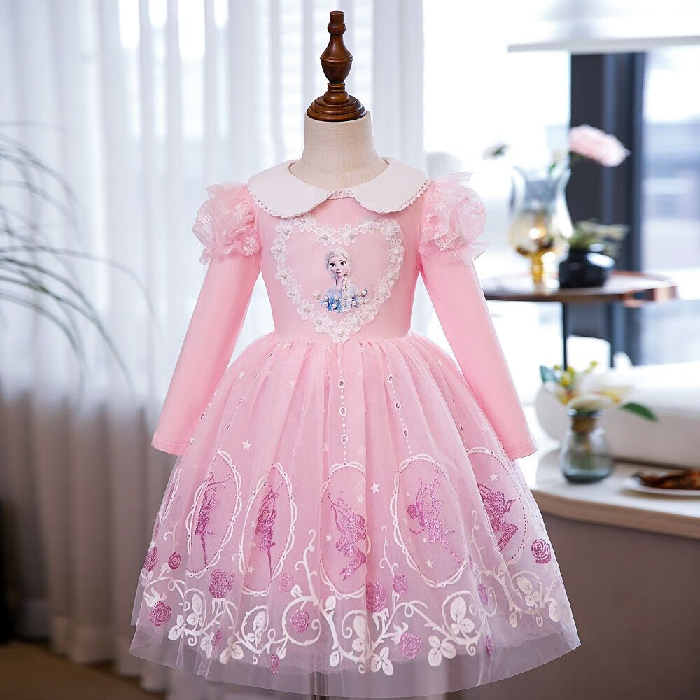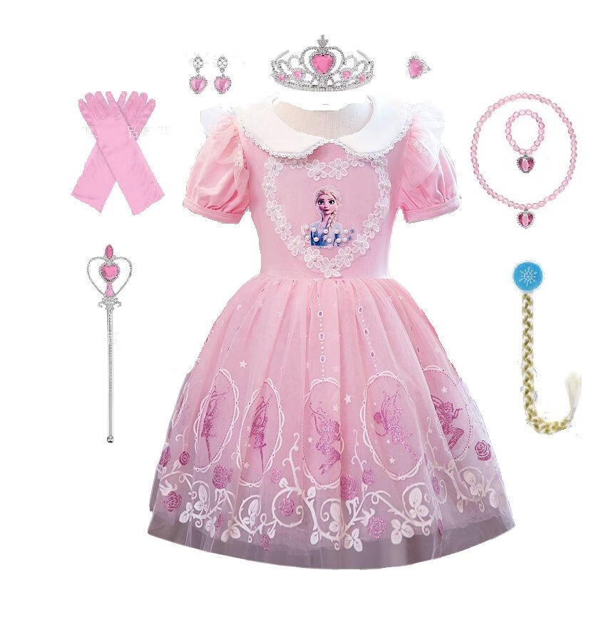 G.duck Elsa Princess Dress Girls Spring and Autumn Frozen Puff Dress Autumn and Winter Children's Elsa Dress Dress Skirt Long Sleeve Blue (with Veil) + Eight-piece Set 120 Suitable for heights around 110cm