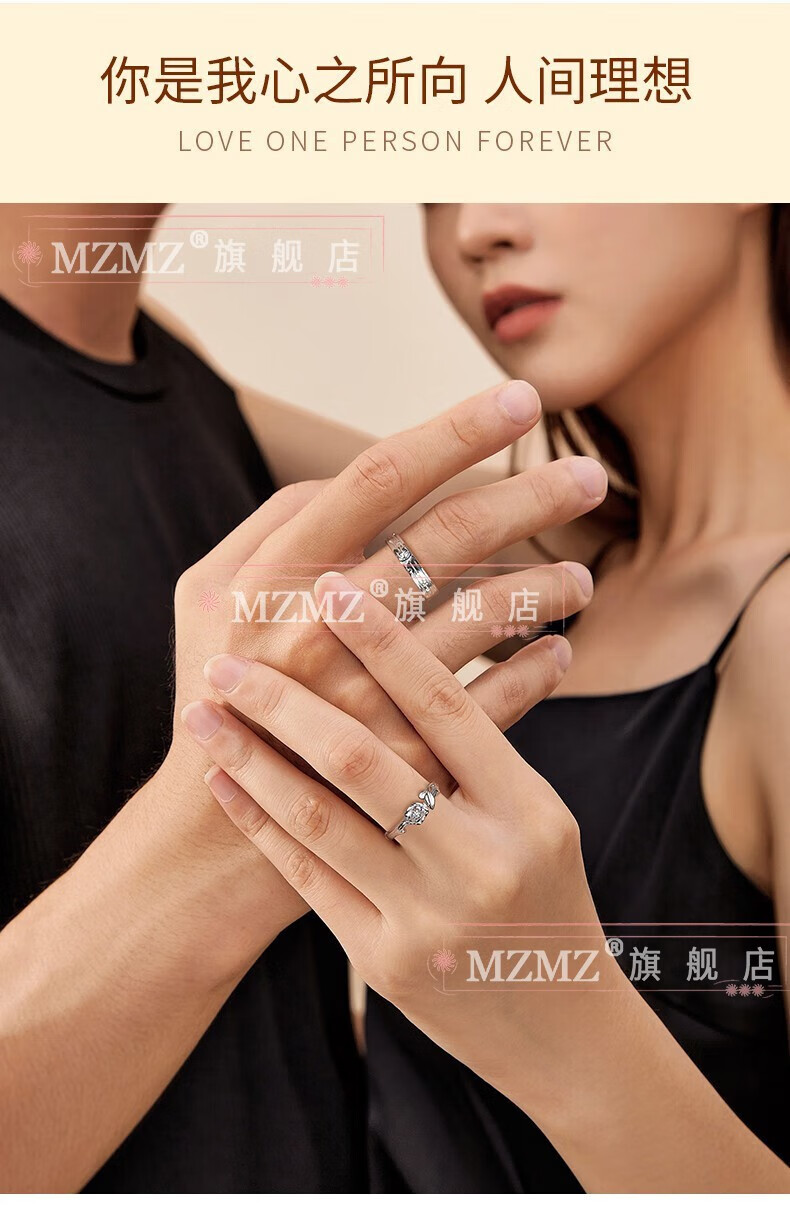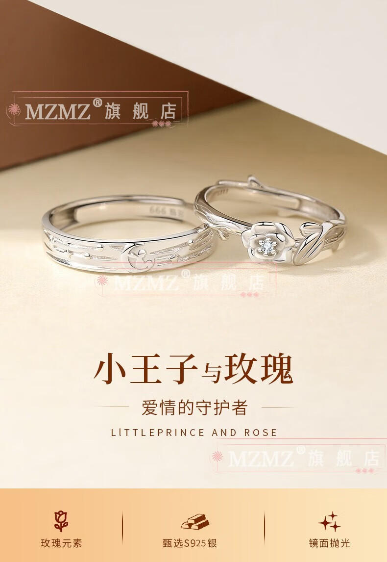 MZMZ Little Prince and Rose Couple Ring PT950 Platinum Adjustable Engagement Ring Birthday Gift for Girlfriend Couple Ring Live Pair