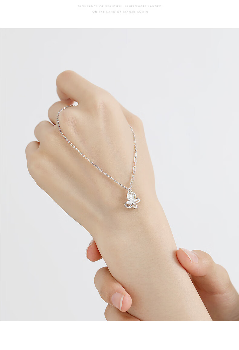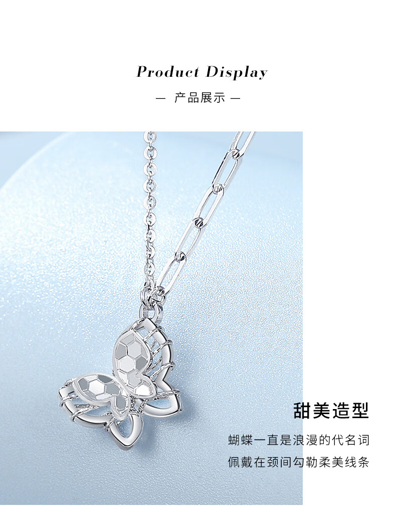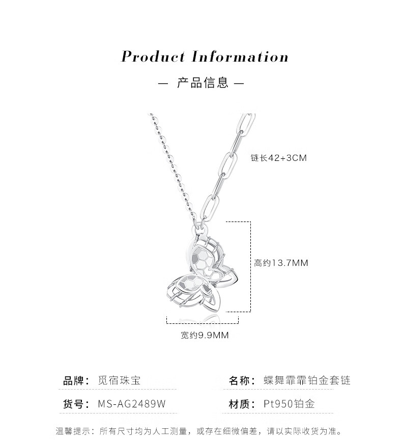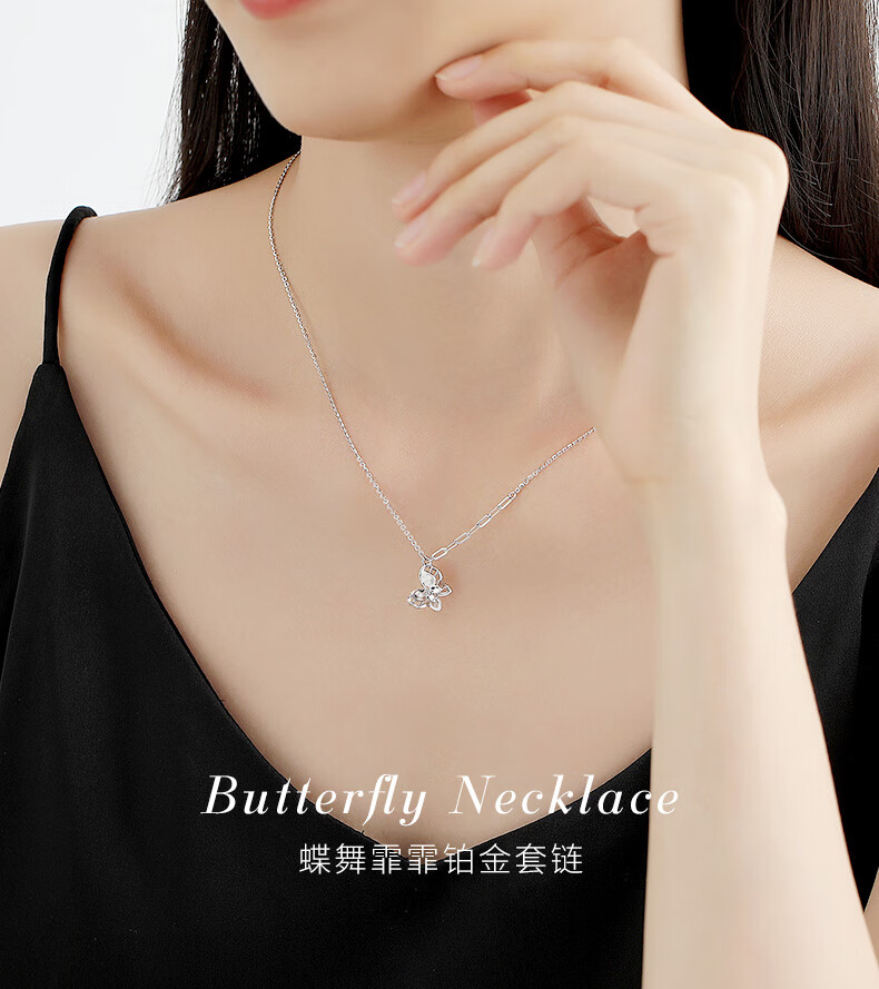 Misu PT950 platinum necklace for women, butterfly pendant, platinum clavicle chain, smart chain set, Christmas gift for girlfriend, weight 3.8-4.0g, length 43+3cm+ blue silk gift box