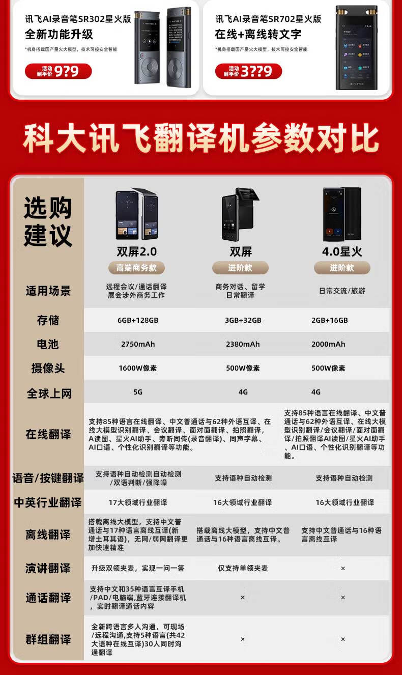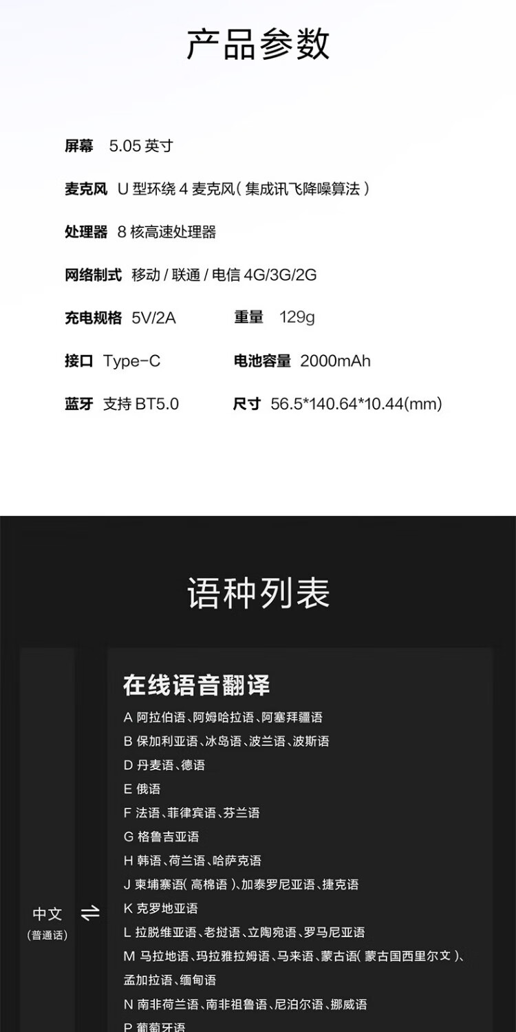 IFLYTEK Translator 4.0 Spark Version/Dual-screen Translator Multilingual Offline Translation Voice Photography Translator Translation Pen Traveling Abroad Spoken Language Real-time Simultaneous Translation Artifact iFLYTEK Translator 2.0 Black Consult Customer Service for More Discounts