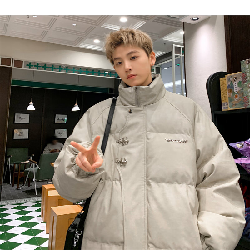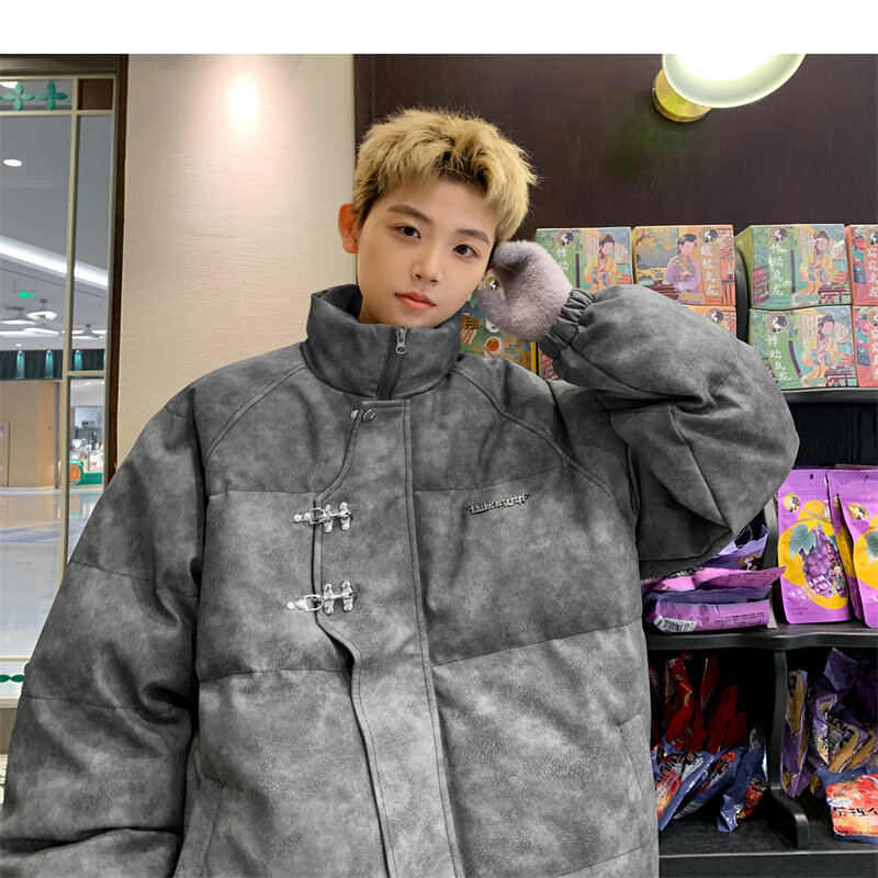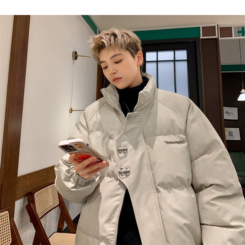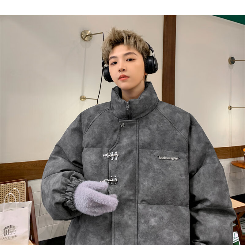 OEMG American retro metal airplane button cotton coat for men and women in winter thickened warm loose bread coat cotton coat gray XL recommended 125-140Jin Jin equals 0.5 kg