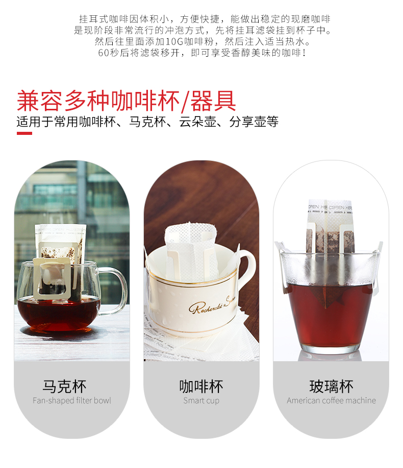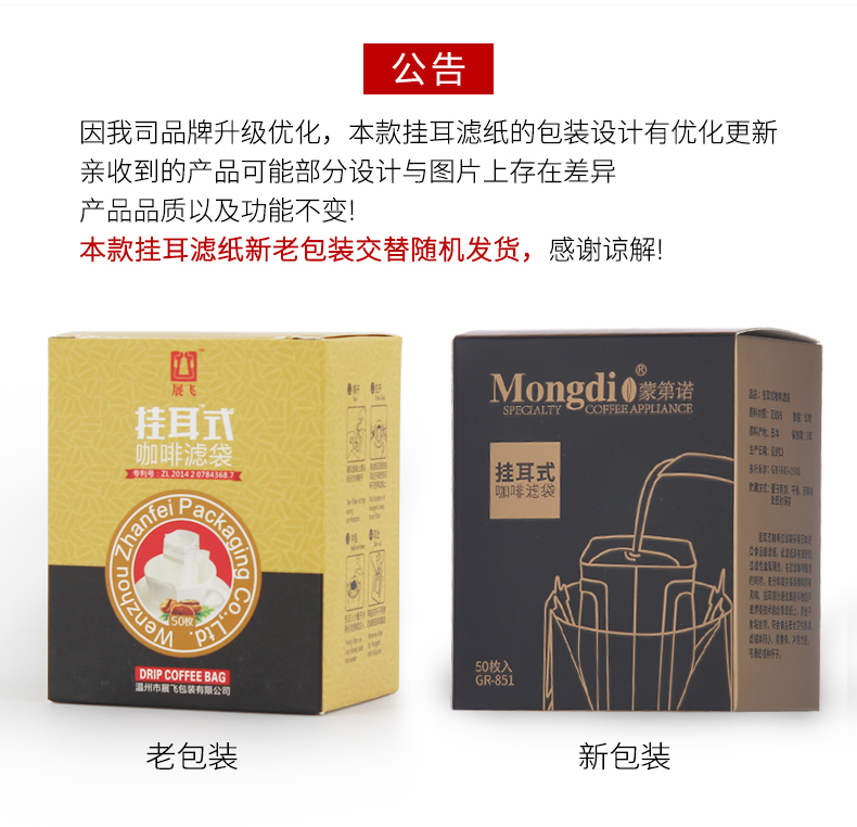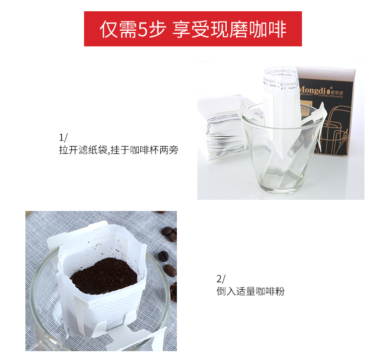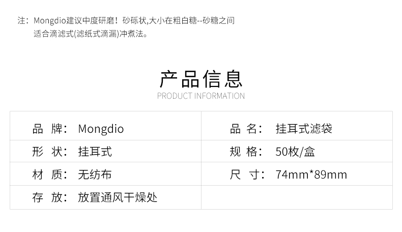 Mongdio hanging coffee filter paper hand brewed coffee pot filter paper coffee powder filter bag drip pot filter 1 bag 50 pieces/bag