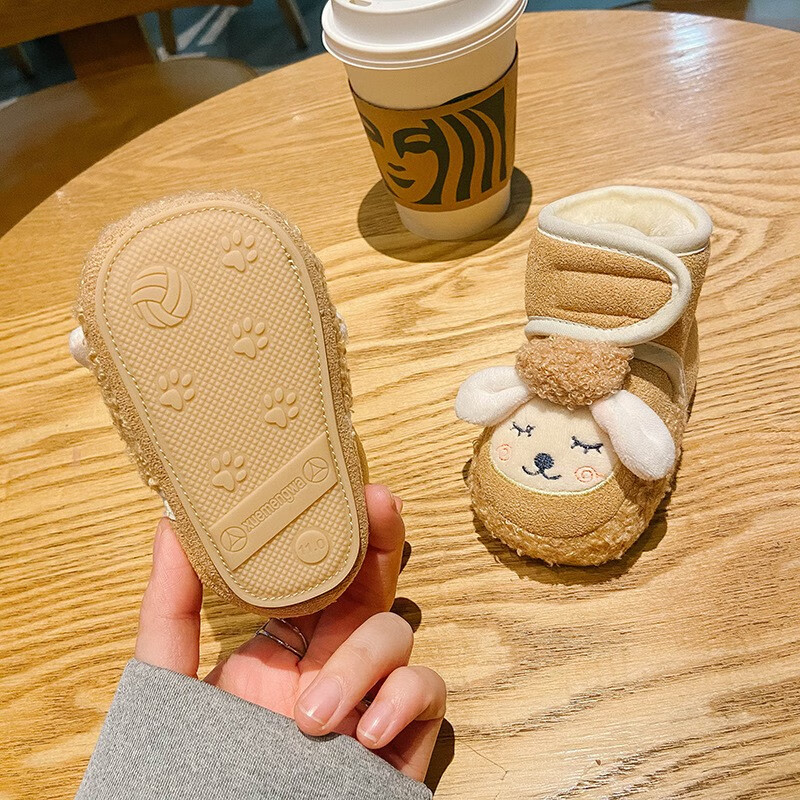 Tutu Dawen Newborn Baby Shoes 0-1 Years Old Toddler Shoes Autumn and Winter 6-12 Months Male and Female Baby Cotton Shoes and Socks Soft-soled Foot Covers Blue Velvet 1 Pair One-size-fits-all Inner Length 13cm (Suitable for 0-12 Months)