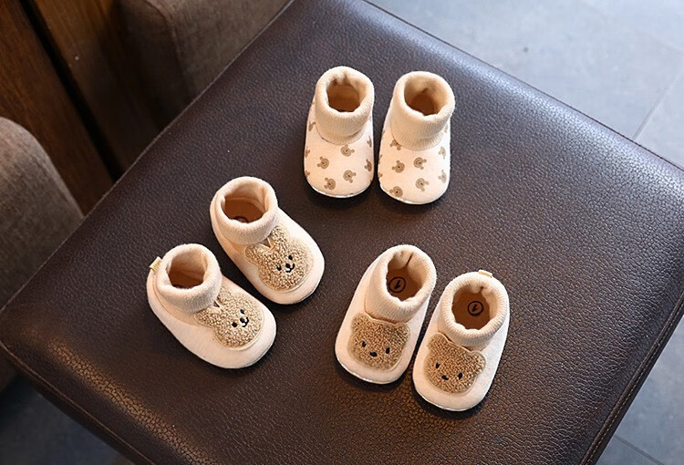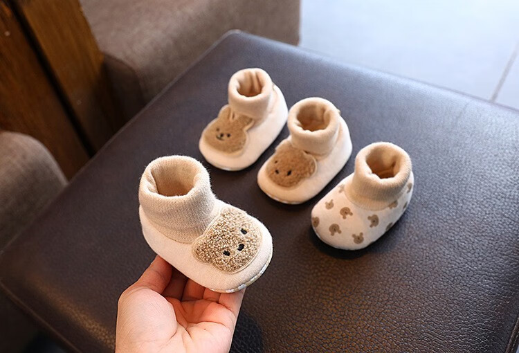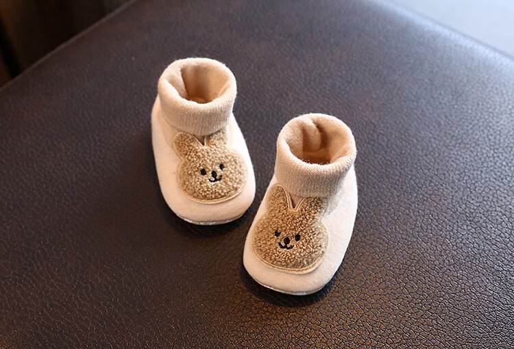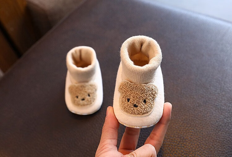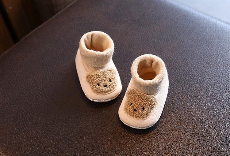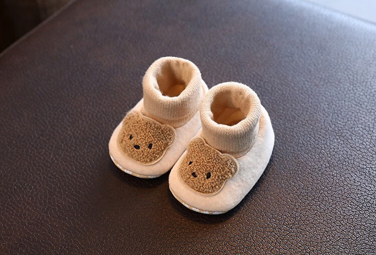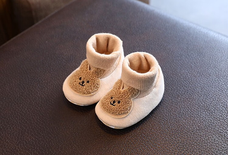 Tutu Dawen Newborn Baby Shoes Autumn and Winter 0-1 Years Old Toddler Shoes 6-12 Months Male and Female Baby Cotton Shoes Socks Foot Covers Soft Bottom Bear Coffee (Cotton Lining) Inner Length 13cm (Suitable for 0-12 Months)