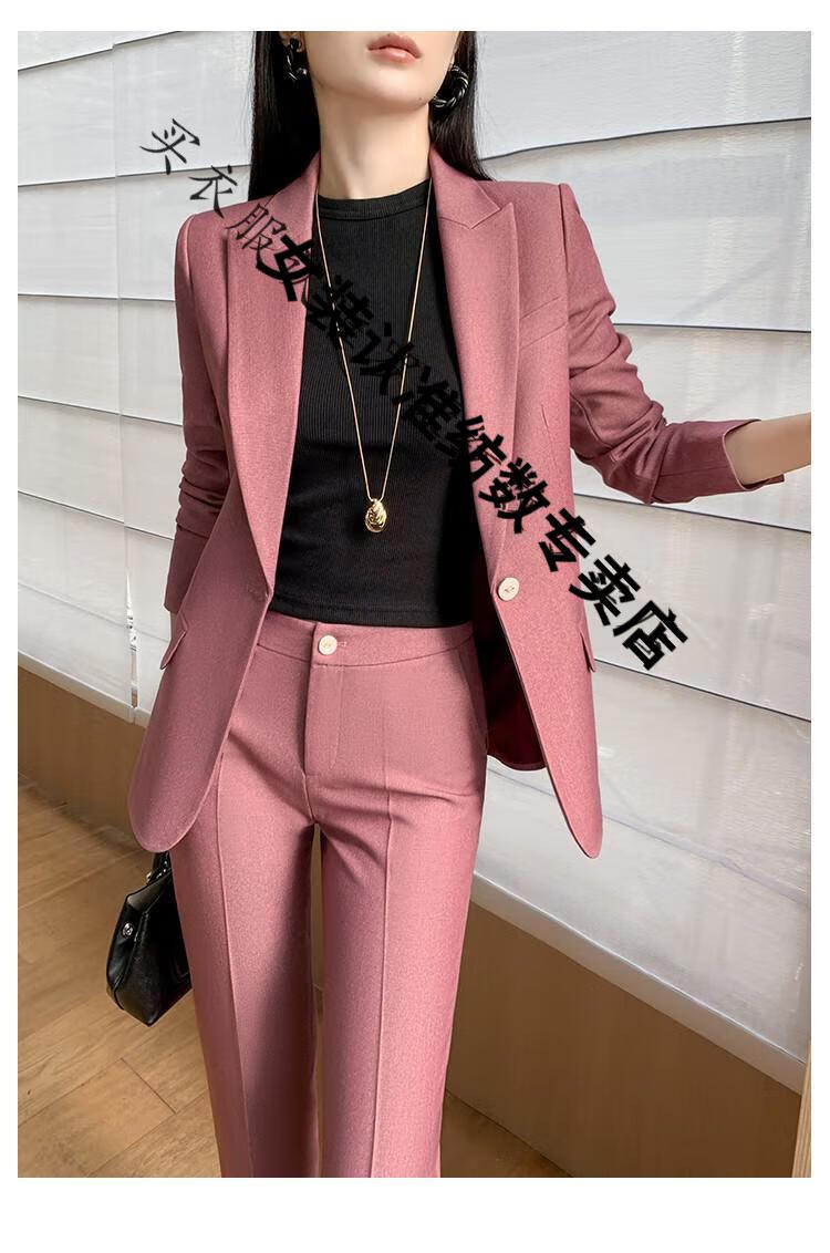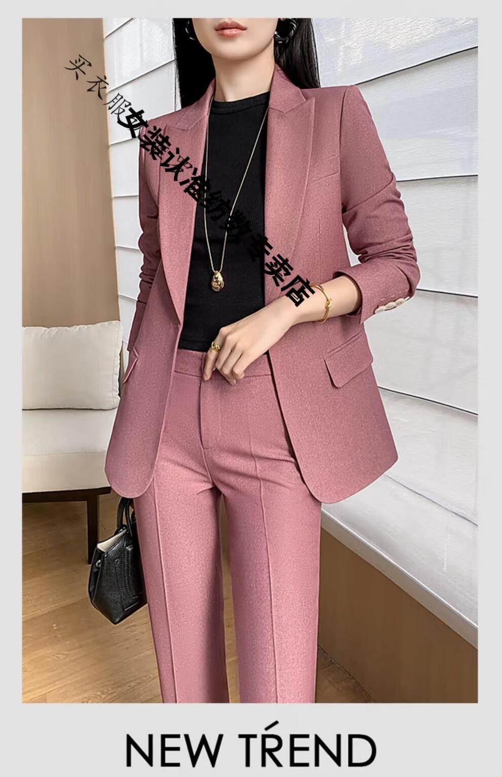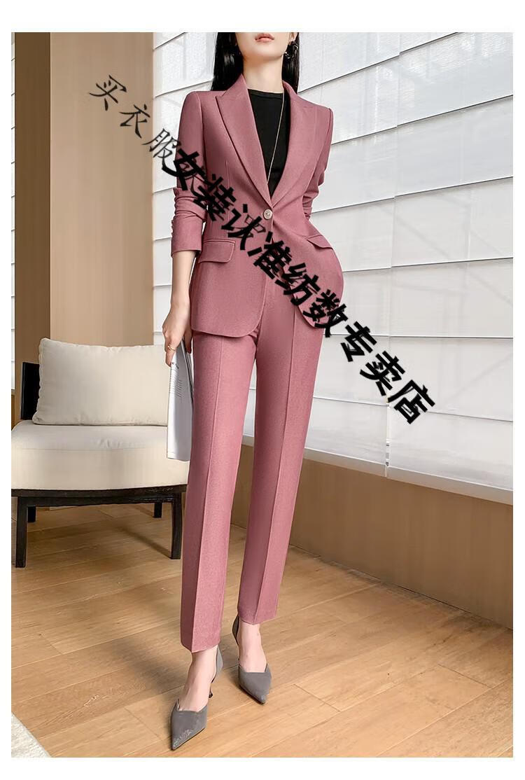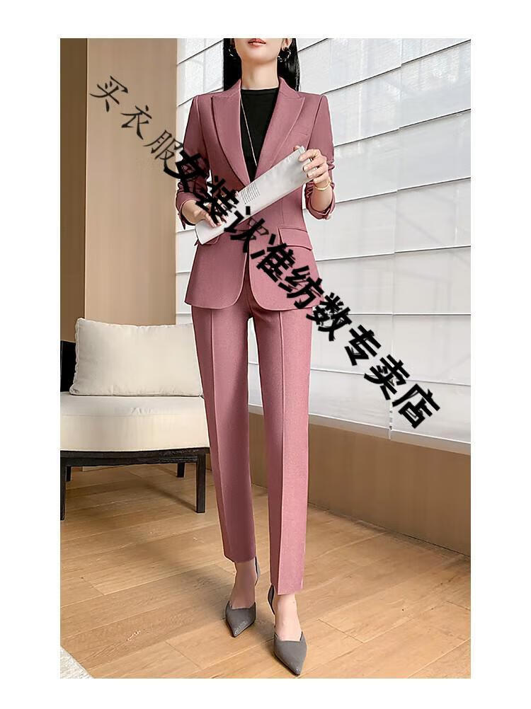 ROMON suit suit women's 2023 autumn and winter new professional wear commuting fashion temperament slim suit jacket two-piece set rose red suit M