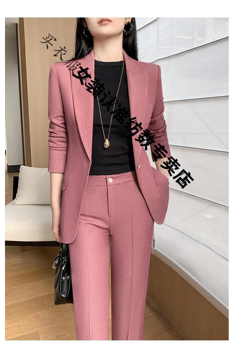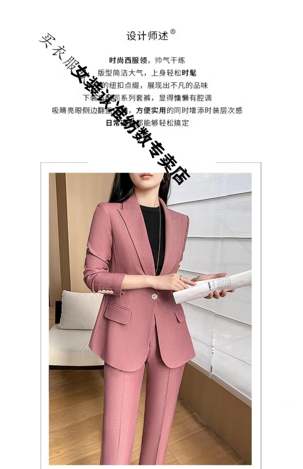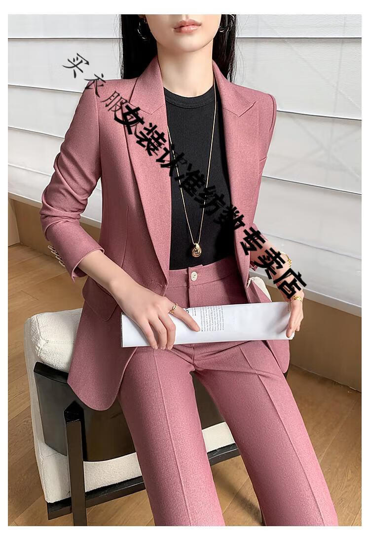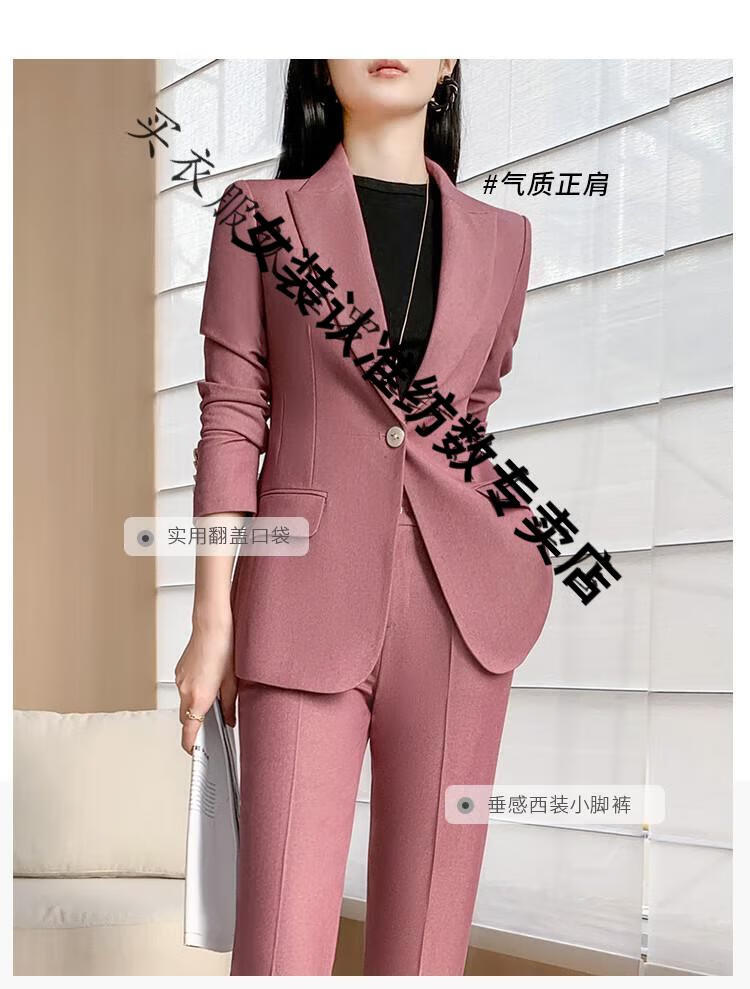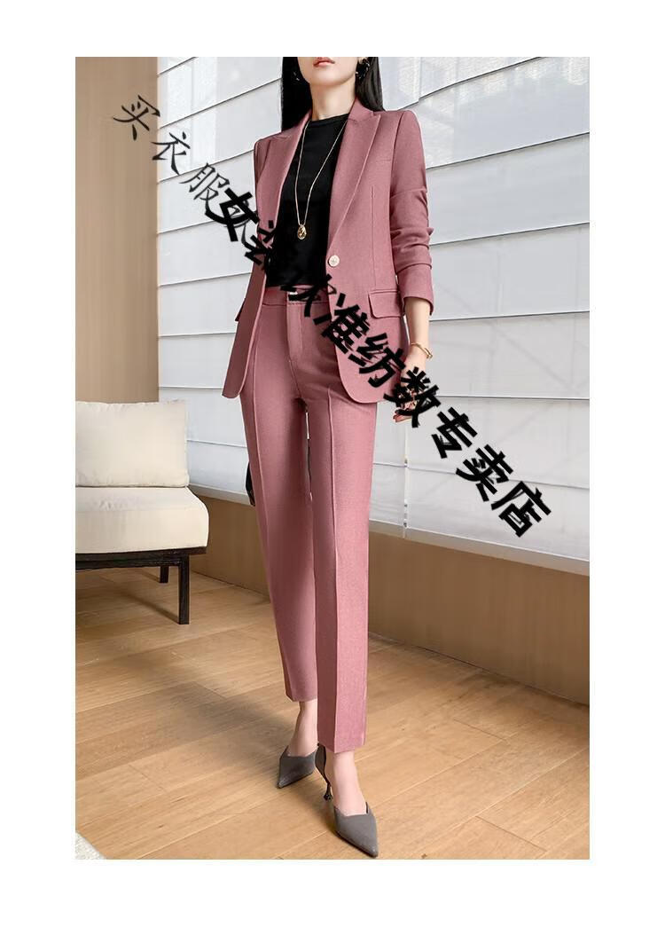 ROMON suit suit women's 2023 autumn and winter new professional wear commuting fashion temperament slim suit jacket two-piece set rose red suit M