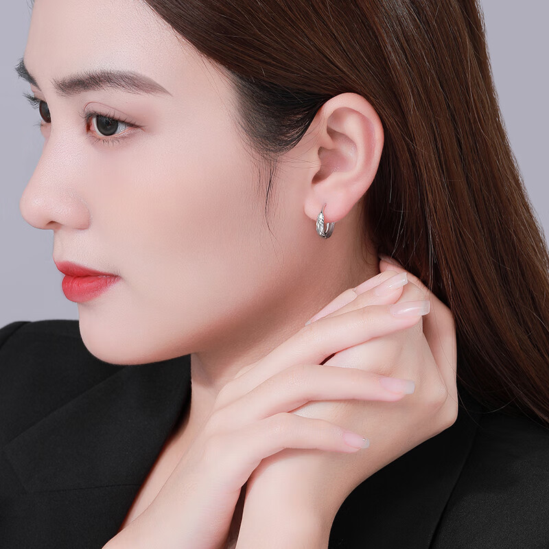 Chao Acer Modern Platinum White Gold Earrings for Women Platinum Earrings Diamond Earrings as a Birthday Gift for My Girlfriend Priced at RMB 160, Approximately 1.35g, One Pair