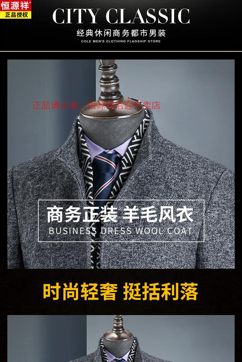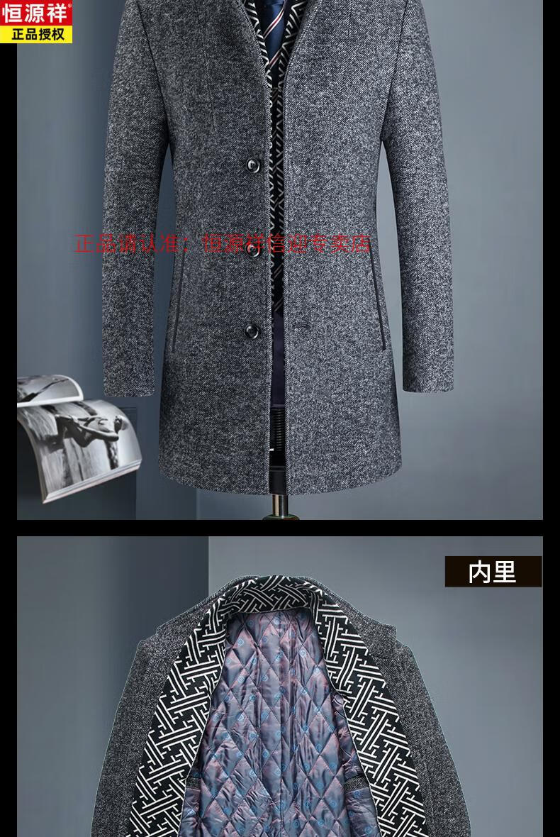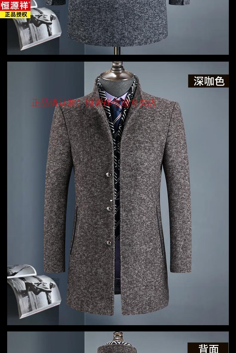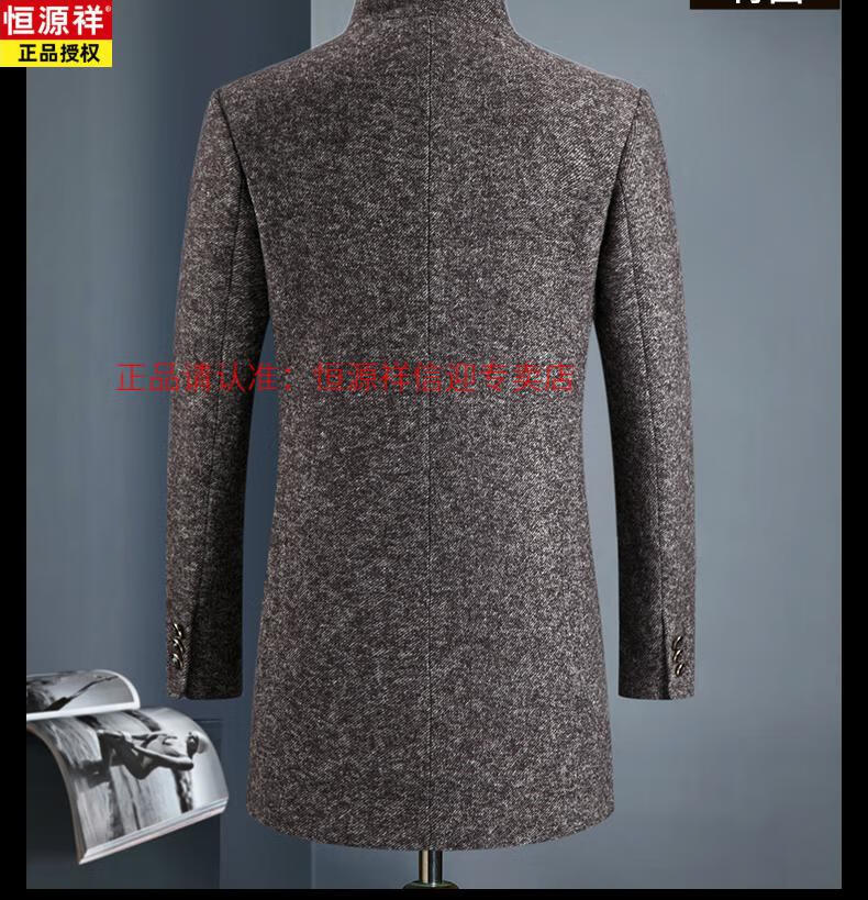 Hengyuanxiang autumn and winter middle-aged woolen woolen coat British casual windbreaker men's thickened Nizi stand-up collar coat 828 gray stand-up 175/L