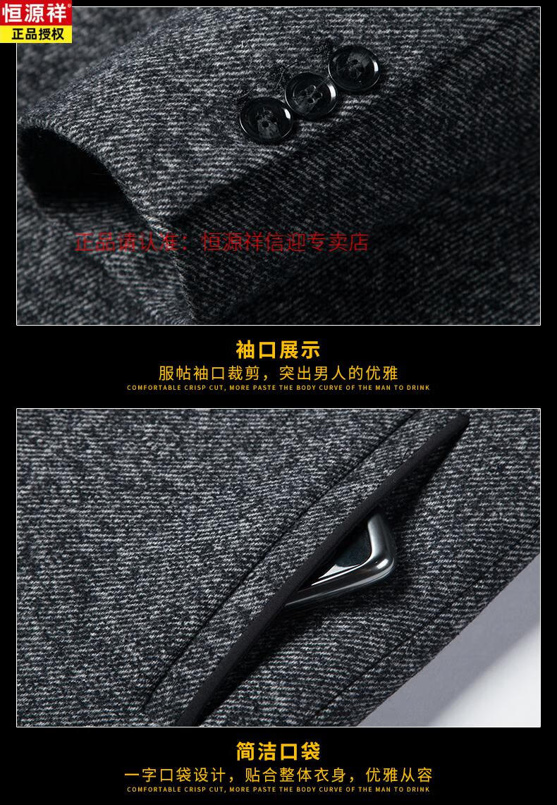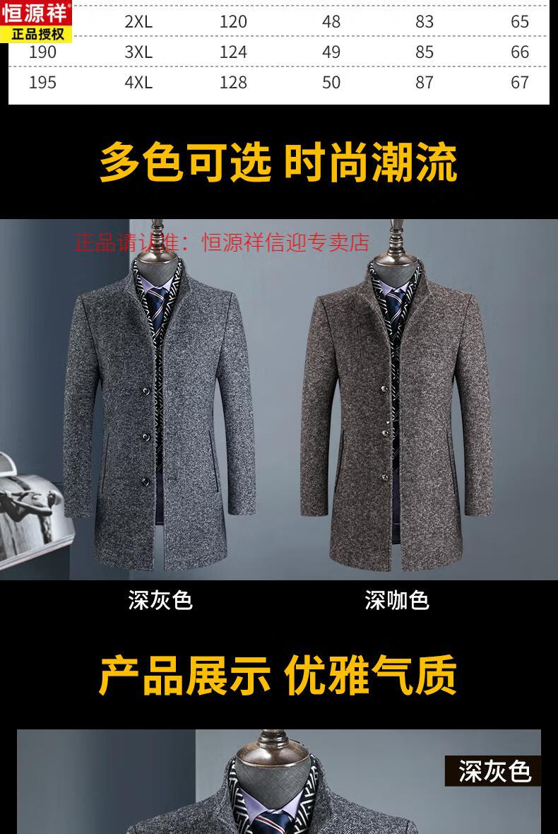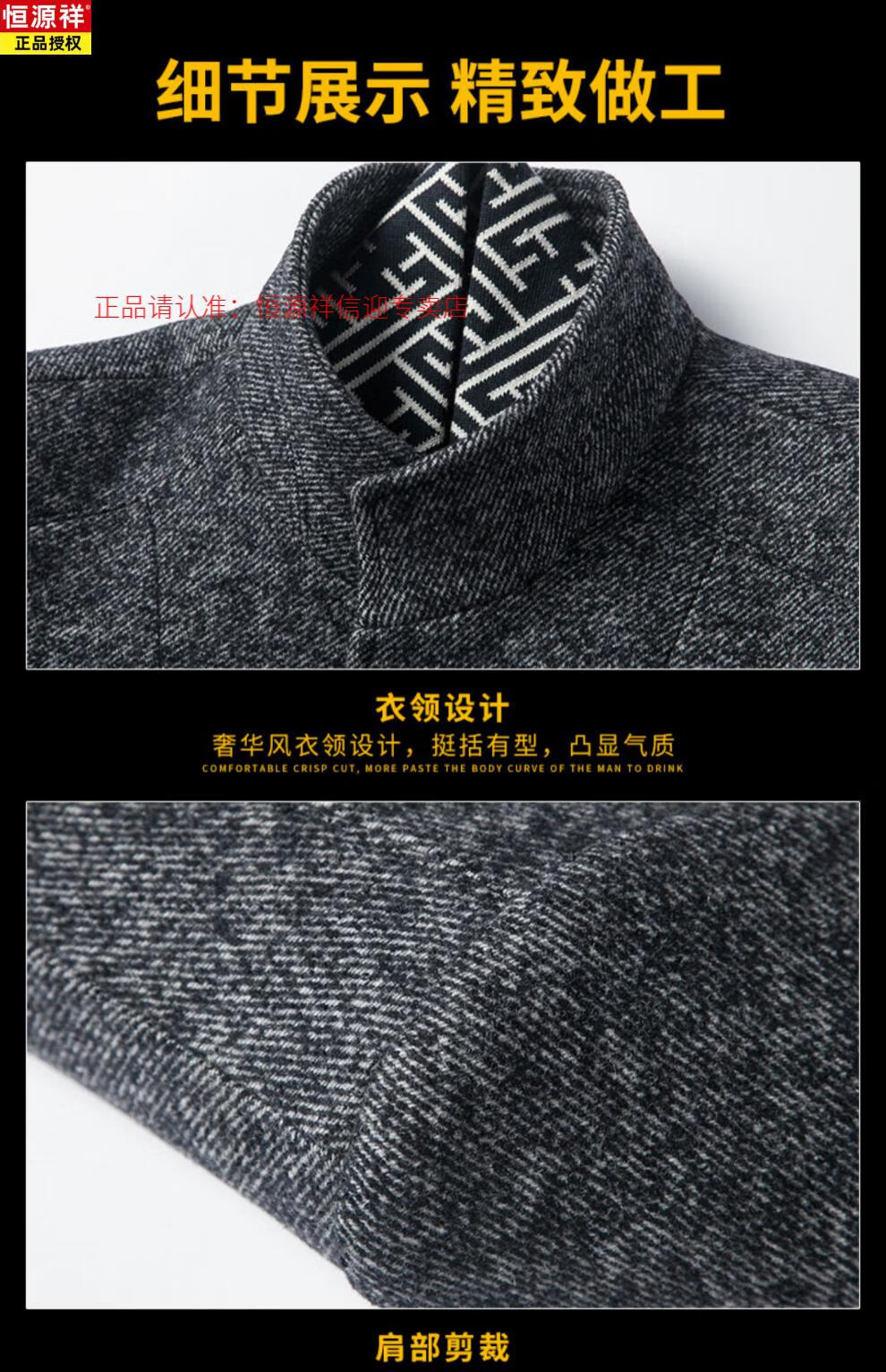 Hengyuanxiang autumn and winter middle-aged woolen woolen coat British casual windbreaker men's thickened Nizi stand-up collar coat 828 gray stand-up 175/L