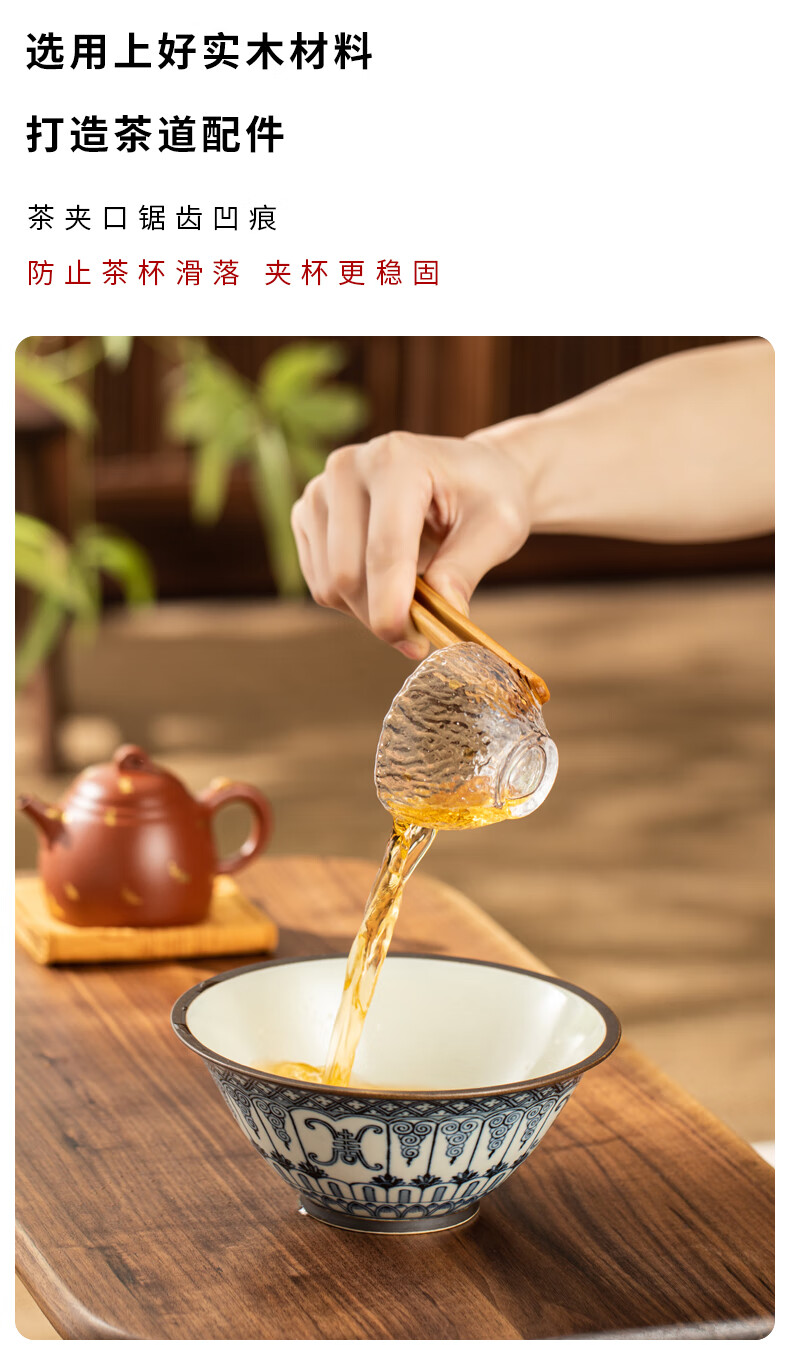 Pinyiheng Chinese solid wood tea clip Kung Fu tea set accessories tea ceremony non-slip cup clip tea drinking tools tea brewing tea cup tweezers fine red sandalwood tea clip