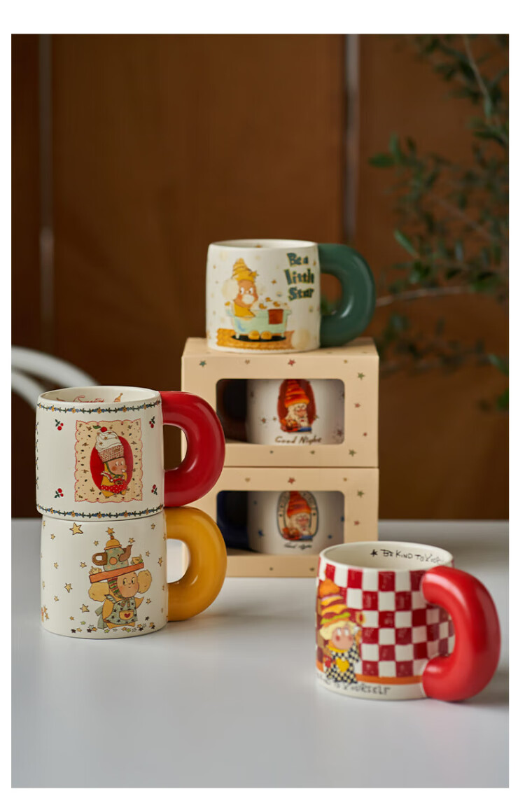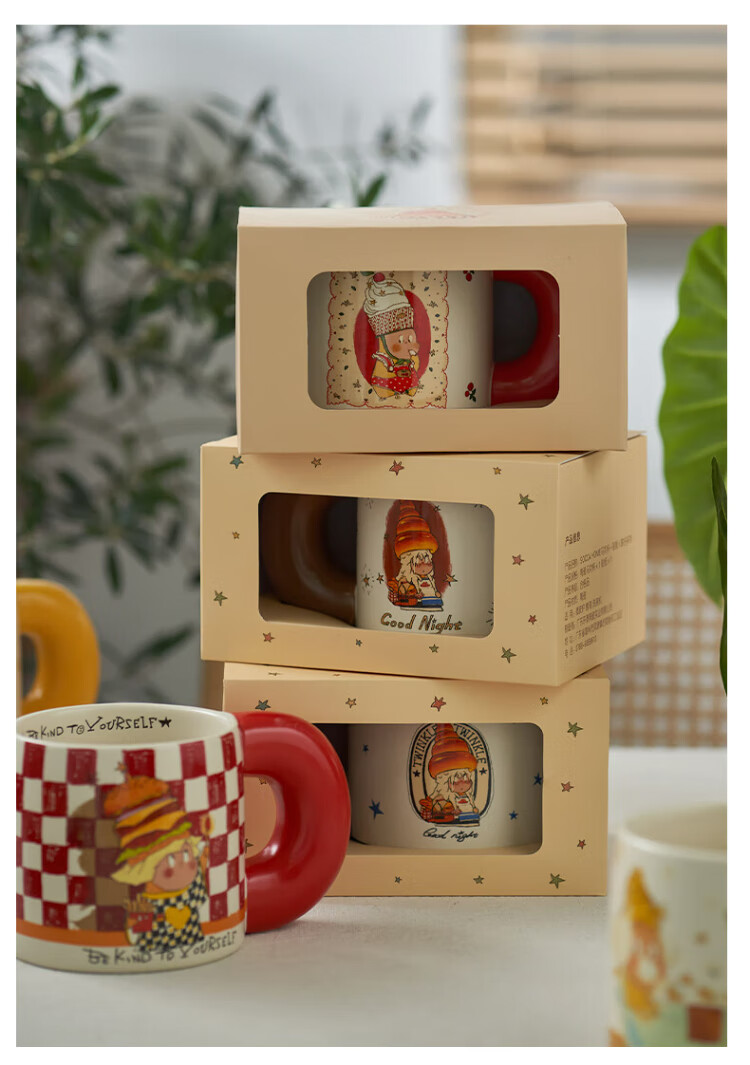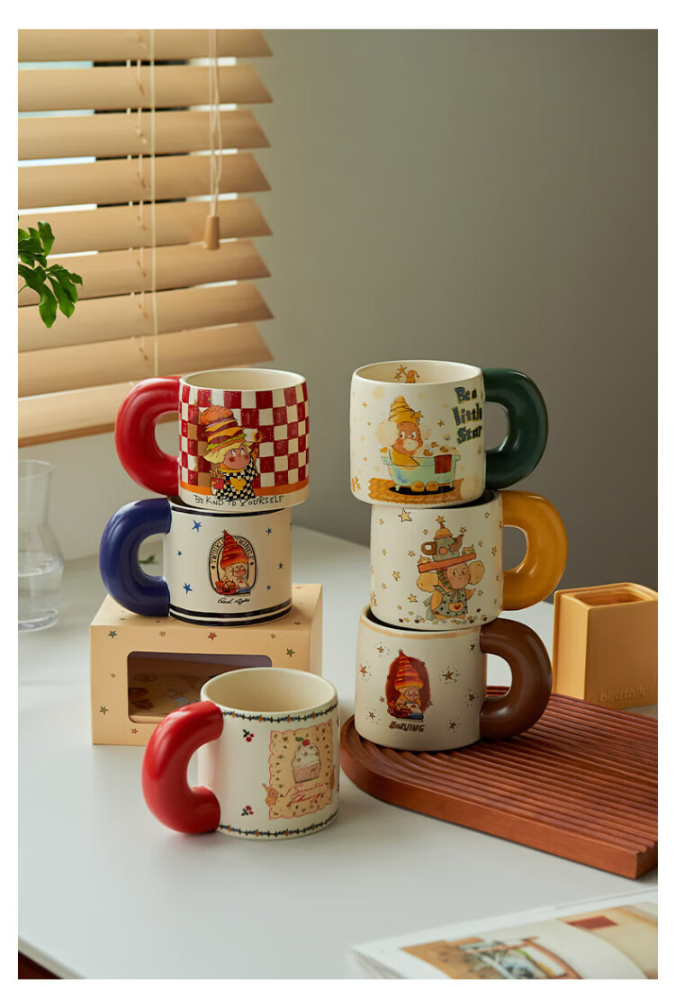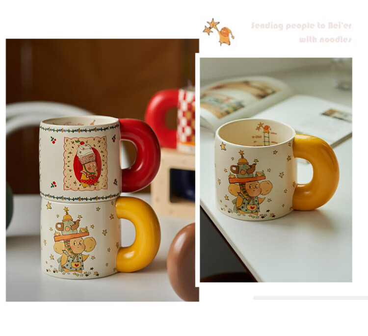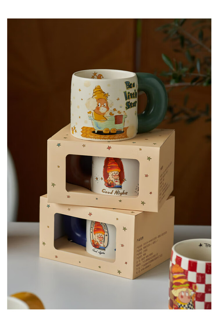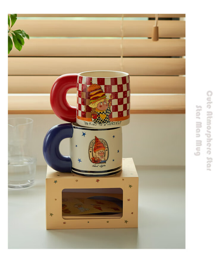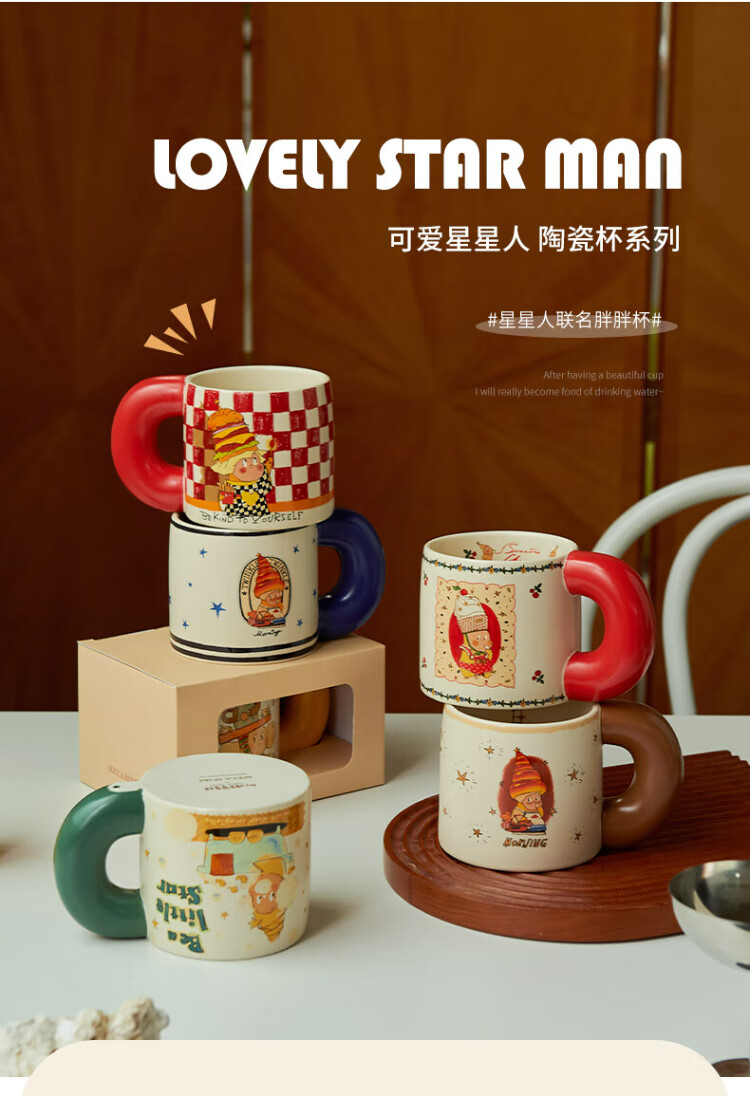 Siyue Xingren co-branded mug, cute ceramic cup, student couple water cup, a pair of birthday gifts for women, Marshmallow Stars (gift box + sticker)