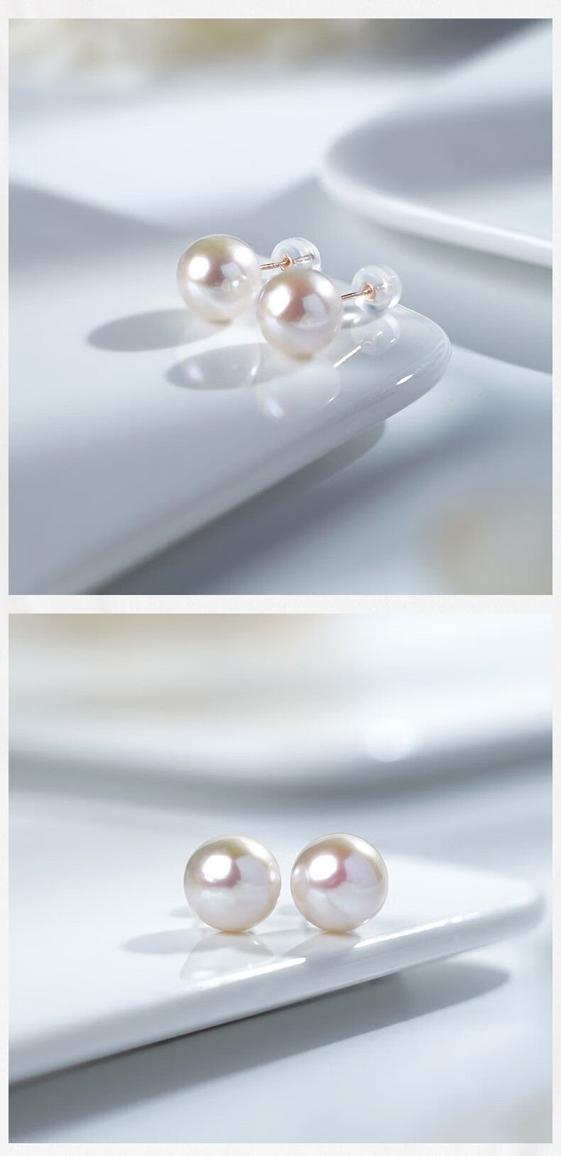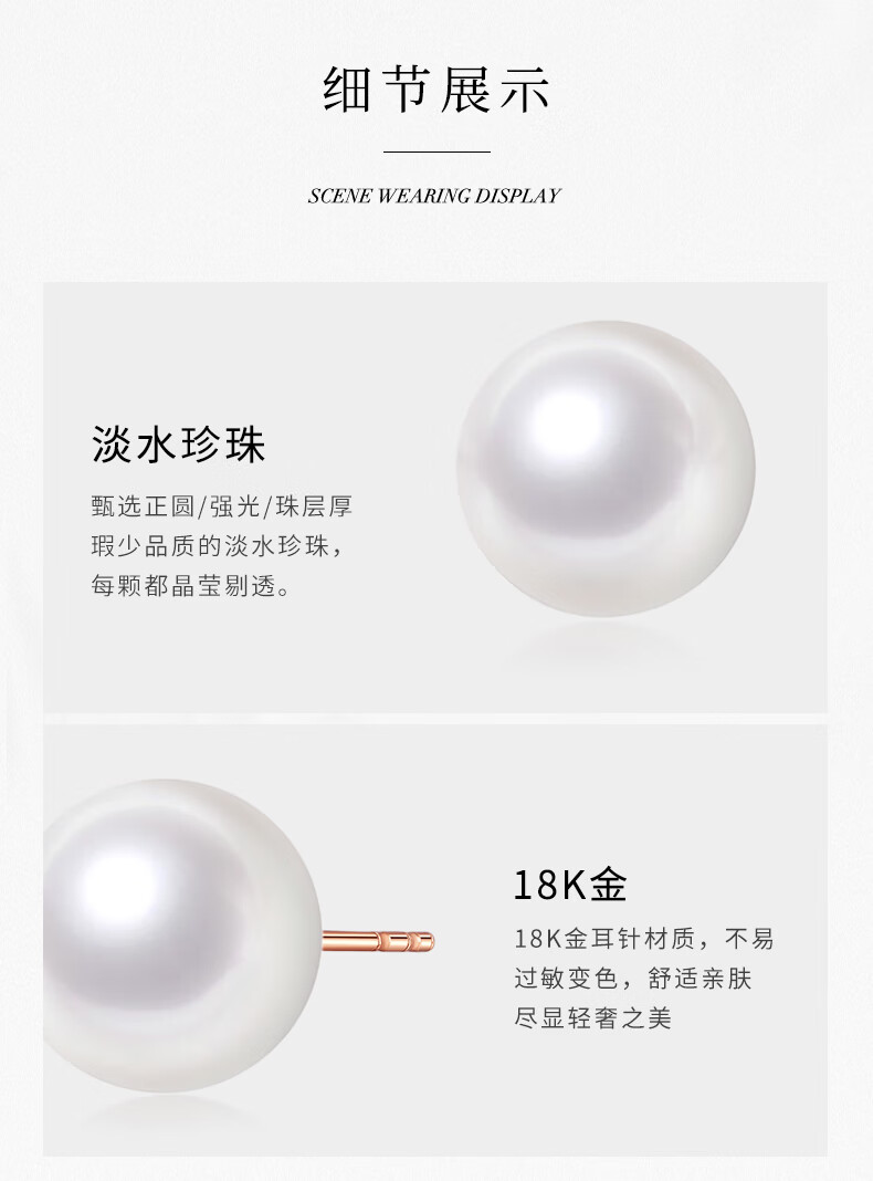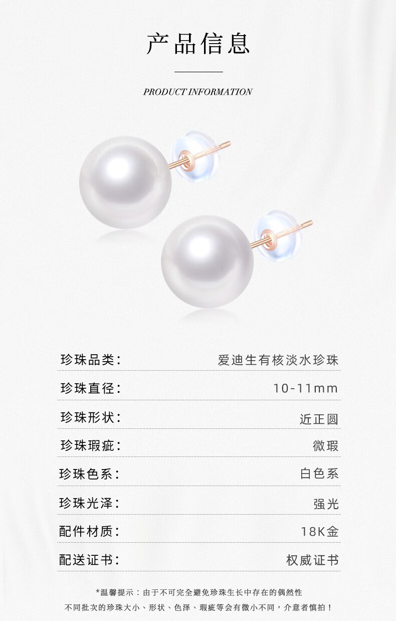 Tahiti allows me to dazzle with the same 18K gold Edison pearl earrings, round bright freshwater pearl earrings, white Edison 10-11mm