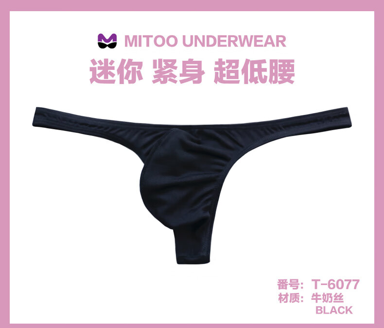 Icumitoo men's sexy low-waist mini thong underwear new tight and breathable black milk silk-not see-through M