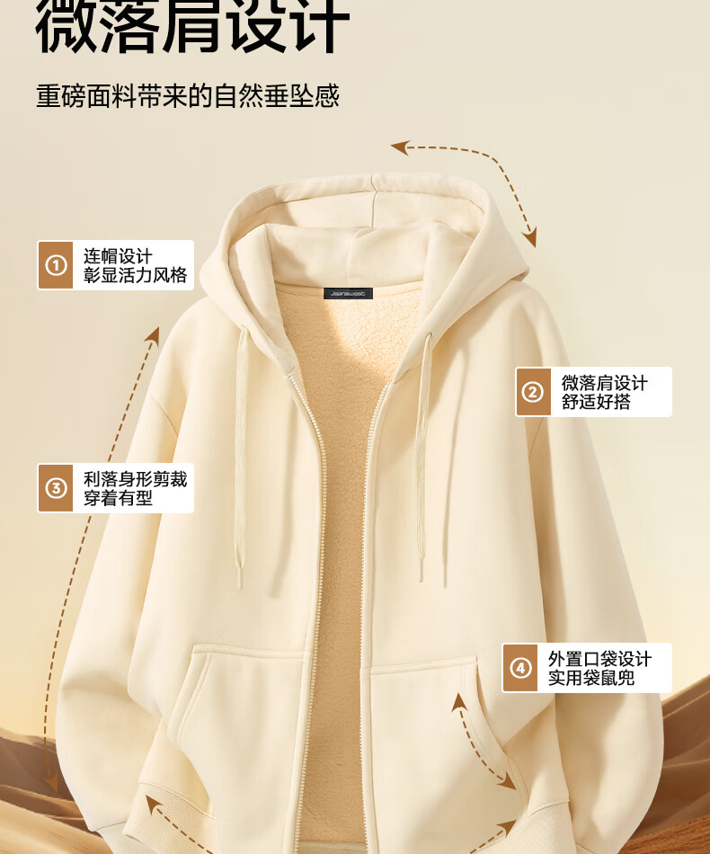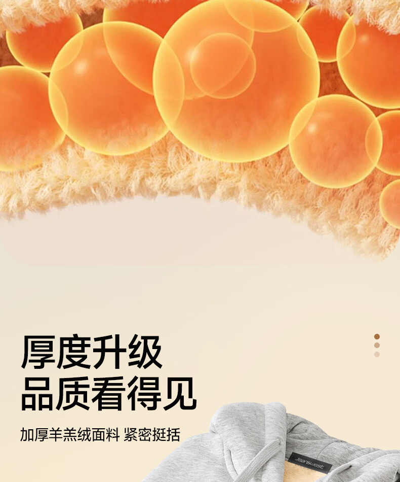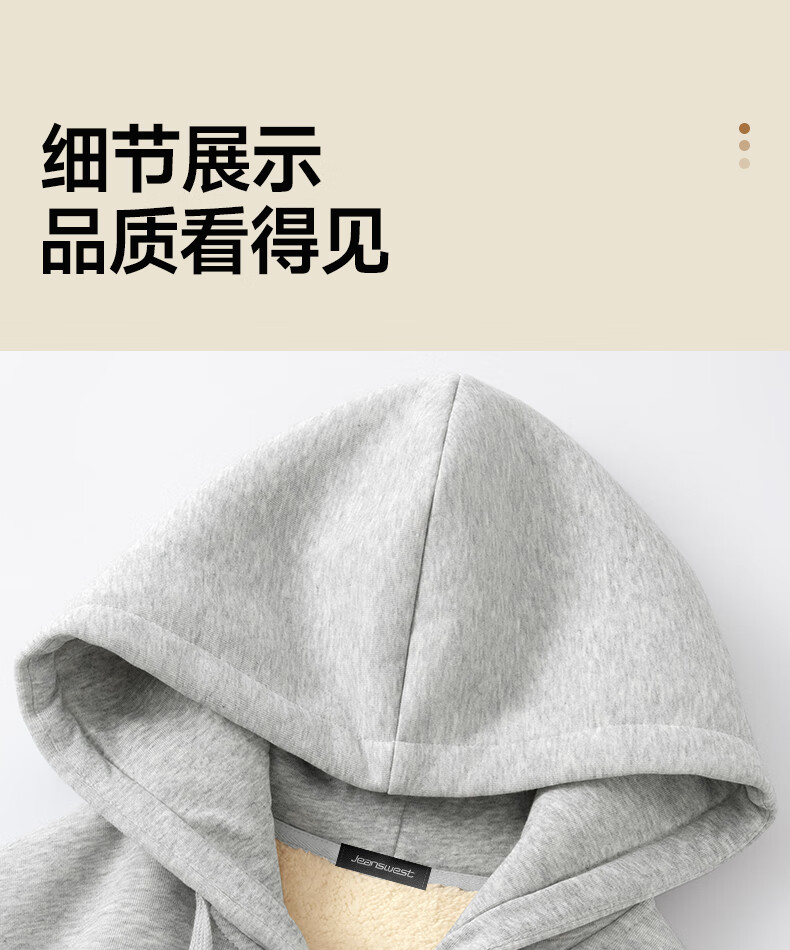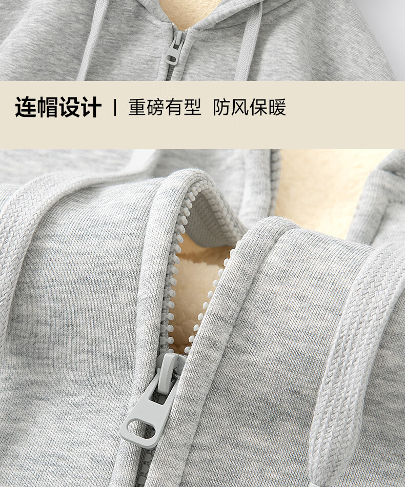 Jeanswest heavy velvet 560g sweatshirt men's sherpa cardigan plus velvet thickened winter men's trendy brand warm top jacket 560G heavy hemp gray (solid color) XL (180) (weight 140-160Jin Jin equals 0.5 kg)