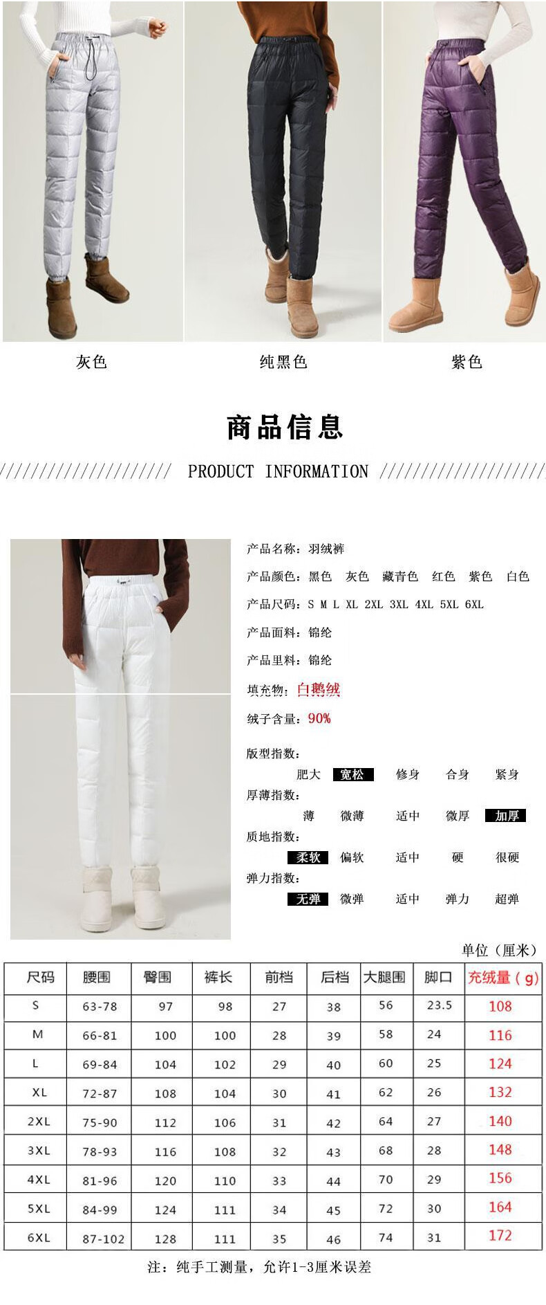 IMPRESSWIT goose down down pants for women to wear outside in the extreme cold winter in Northeast China - 40 degrees below zero, high waist thickened high-end warm casual pants white thickened white goose down S recommended 85-95 Jin Jin equals 0.5 kg, 108 grams of down filling