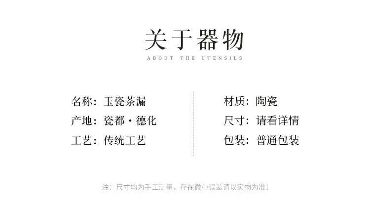 All-porcelain one-piece tea filter tea drain mutton fat jade white porcelain filter ceramic tea separator tea ceremony accessories tea filter 3989 hole single tea drain