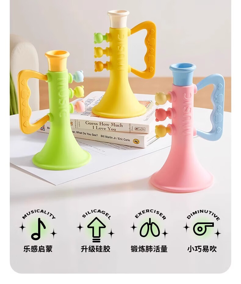 AIBEDILA trumpet children's toys baby blowing music trumpet harmonica blowable whistle whistle Rhine green color box including hanging neck rope