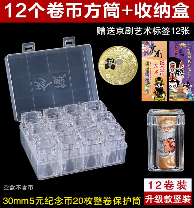 Coin barrel Peking Opera art commemorative coin collection box coin protection box coin storage box protective barrel shell square barrel vertical style 12 30mm square barrels + storage box
