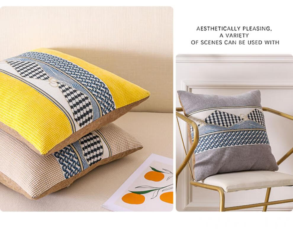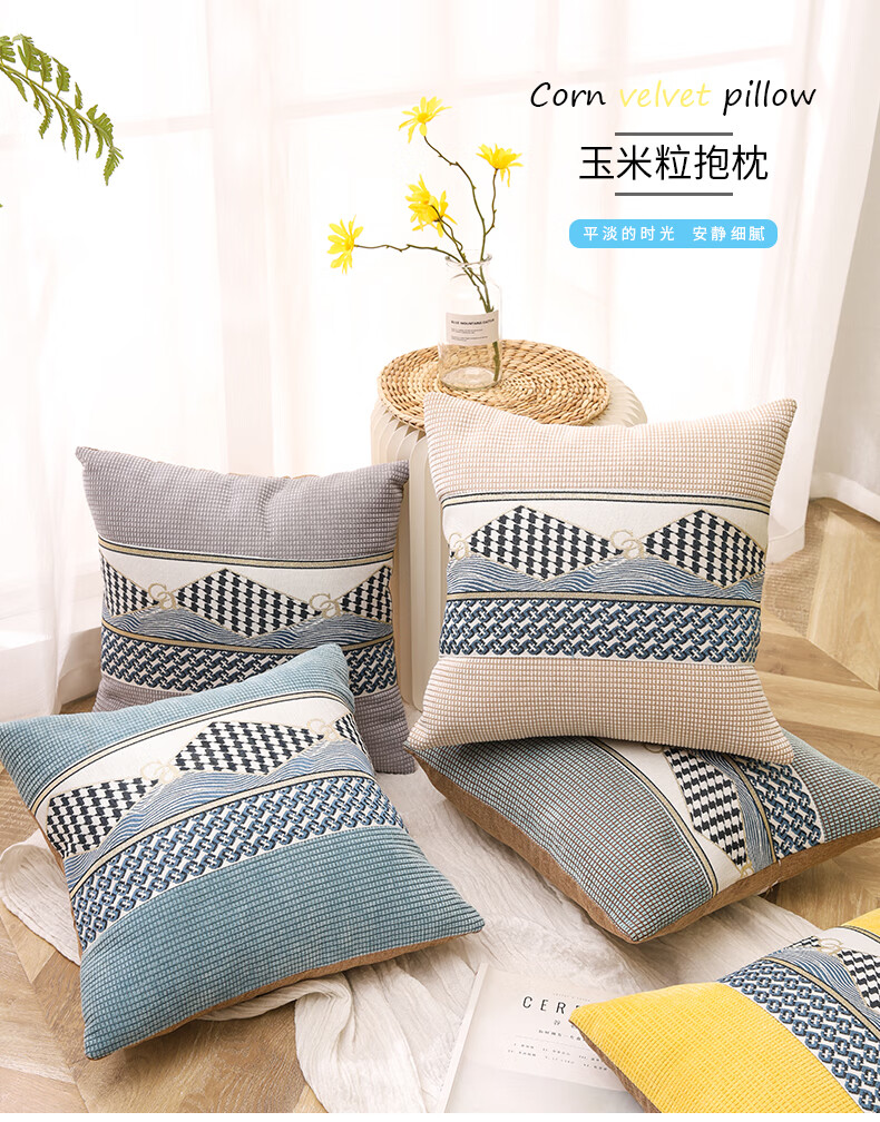 Simple modern sofa pillow with core office nap artifact pillowcase waist pillowcase bedside back cushion customization Lingbo-beige 45x45cm pillowcase + pillow core