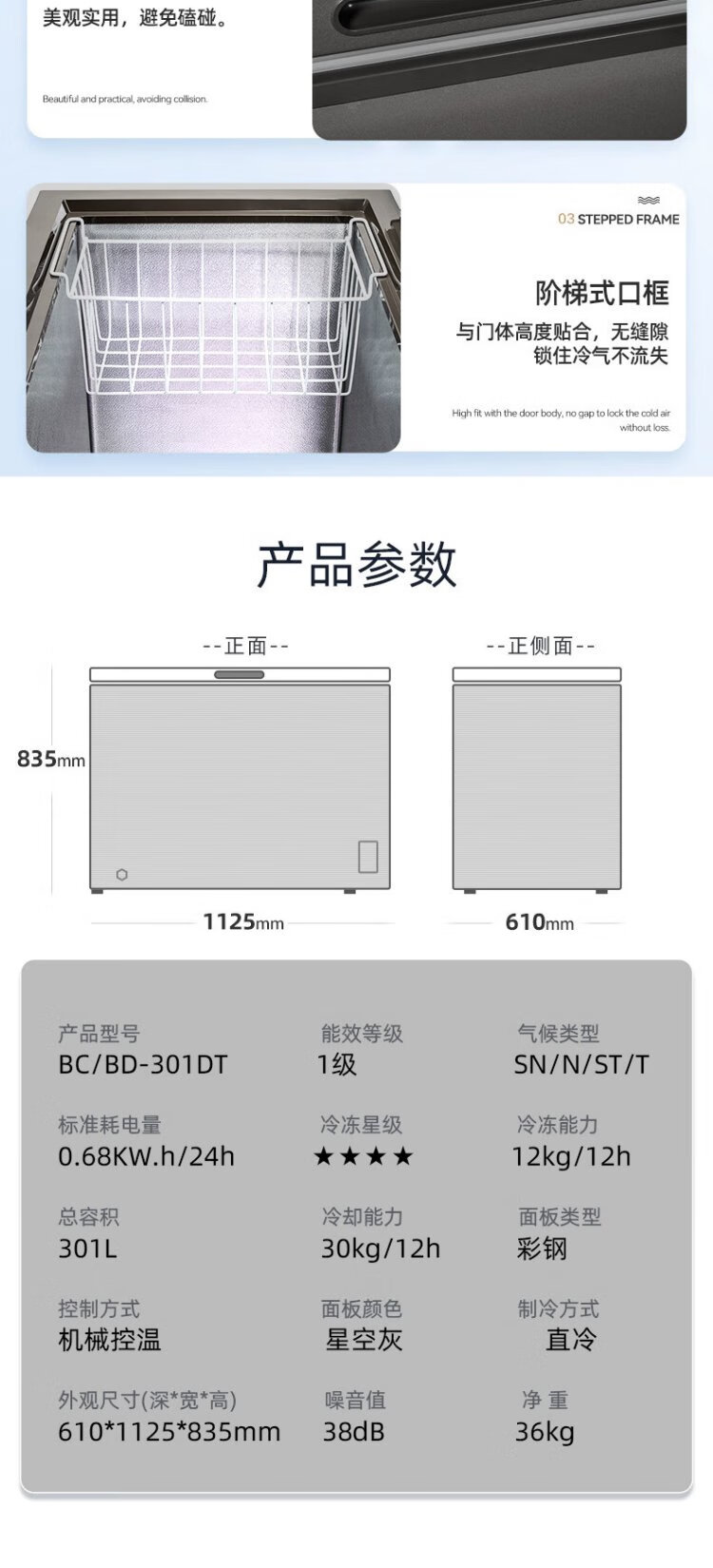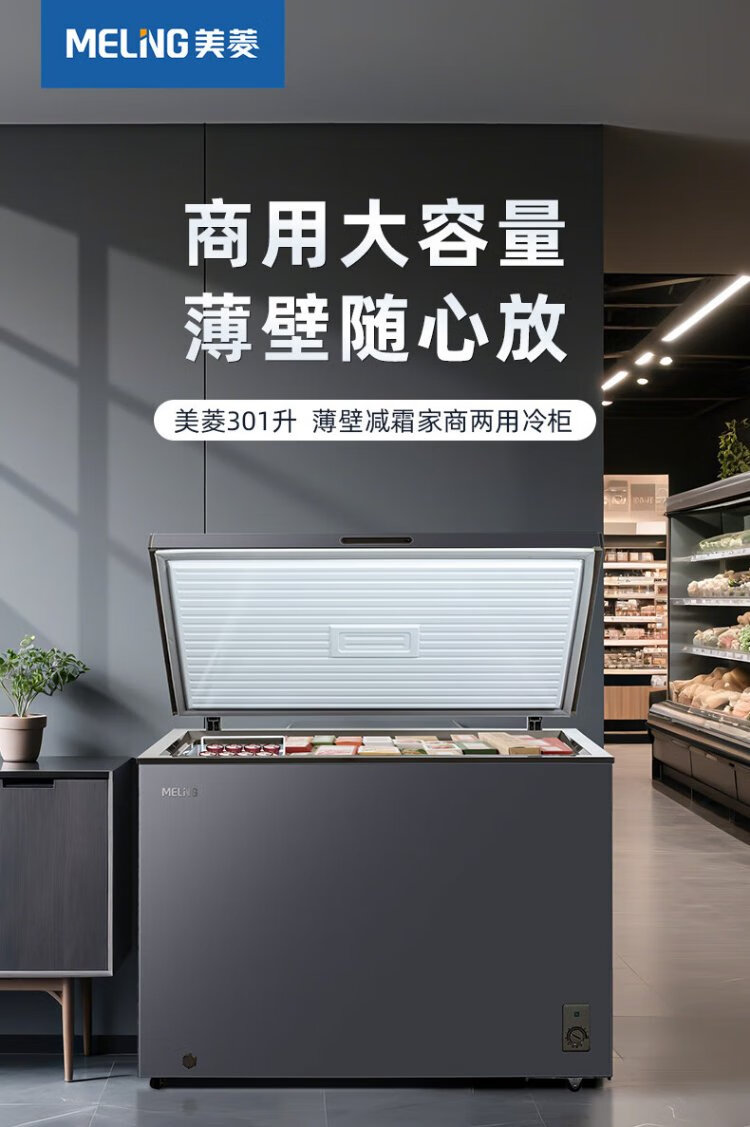 MeiLing 301 liter freezer household commercial freezer first class energy efficiency large capacity refrigeration and freezing conversion 84.1% efficient frost reduction ice cream freezer horizontal refrigerator national subsidy recommended by thousands of people | dual use for home and business frost reduction 84.1% 301L 301 liters